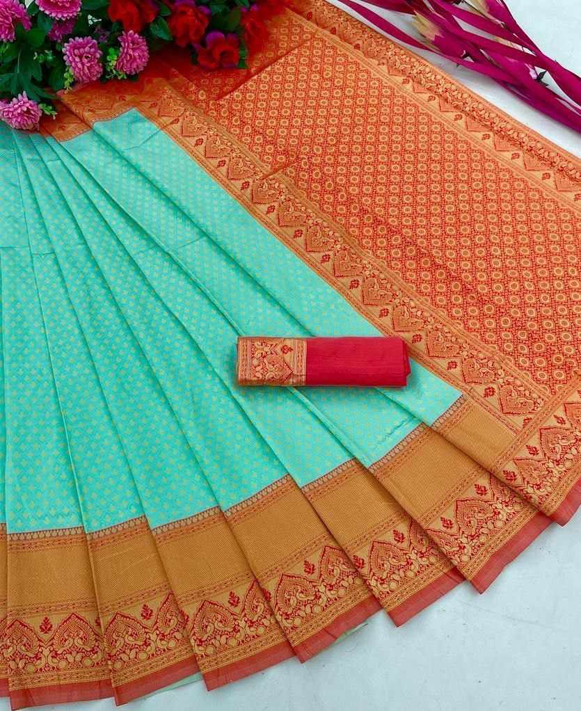 *Beautiful Art Silk Jacquard Border Saree With Unstitched Running Blouse For Women Wedding Wear Party*