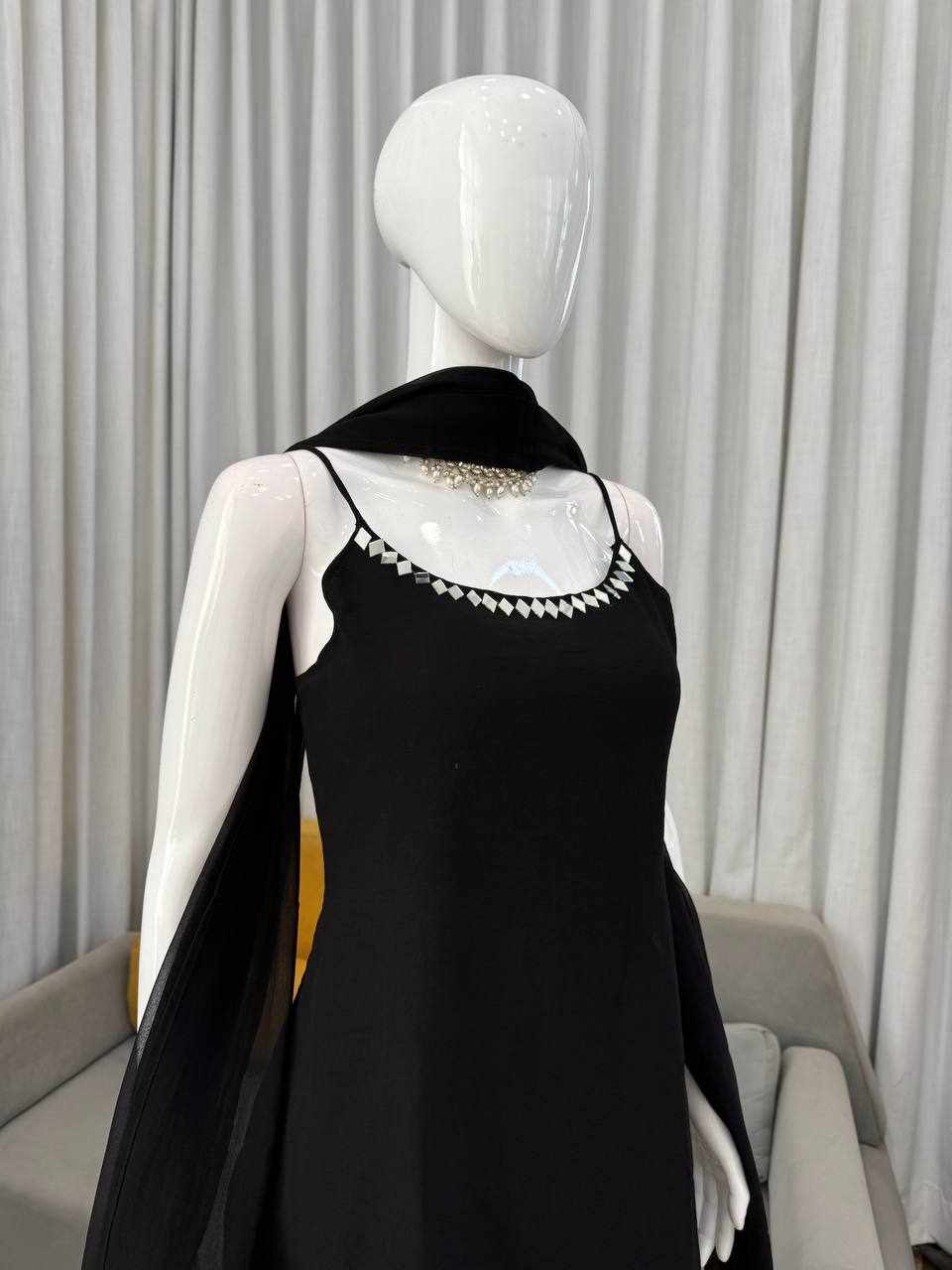 Stylish Mirror Work Top-Pant with Dupatta Set