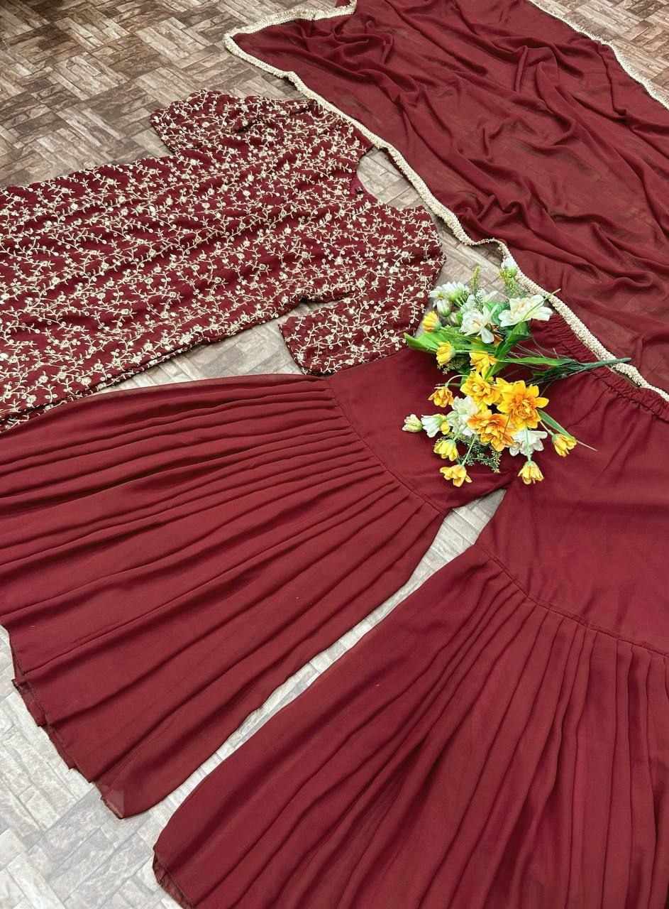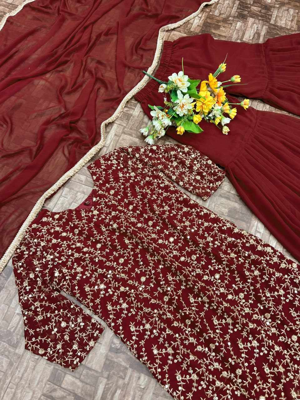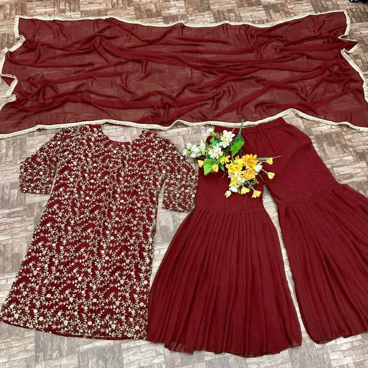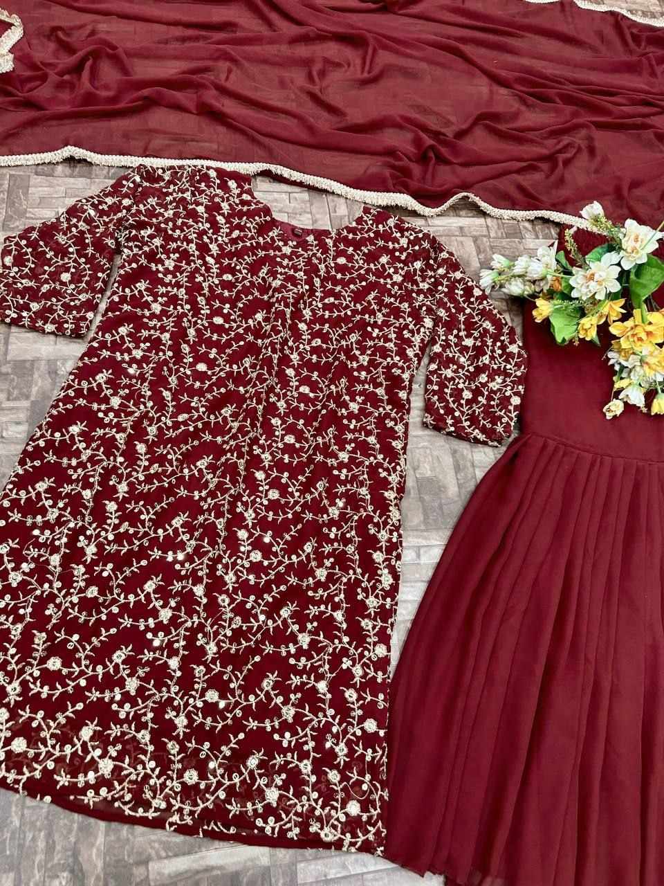 *Top Fabric* :- Heavy faux Georgette fabric With Fully embroidery worked(Fully stitched)