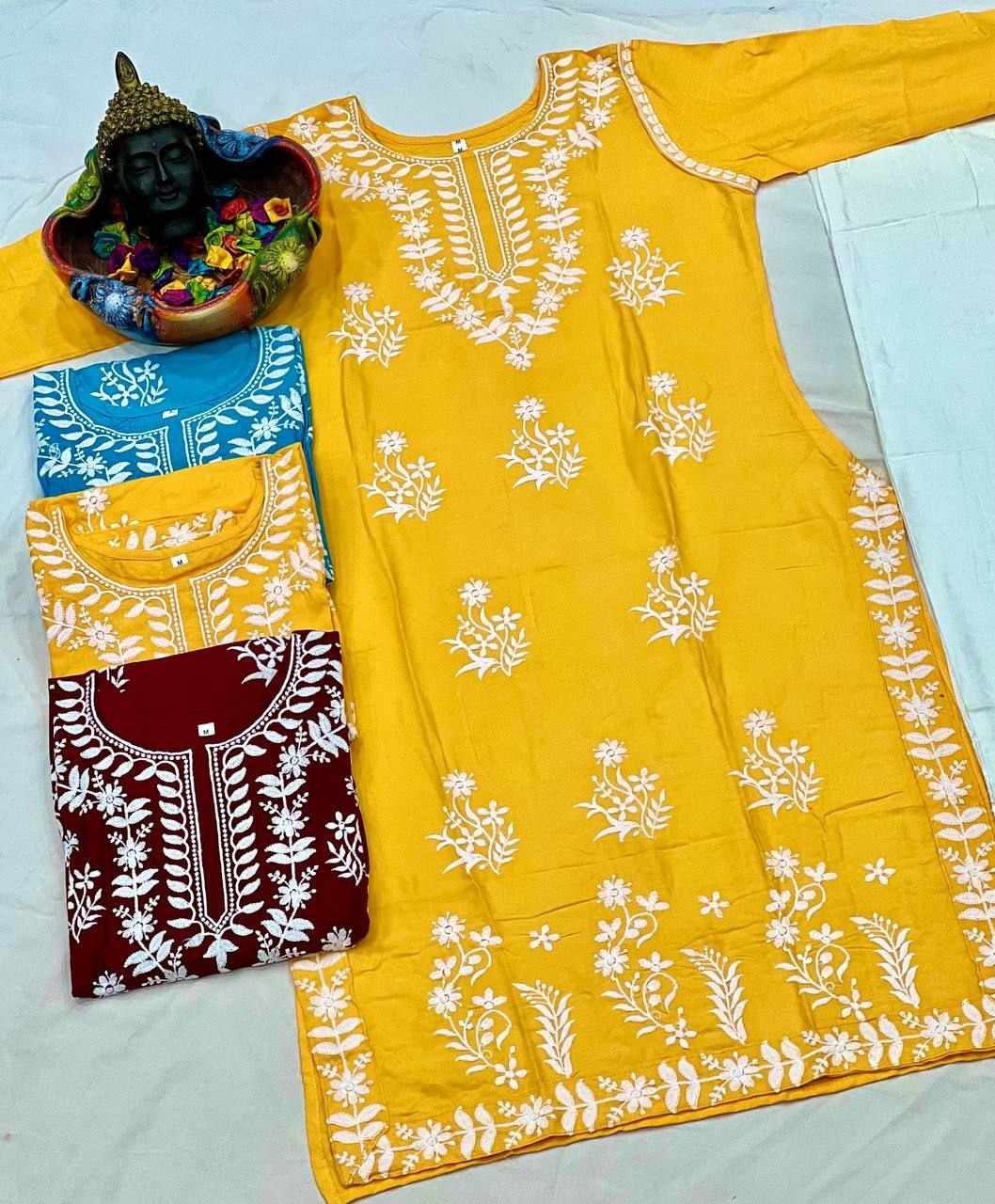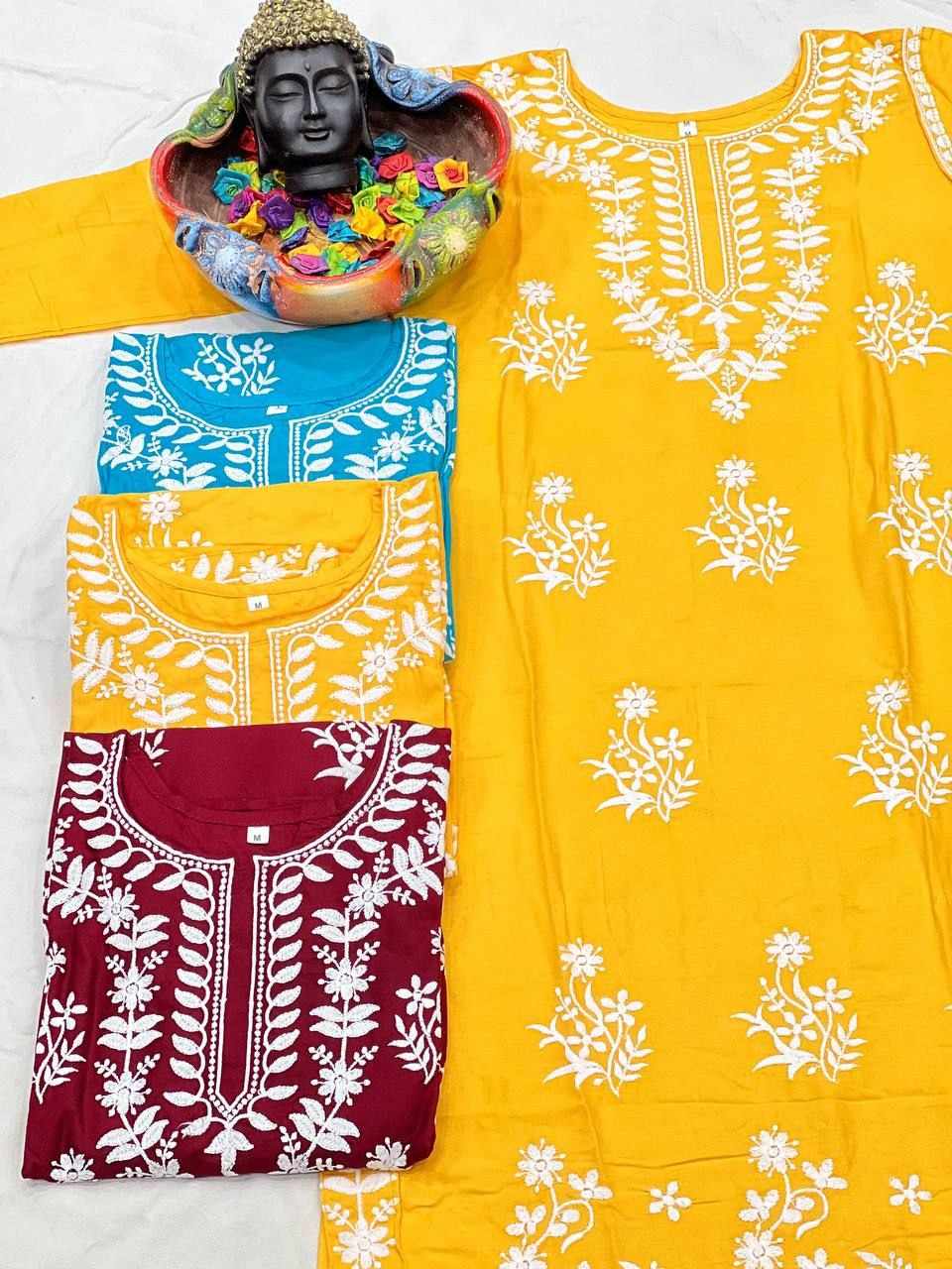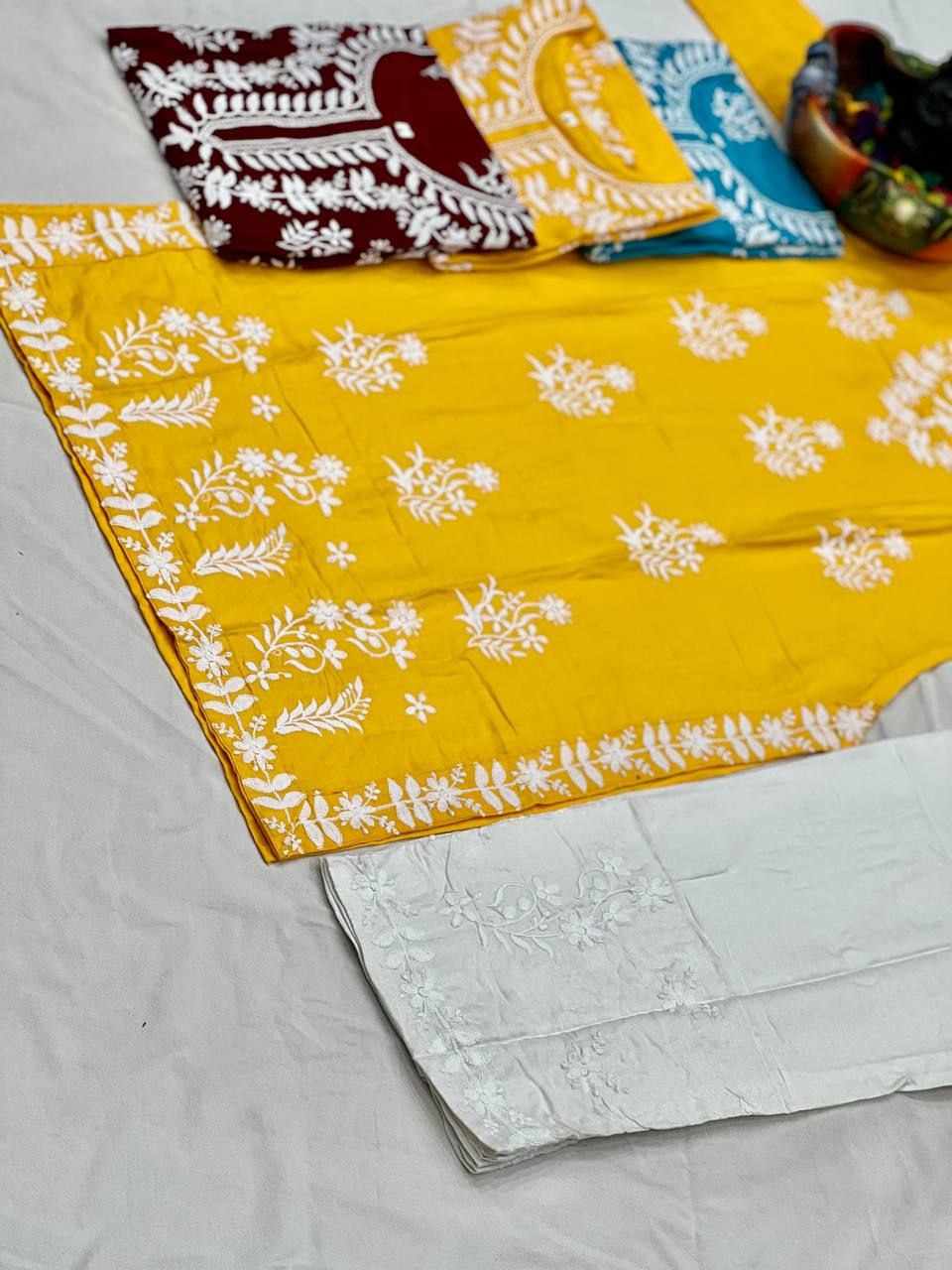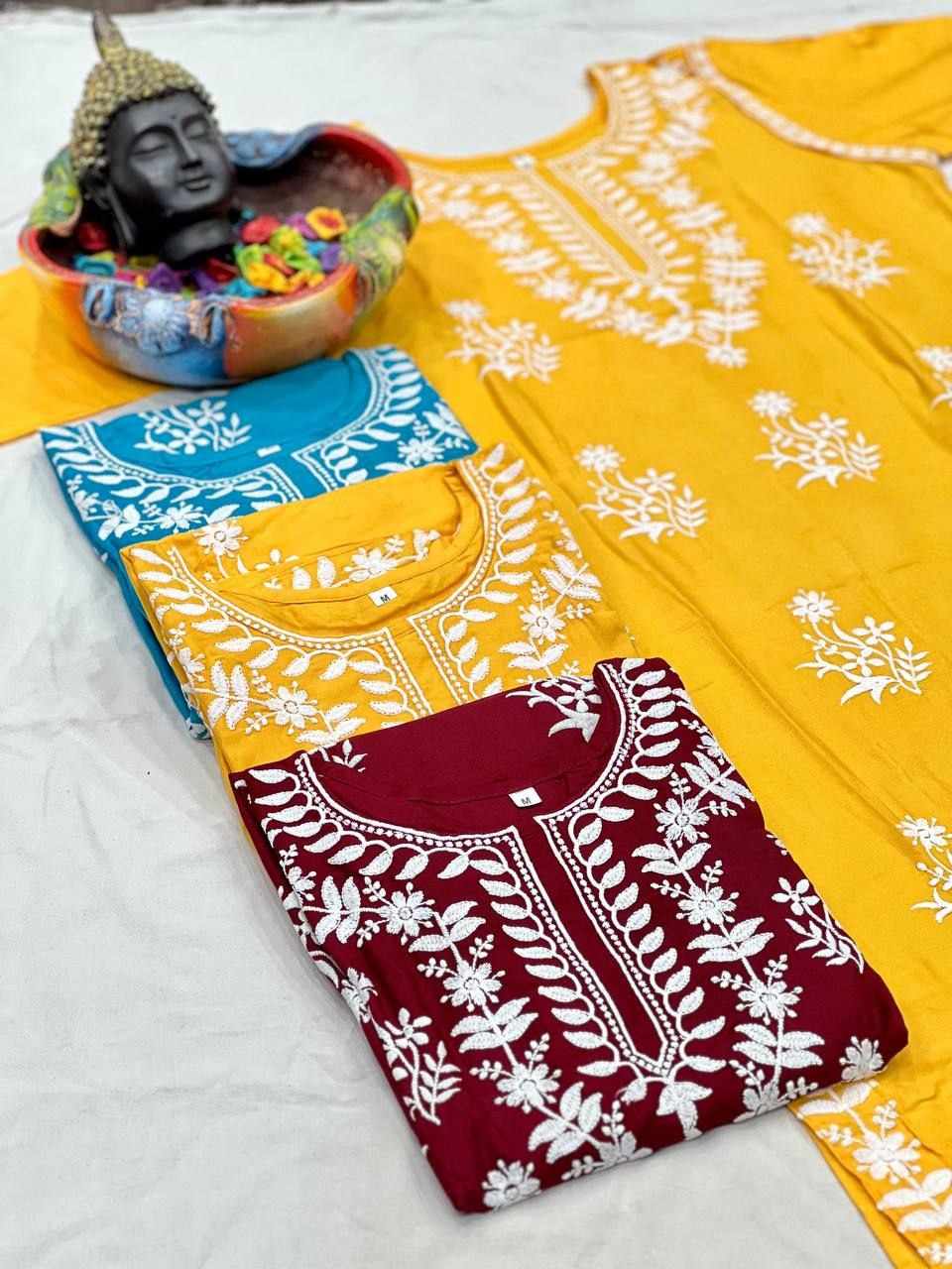 *Fabric :- Top And Pent 14_KG Heavy Rayon With Embroidery Work*