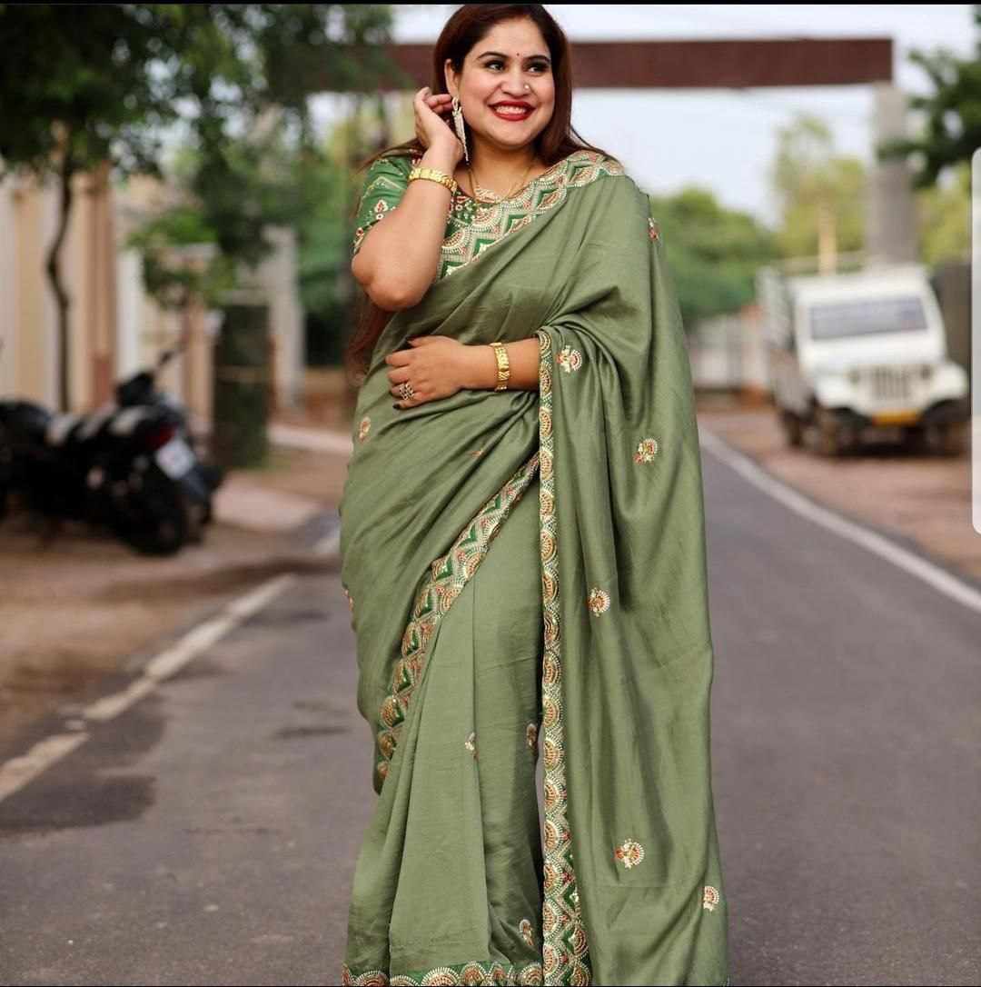*SAREE :- Vichitra Silk With Embroidery Multi Thread And Zari Work*