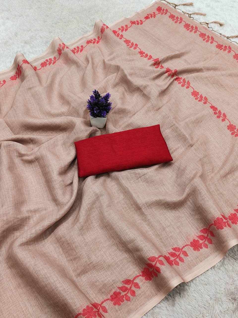 Elegant Linen Cotton Digital Print Saree