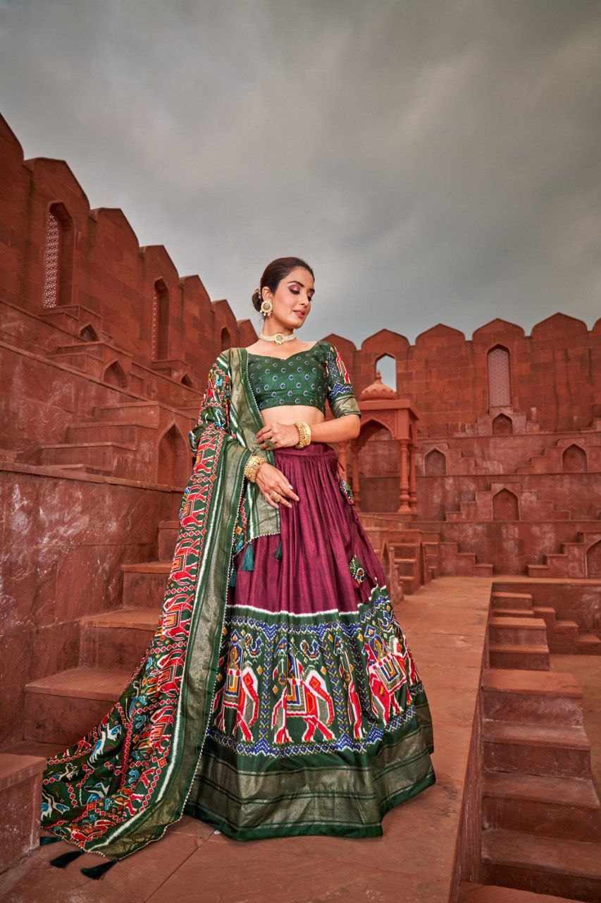 Lehenga Work : Patola Print with foil work