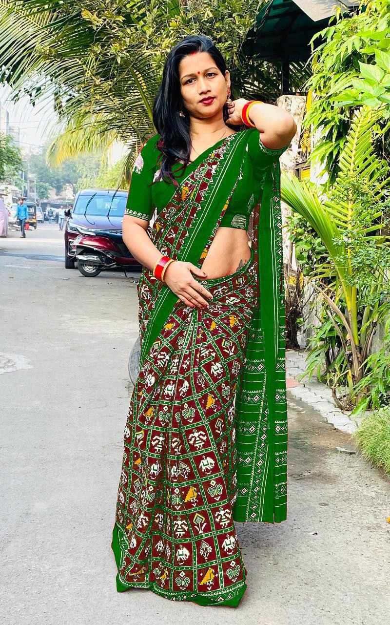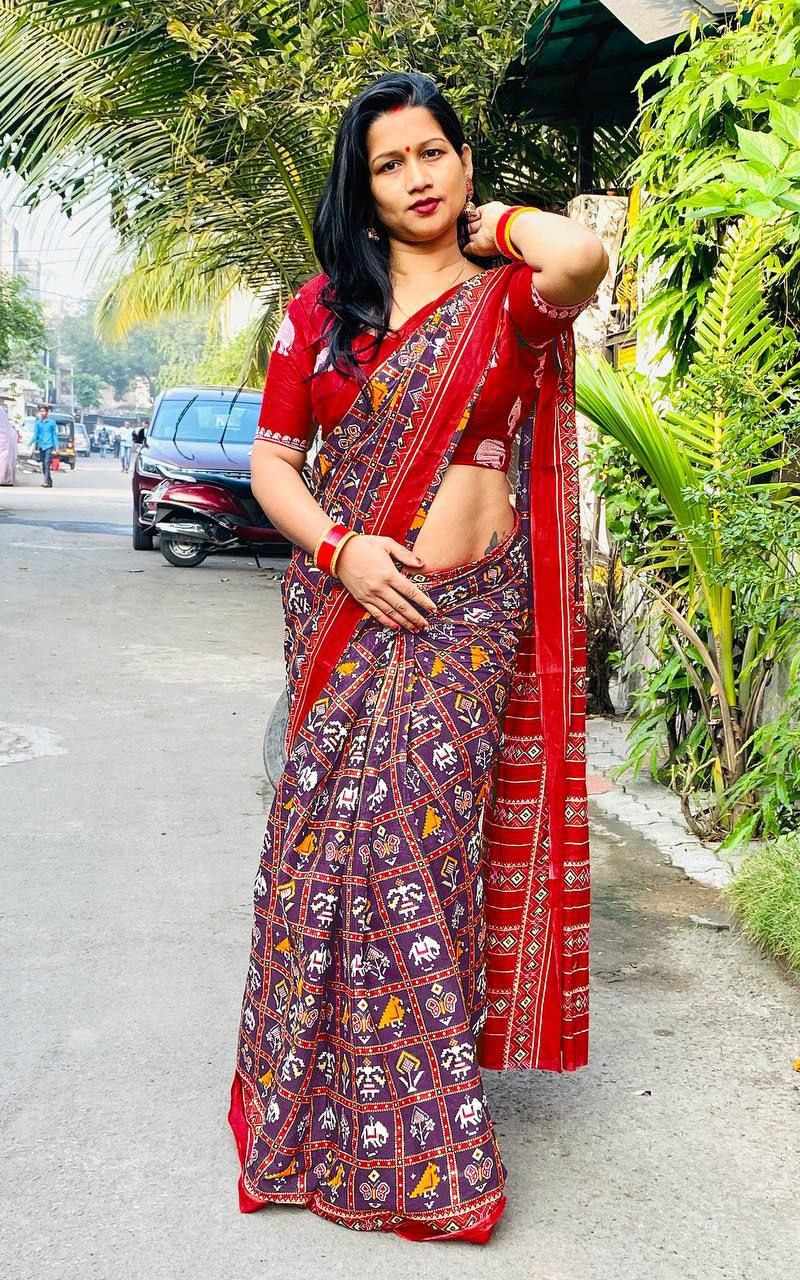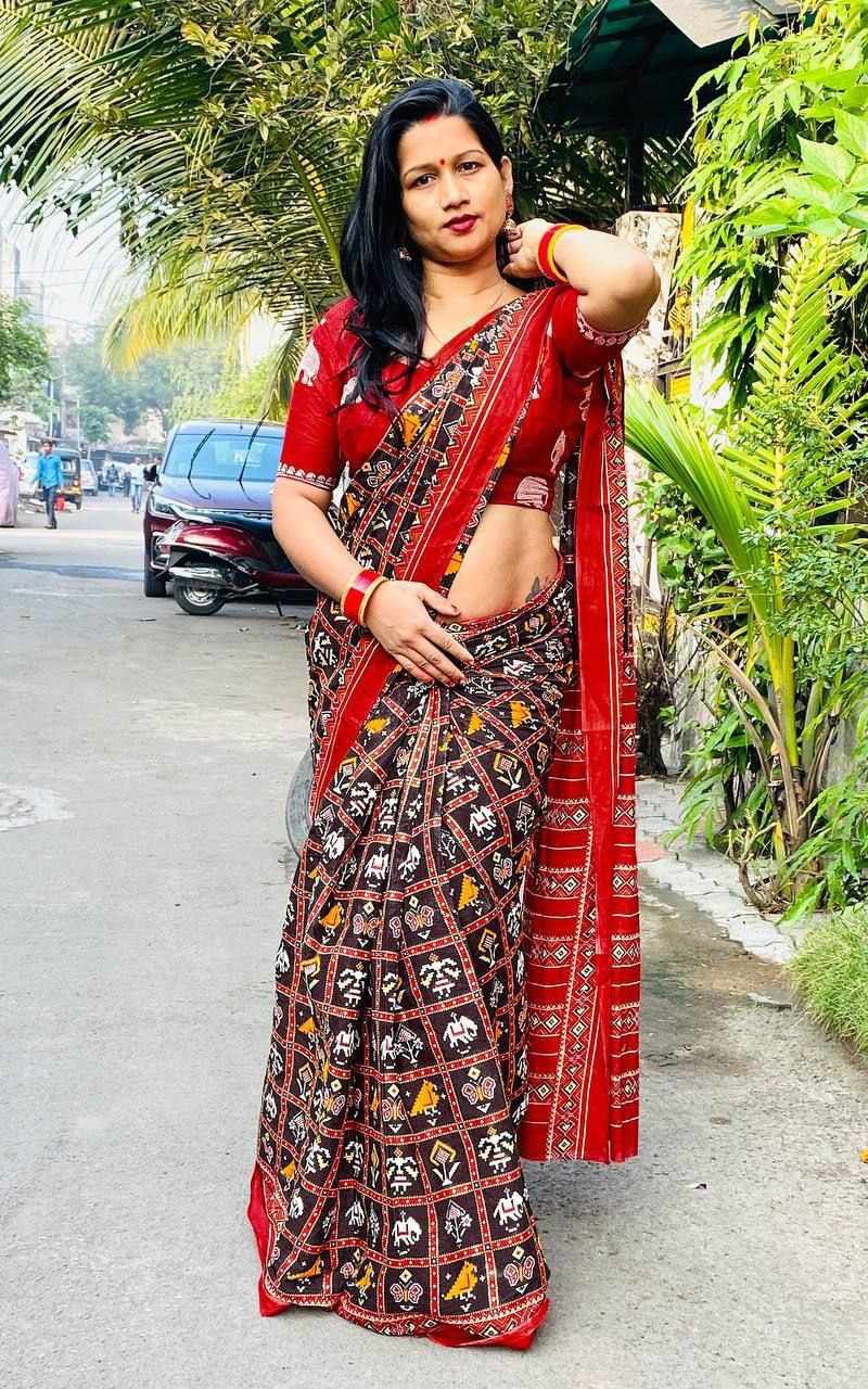 SAREES : *6.30 MTR PURE COTTON PATOLA GOLDEN FOIL WORK AND PRINTED SAREES WITH PRINT BLOUSE PICE*