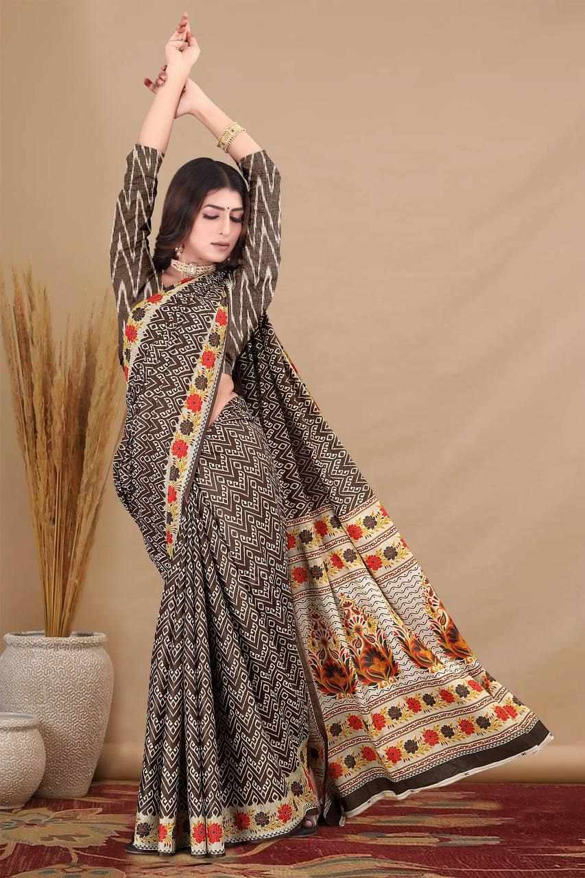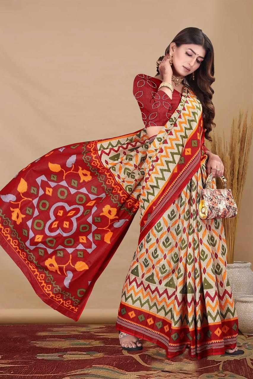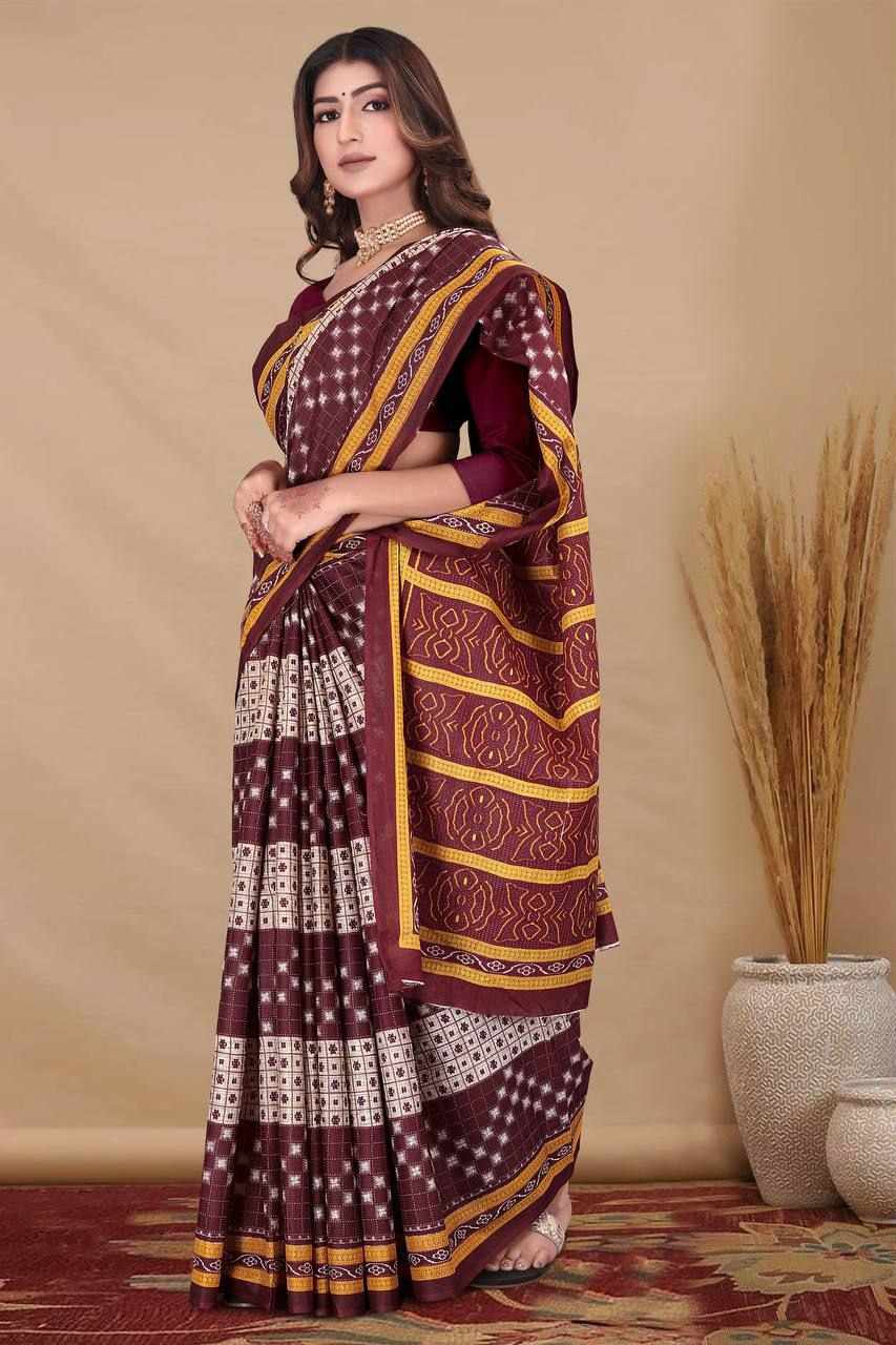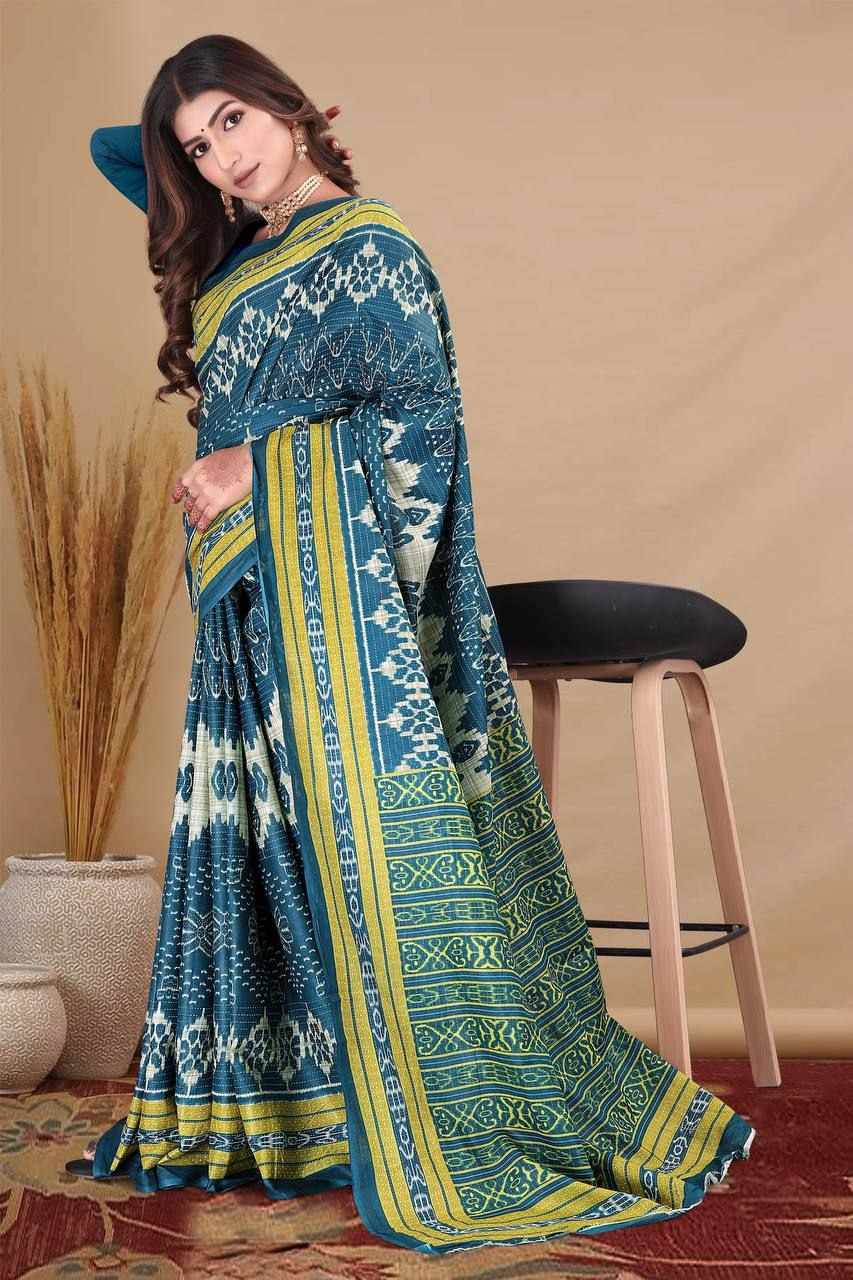 SAREES : *6.30 MTR PURE COTTON IKKAT PRINT SAREES WITH BLOUSE PICE*