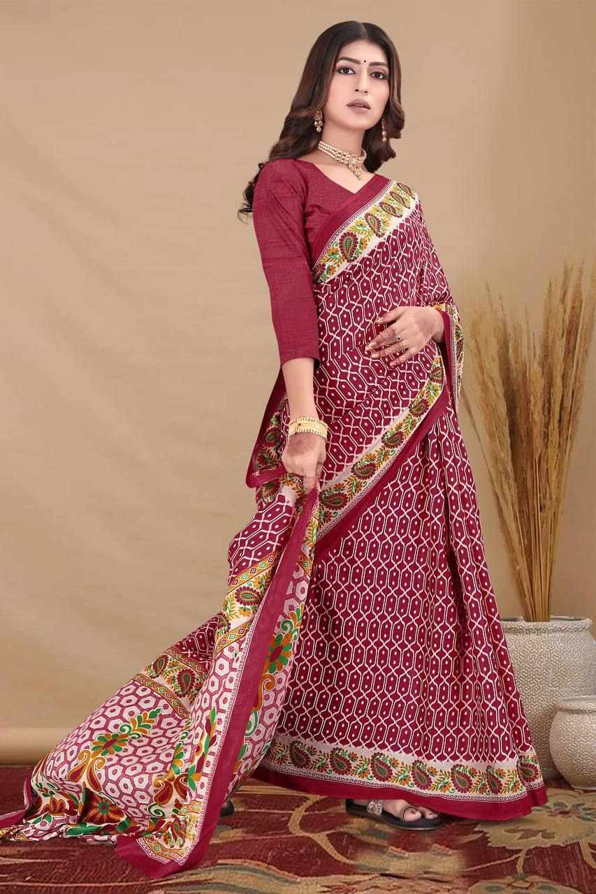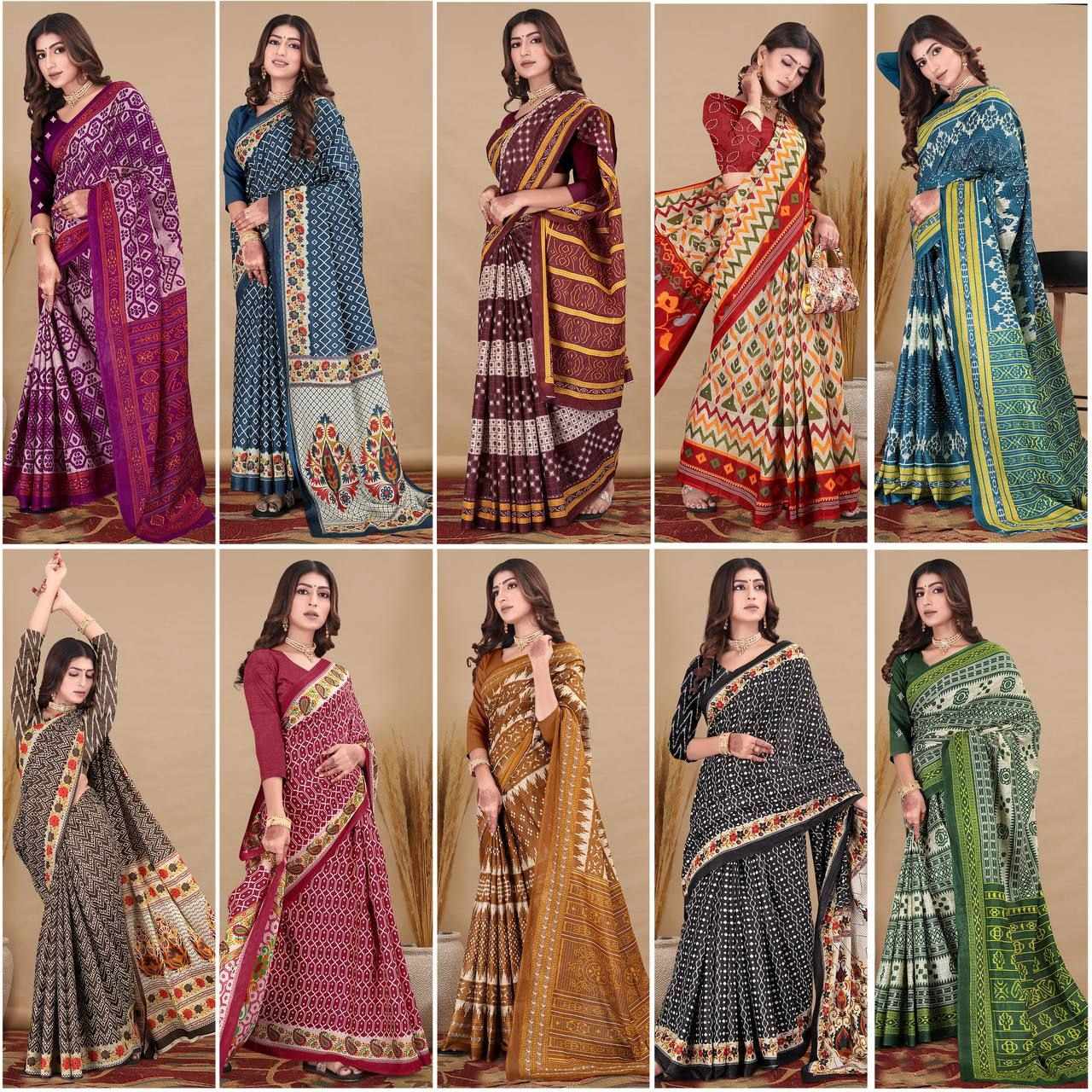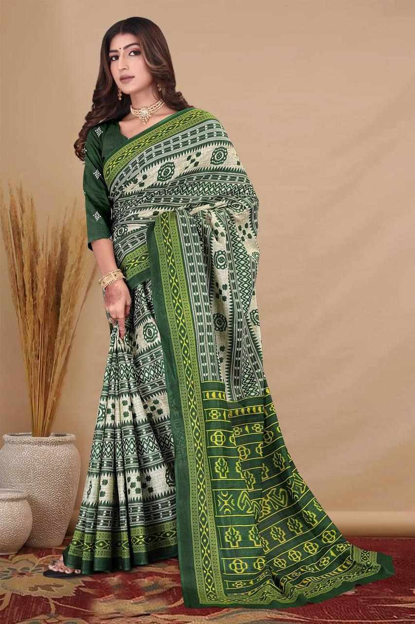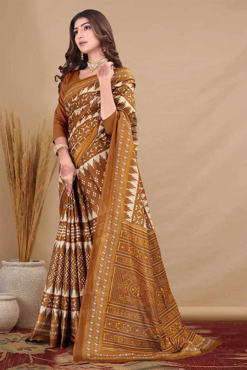 SAREES : *6.30 MTR PURE COTTON IKKAT PRINT SAREES WITH BLOUSE PICE*