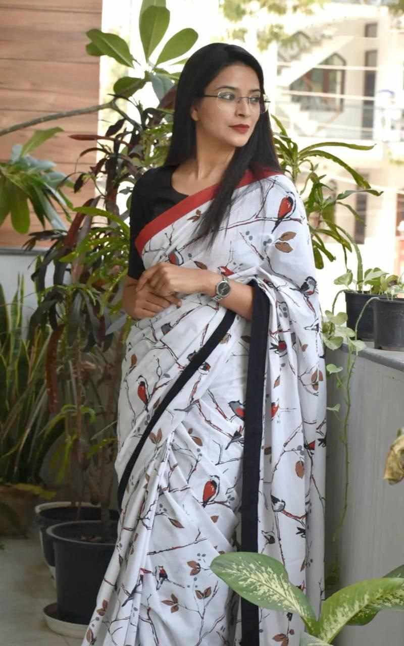 SAREES : *6.30 MTR PURE COTTON JAIPUR BLOCK PRINT SAREES WITH TASSELS AND BLOUSE PICE*