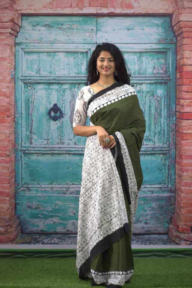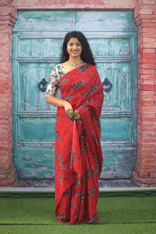 SAREES : *6.30 MTR PURE COTTON JAIPUR BLOCK PRINT SAREES WITH UNSTITCHED BLOUSE PICE*