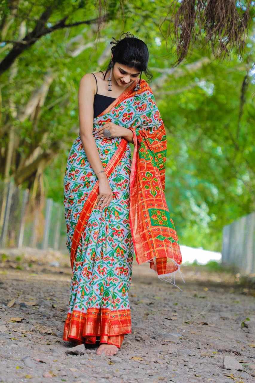 [ zari weaving border and beautiful HD patola print and attractive on pallu ]