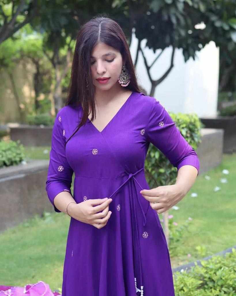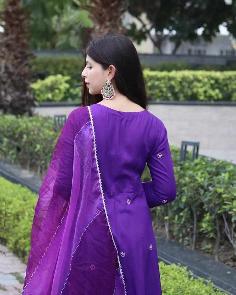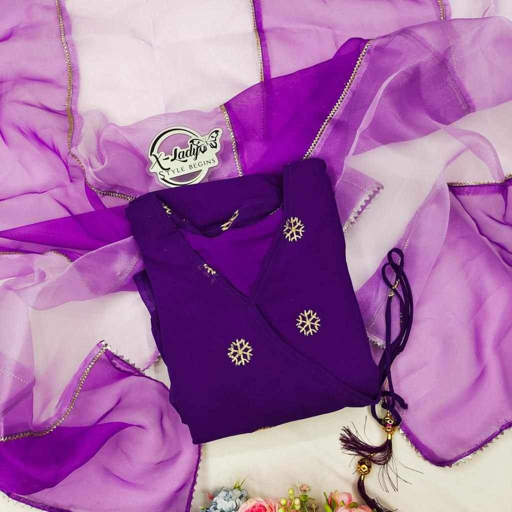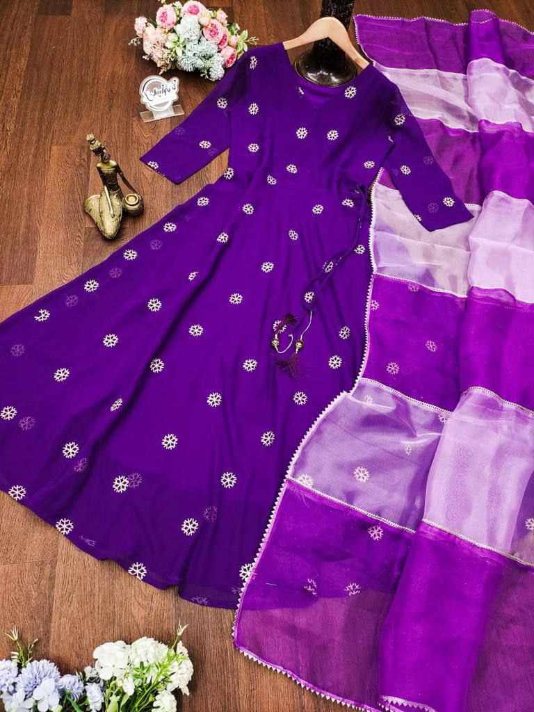 Upcoming festival special embroidery butti gown with double Color organza dupatta with gotta lace