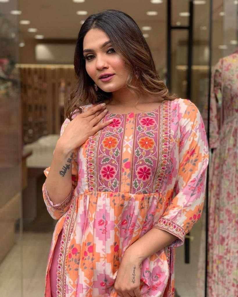 Premium masleen cotton print Top with beautiful embroidery stich work on yoke &