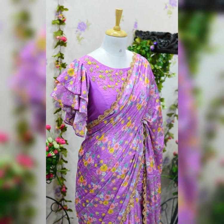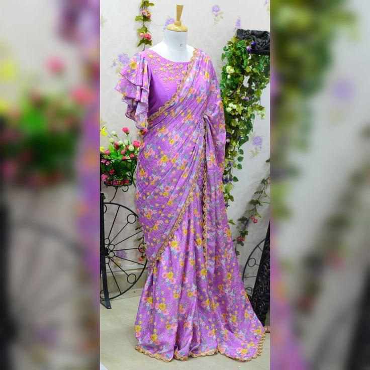*FABRIC* : Beautiful Pure Georgette Saree with Print on All Side Attached Heavy Moti Lace.