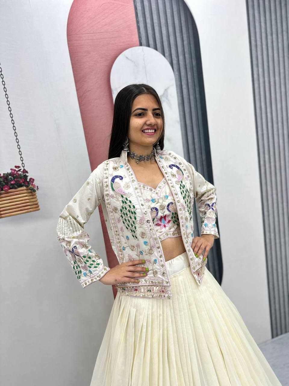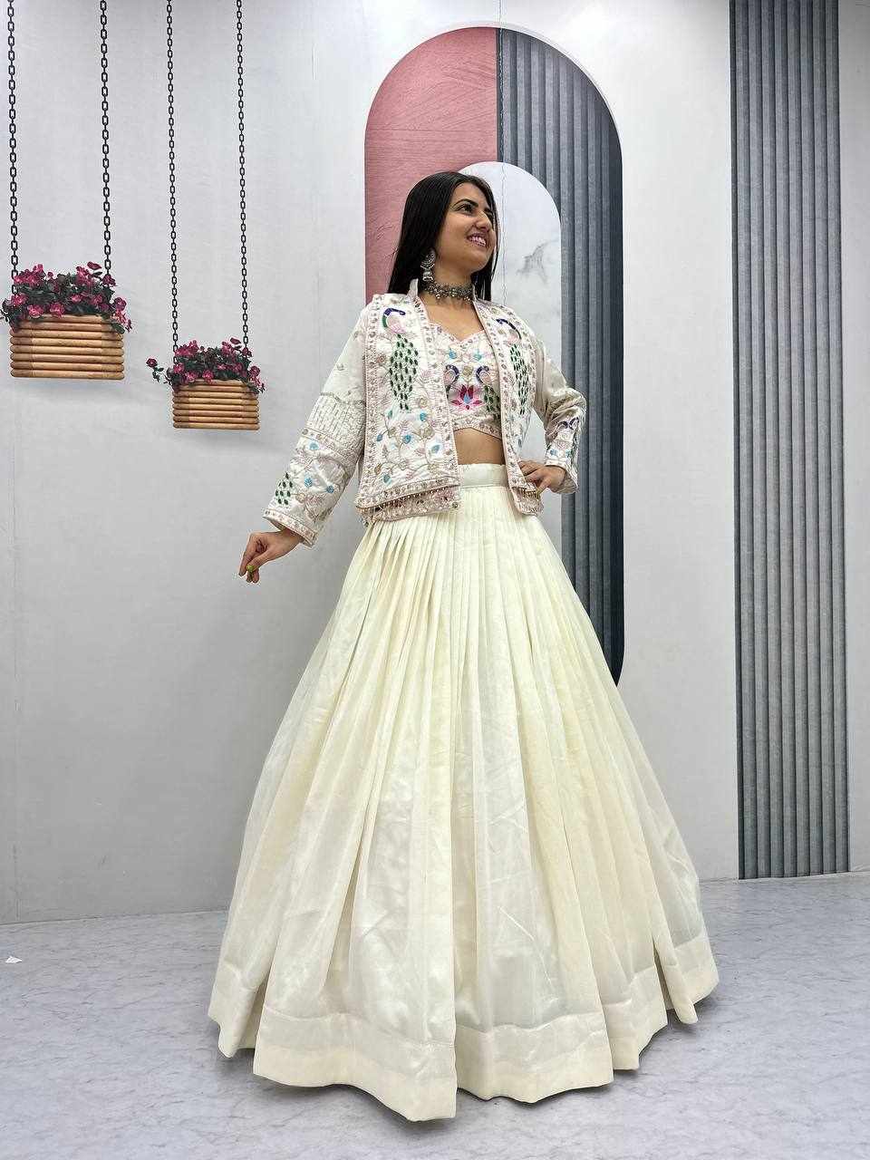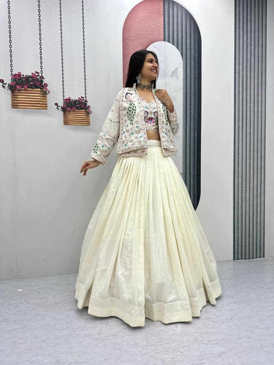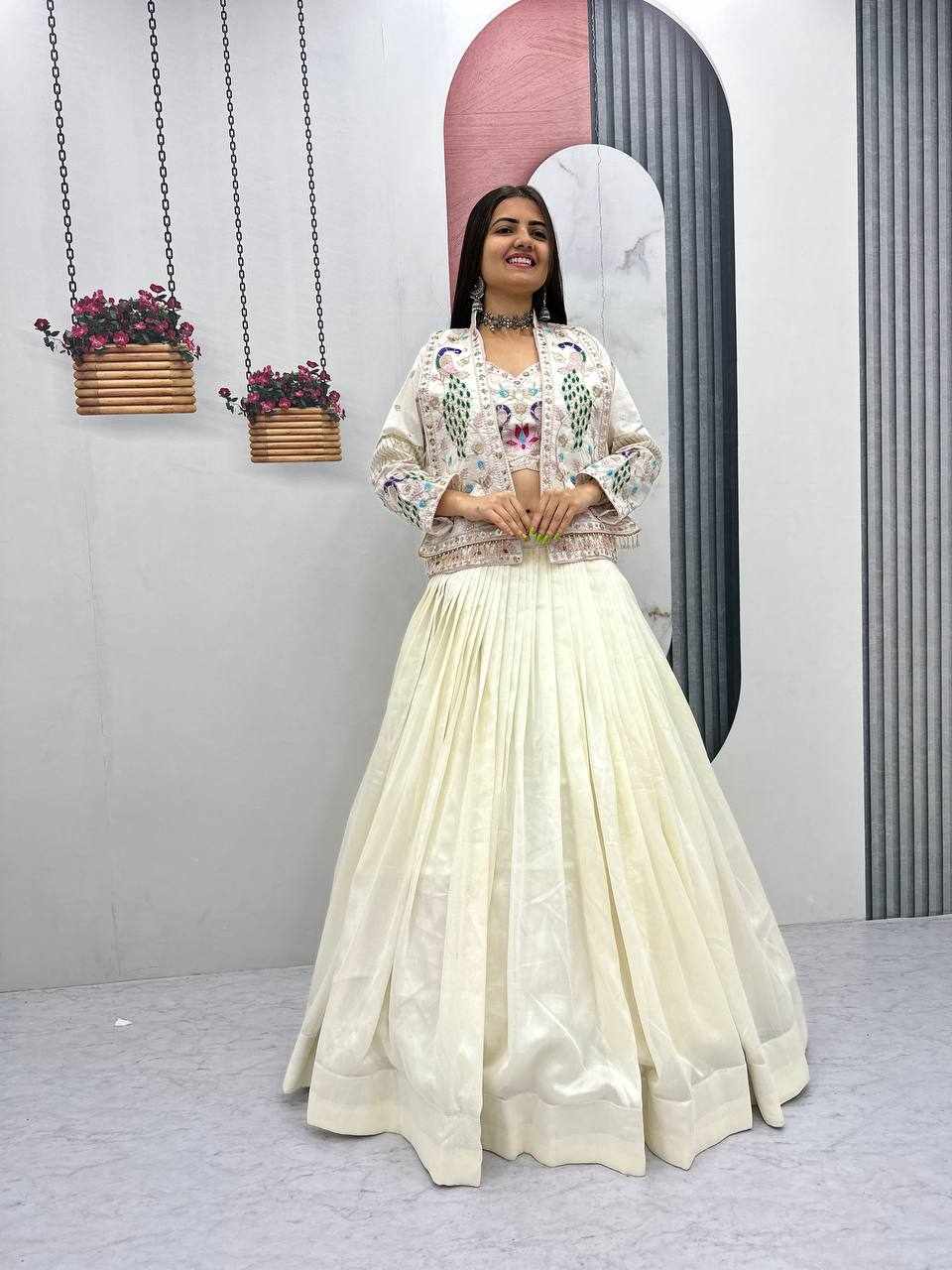 PC 559 New Modern Party Wear White Lehnga With Jacket