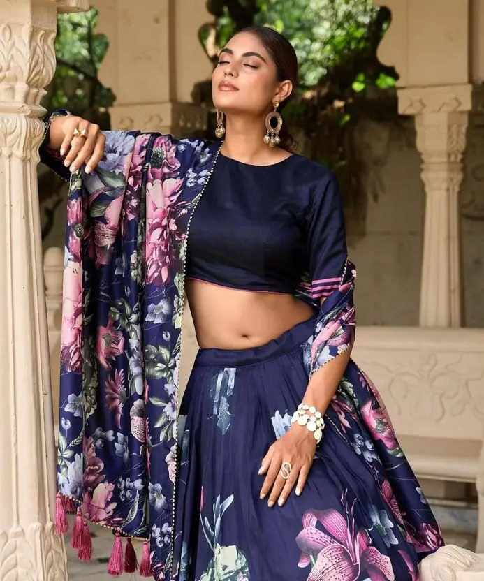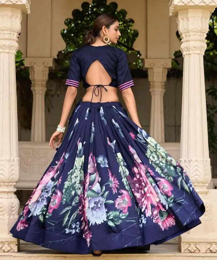 | Name : | PIYU 26-1 Silk Digital print Navy Blue Lehnga |