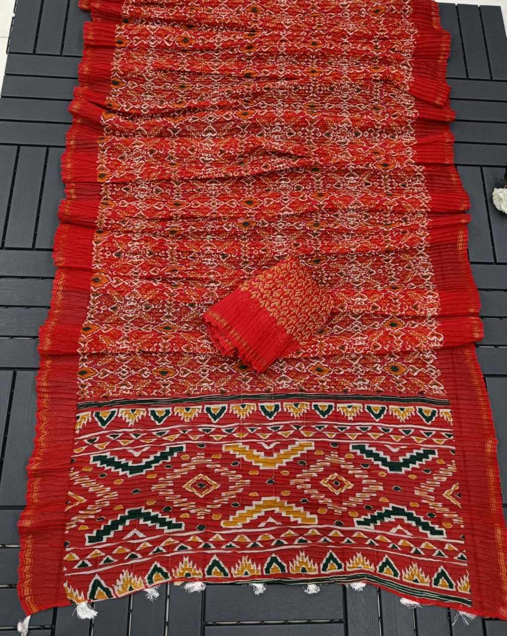 Fabric cotton lilan and patola style printed sarees and pallu white Latkan