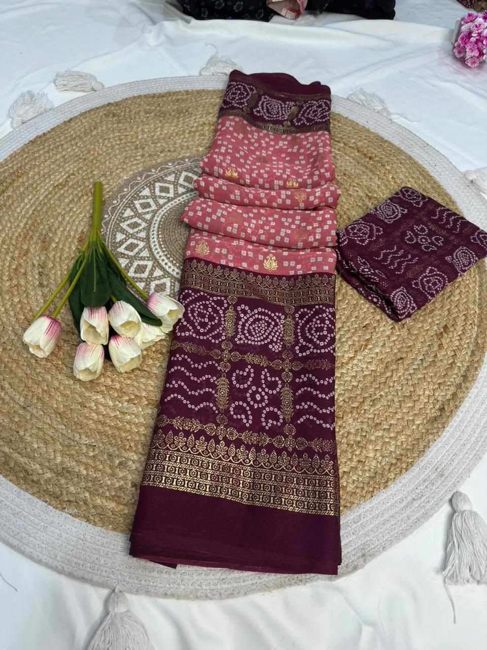 Saree Work : Bandhej mill print
