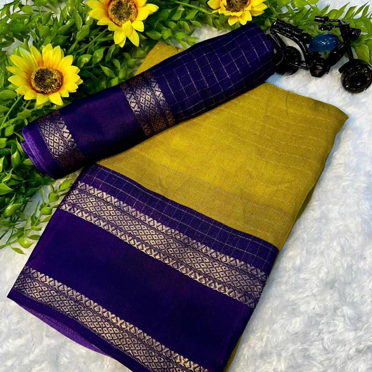 Saree Fabric : jeqard border with mill printed sarees design