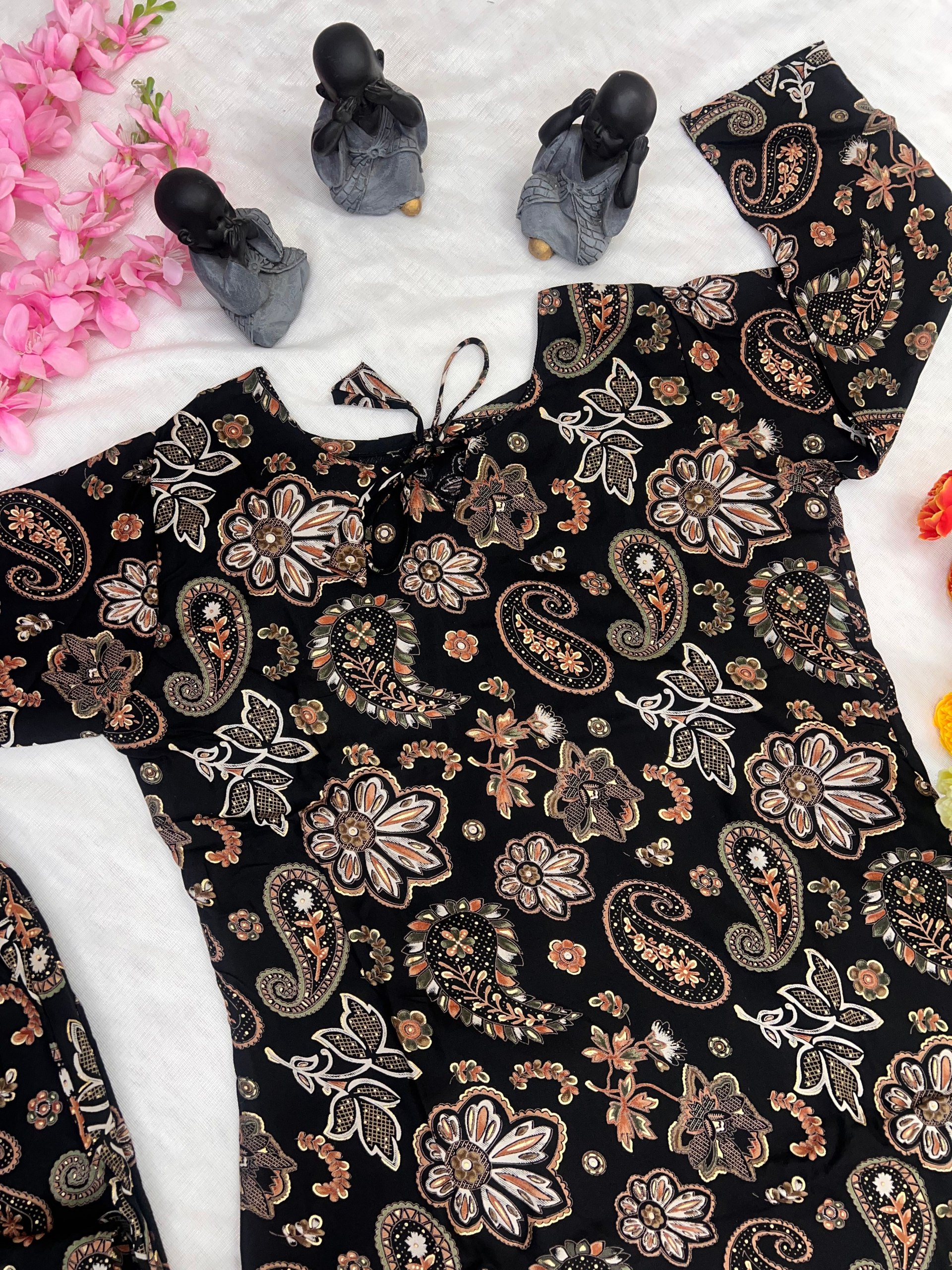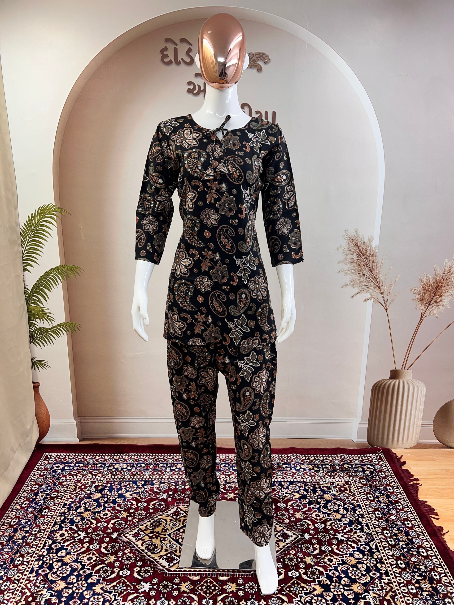 Name : WM 24 Black Pure Soft Rayon Cotton Co-ord Set
