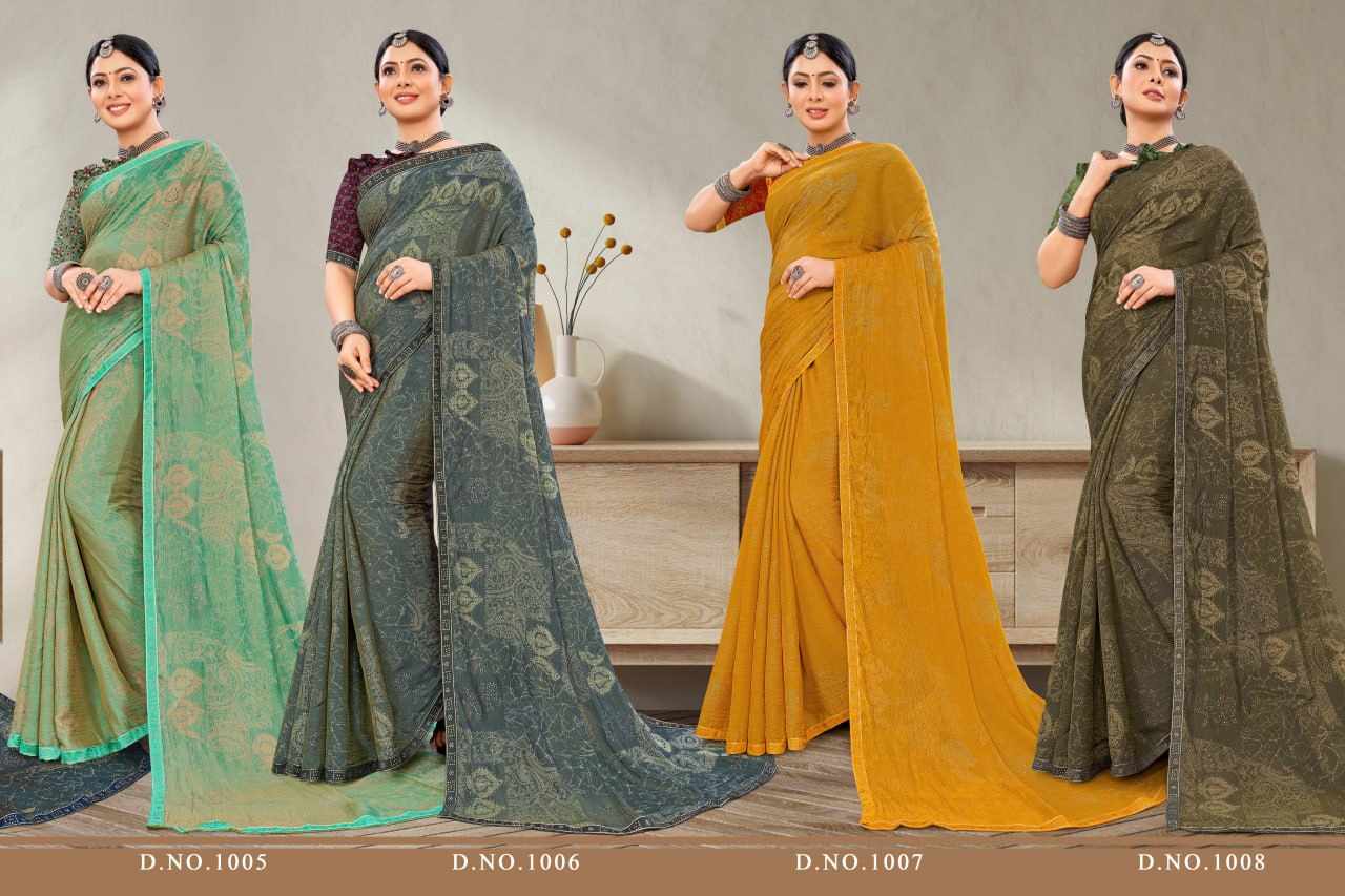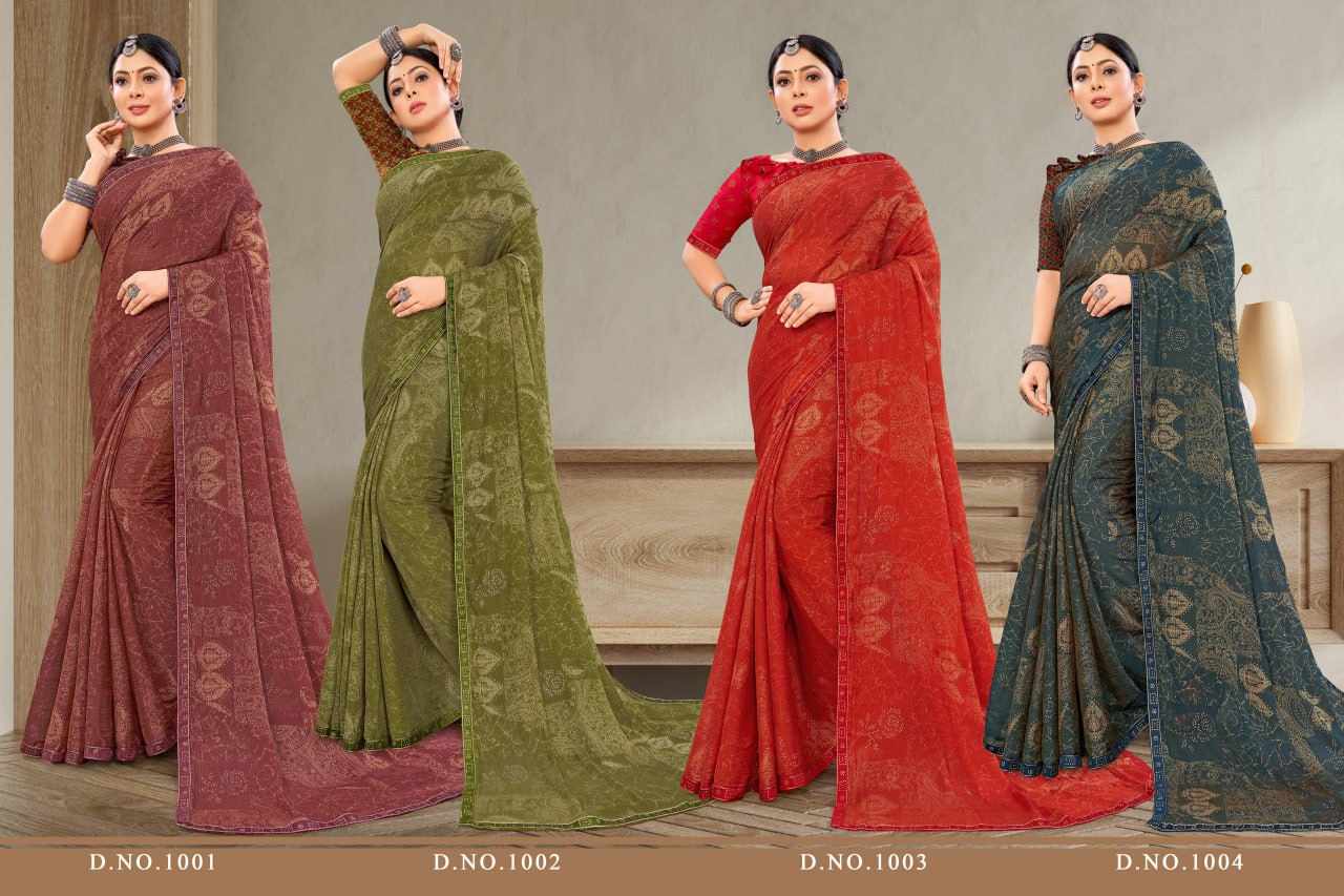 Radhika Rainbow Moss Shiffon With Jari Concept Saree With Jacquard Blouse With Fancy Siroski Border In Wholesale LFC