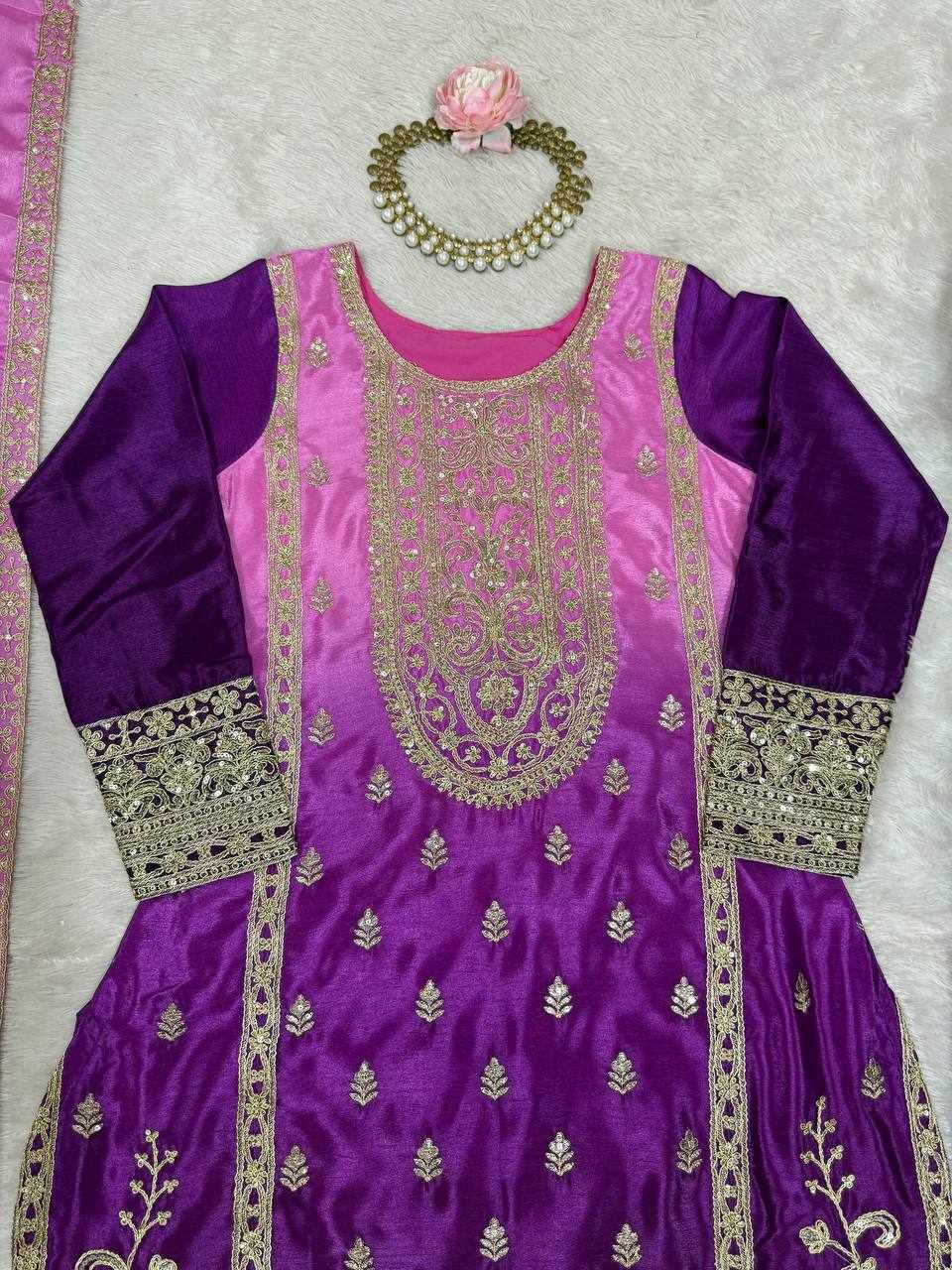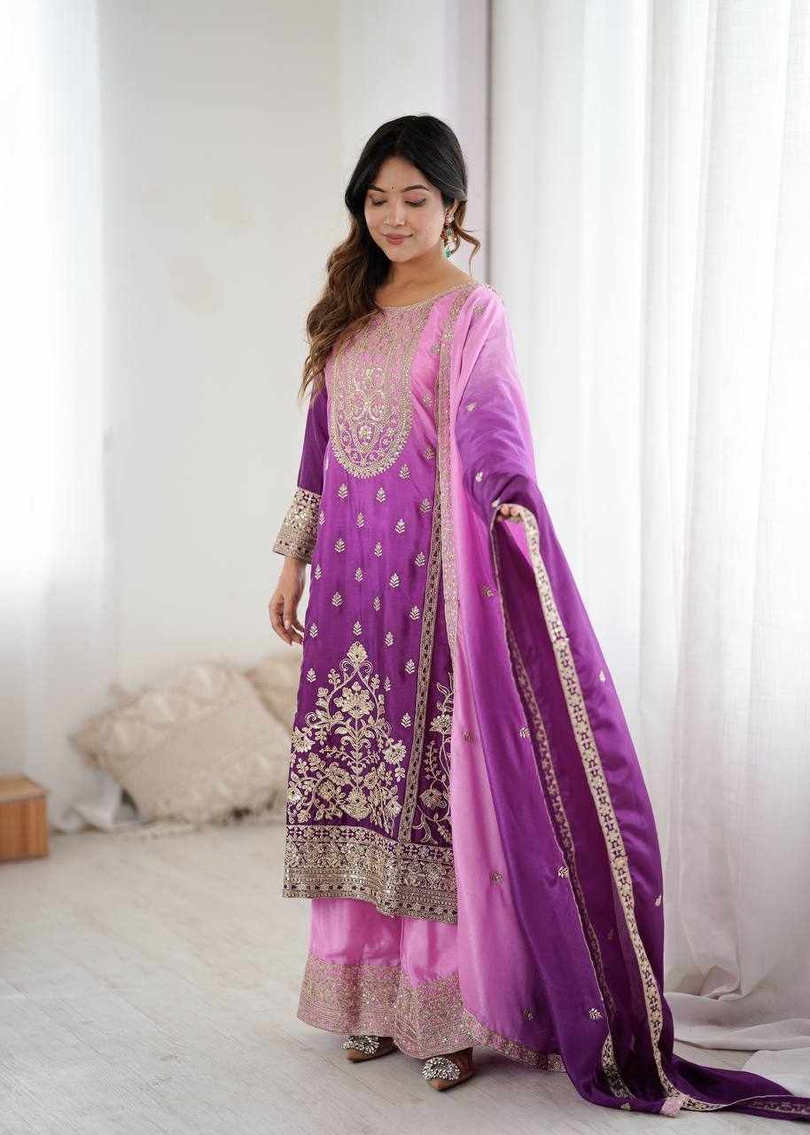 Elegant Shaded Chinon Silk Suit Set