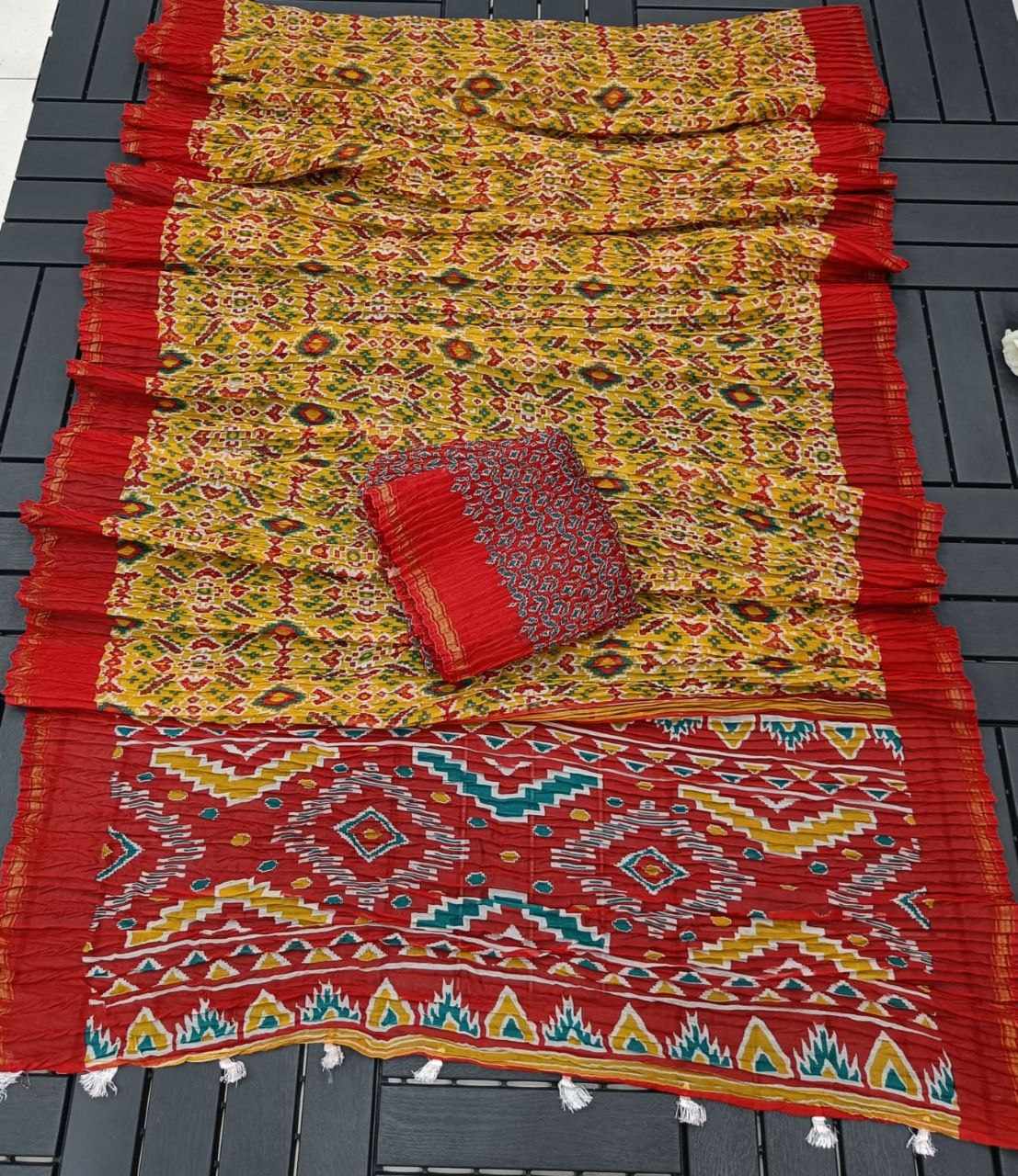 Fabric cotton lilan and patola style printed sarees and pallu white Latkan