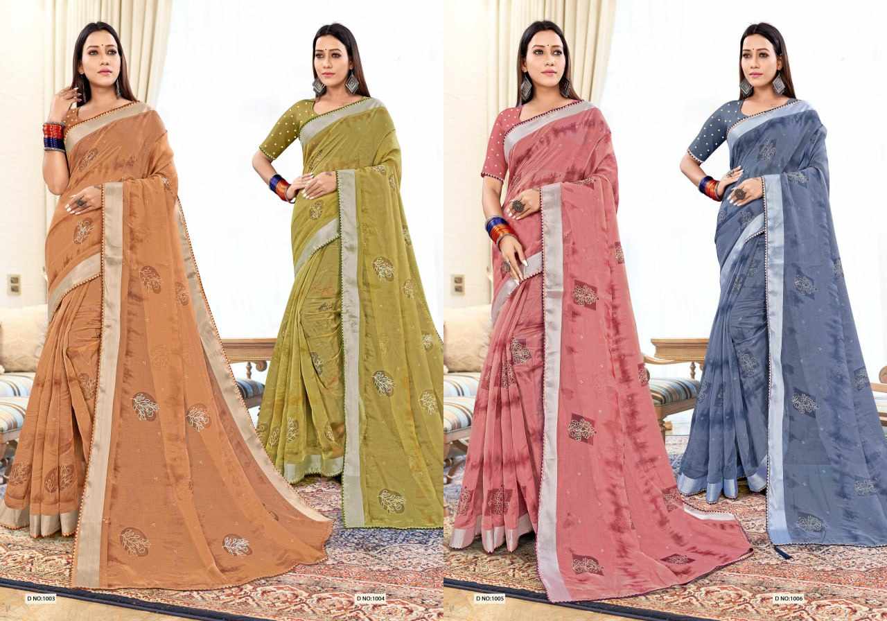 SAAVAN Organja Saree With Silver Border With Fancy Jacquard Blouse In Wholesale LFC