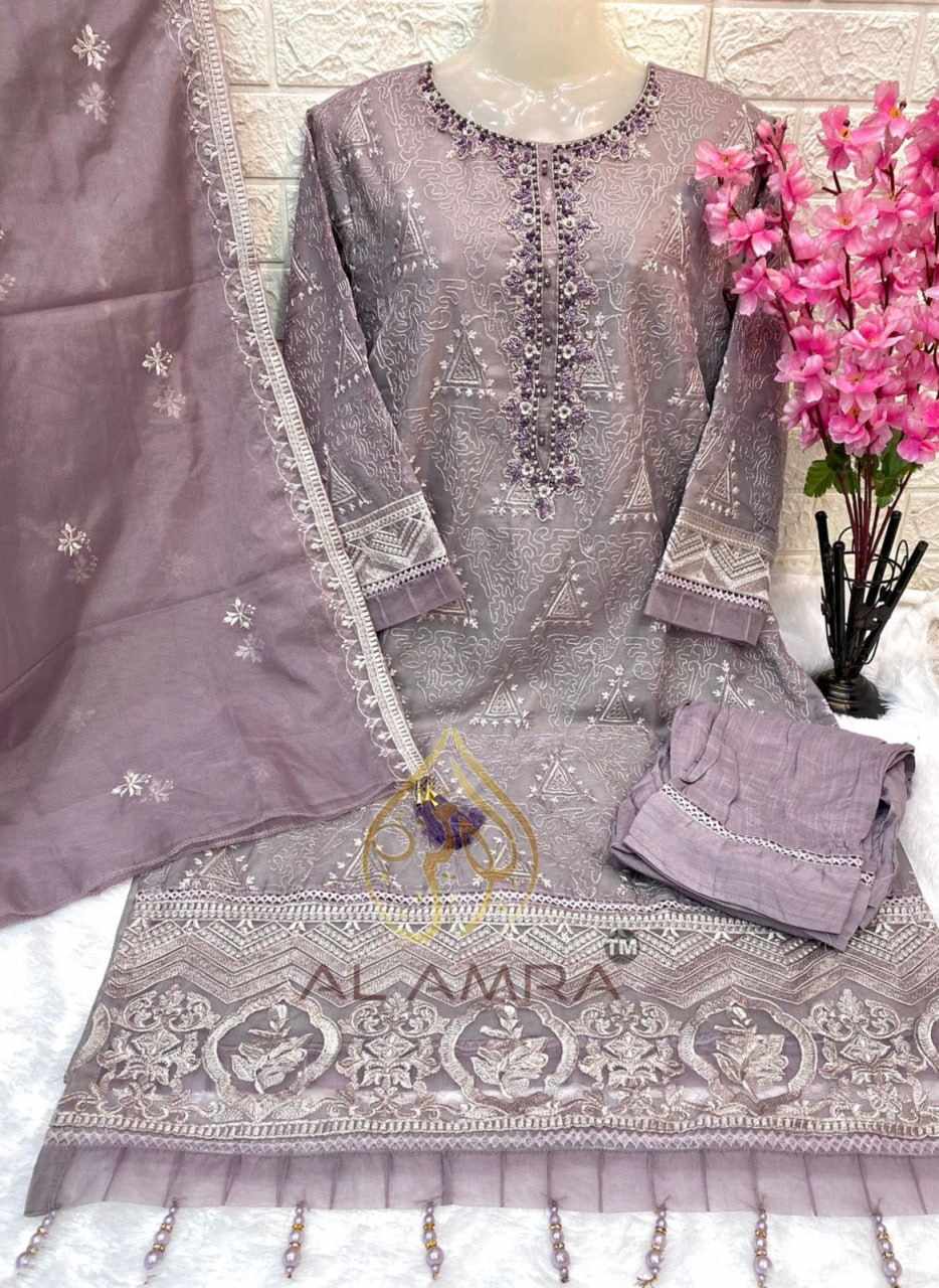 TOP : HEAVY ORGANZA FRONT AND BACK EMBROIDERY WITH INNER SOFT DULL SANTOON AND NECK HEAVY KHATLI HAND WORK