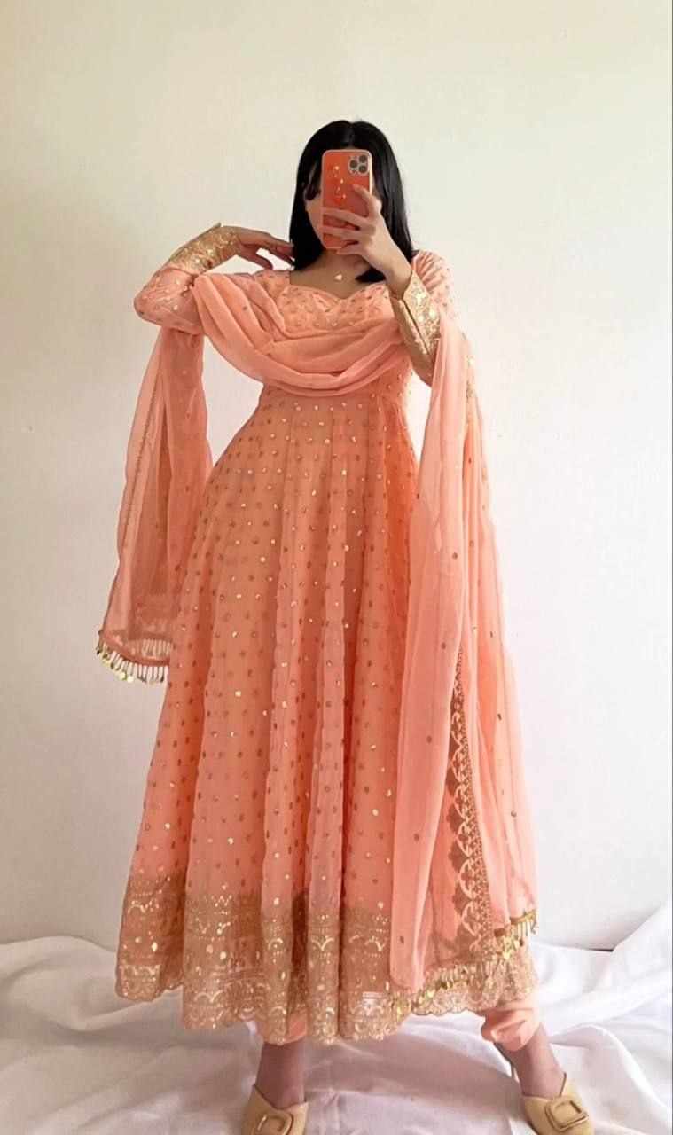 *Gown Fabric* :Faux Georgette With *Full Heavy Embroidery Sequence Work* With *Full Sleeve and Attached Pad*