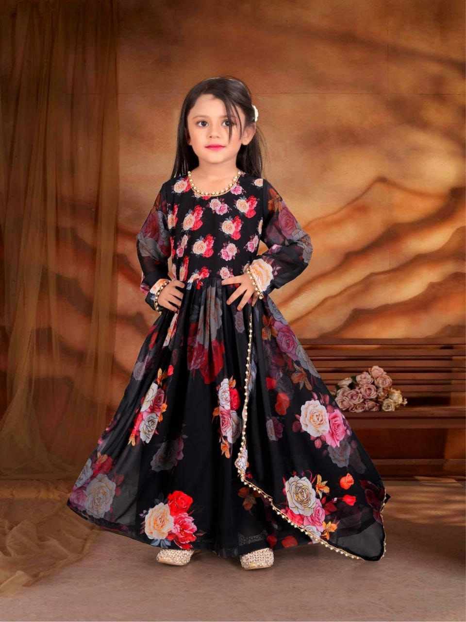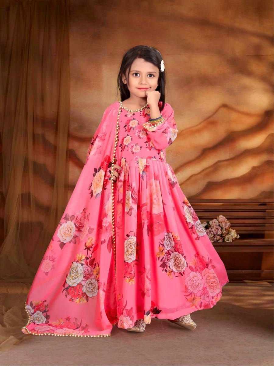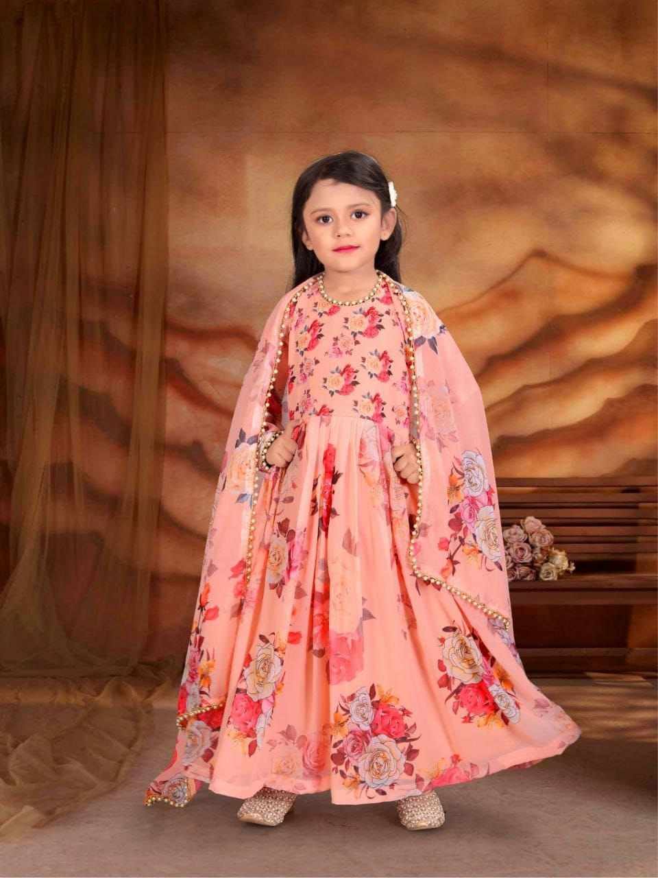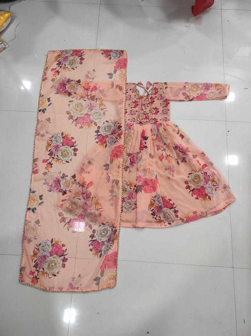 Gown:Georgette with floral digital print & complete lining & pearl lace border