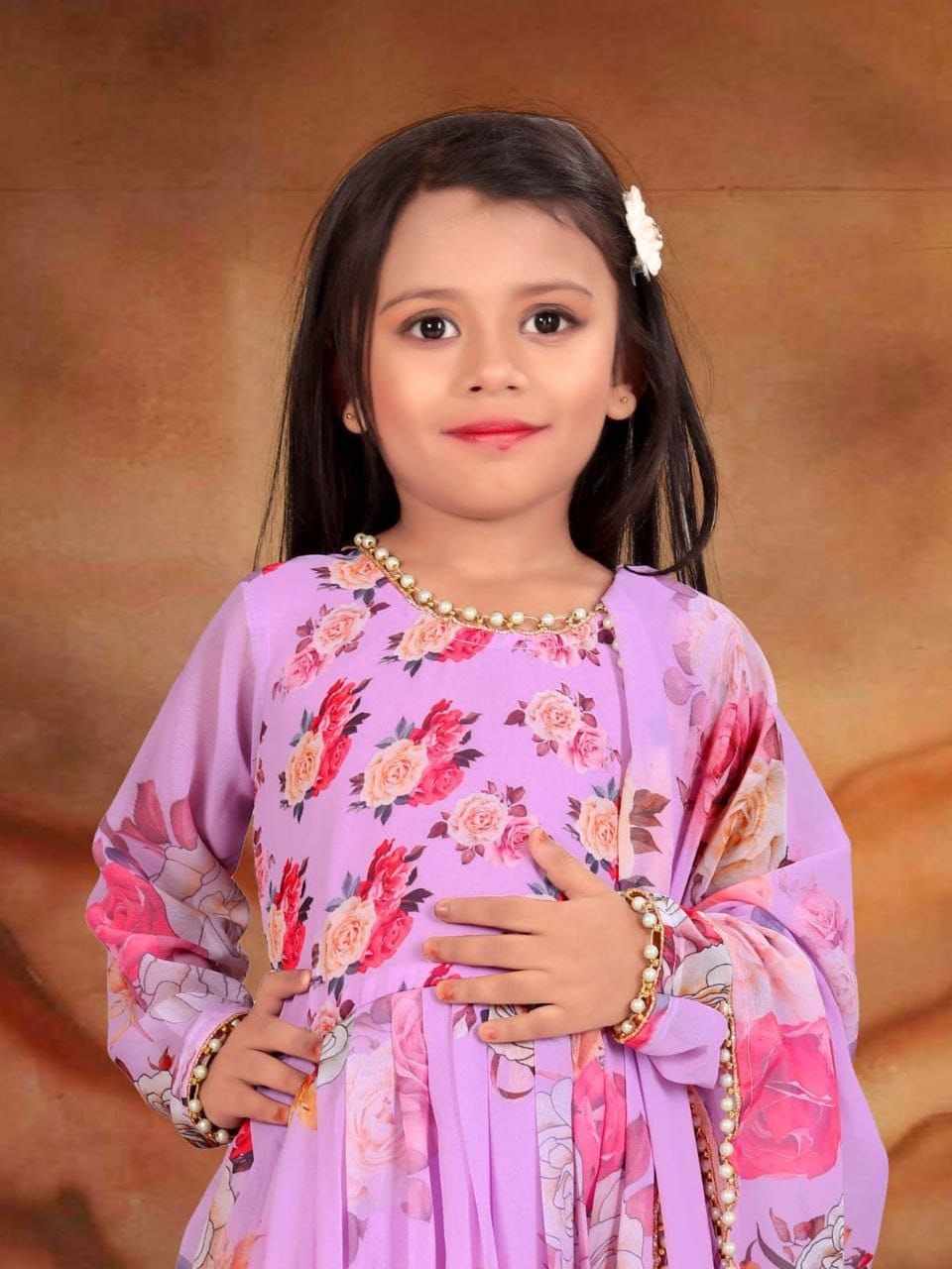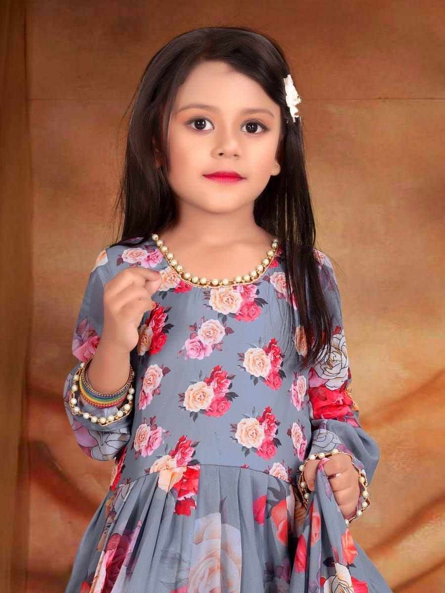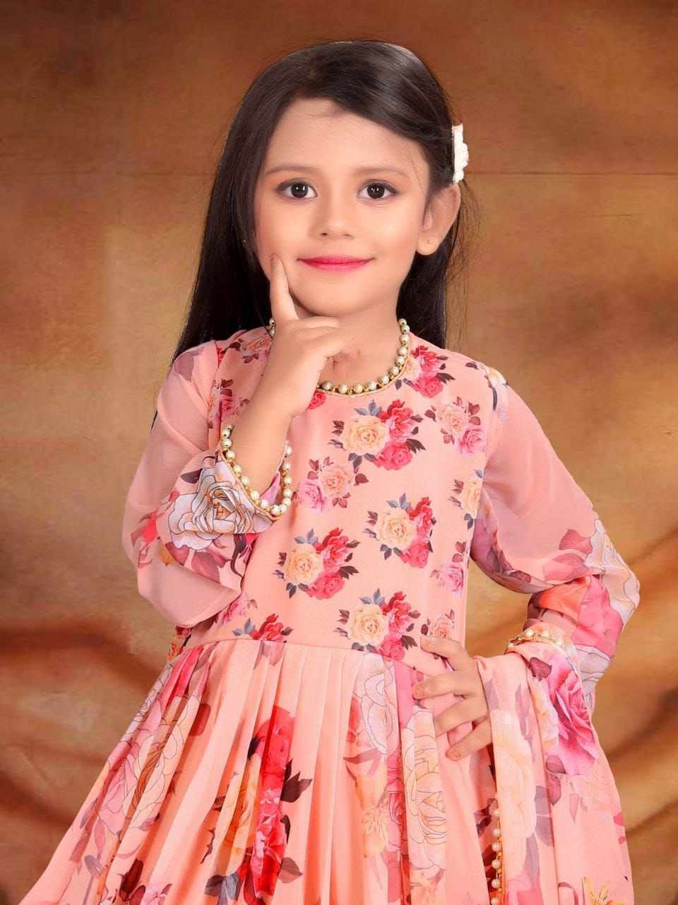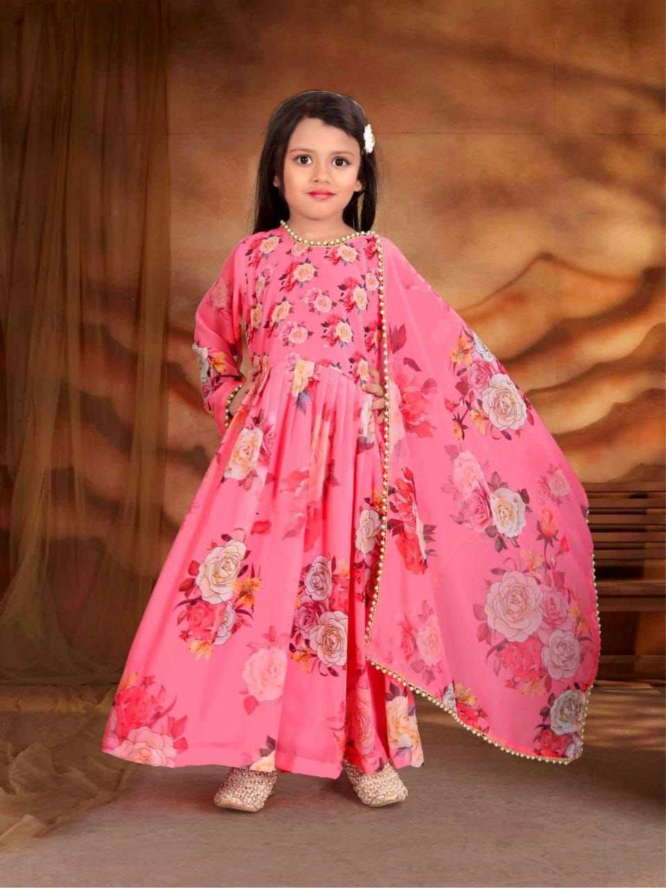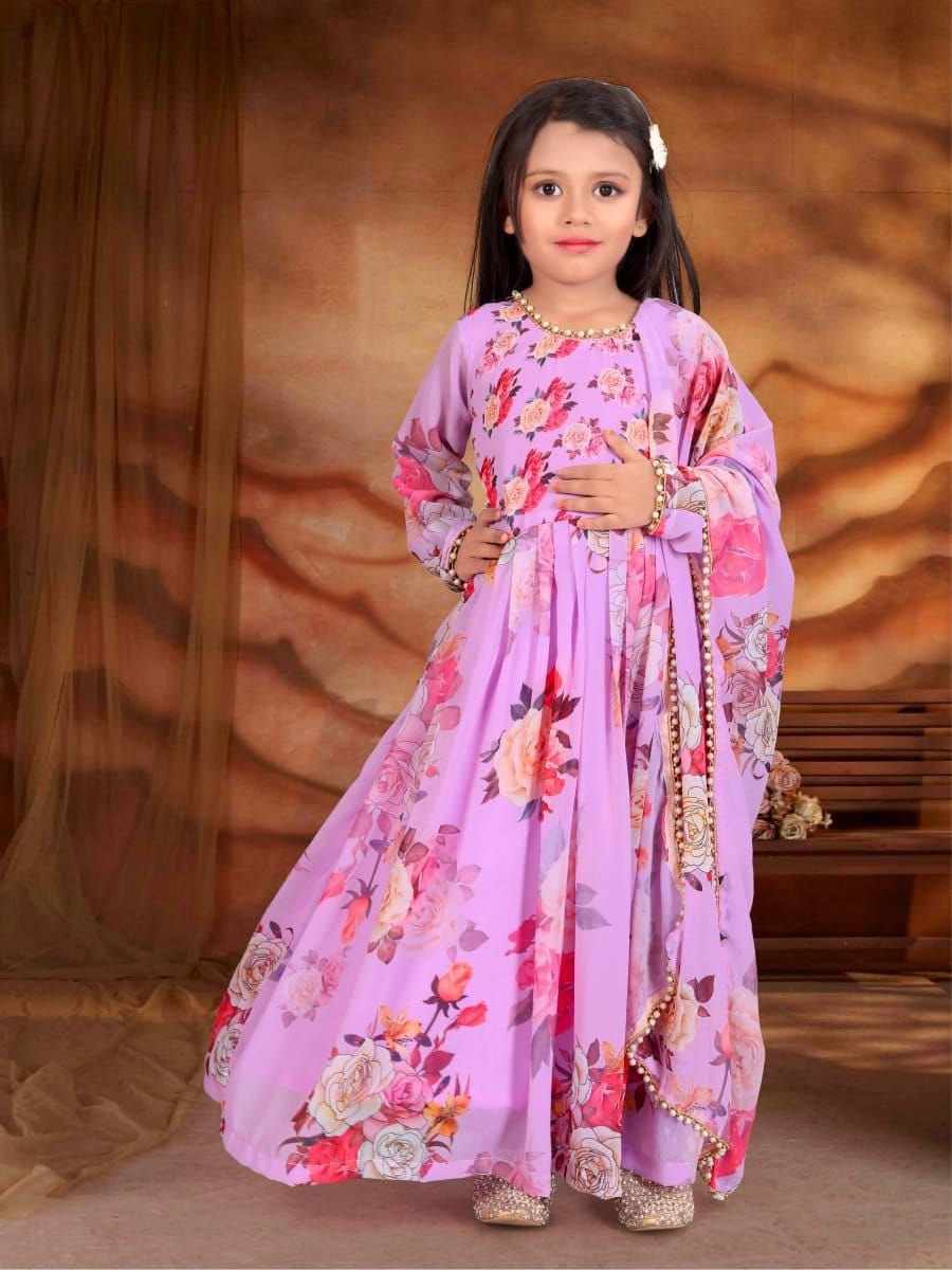 Gown:Georgette with floral digital print & complete lining & pearl lace border