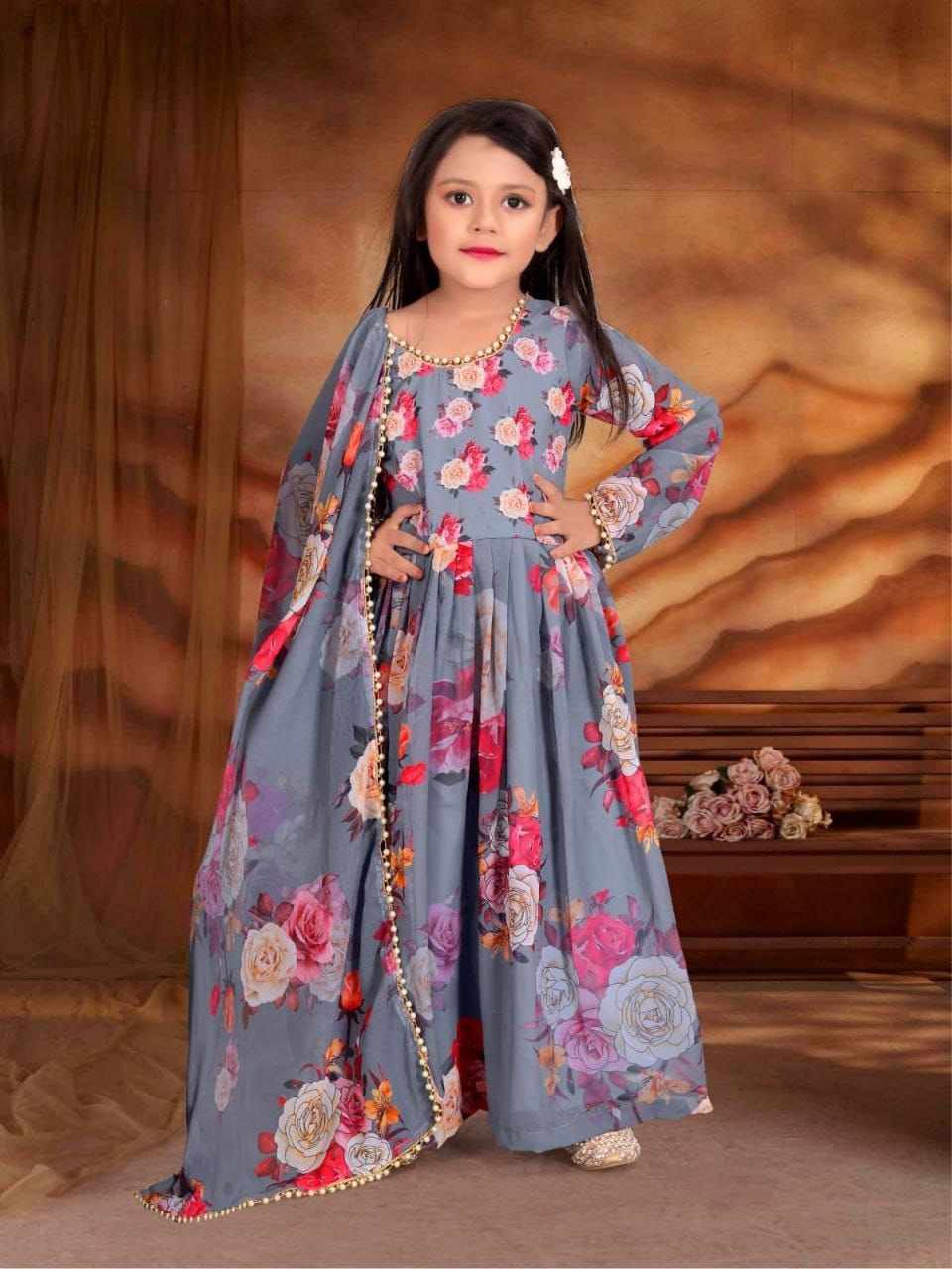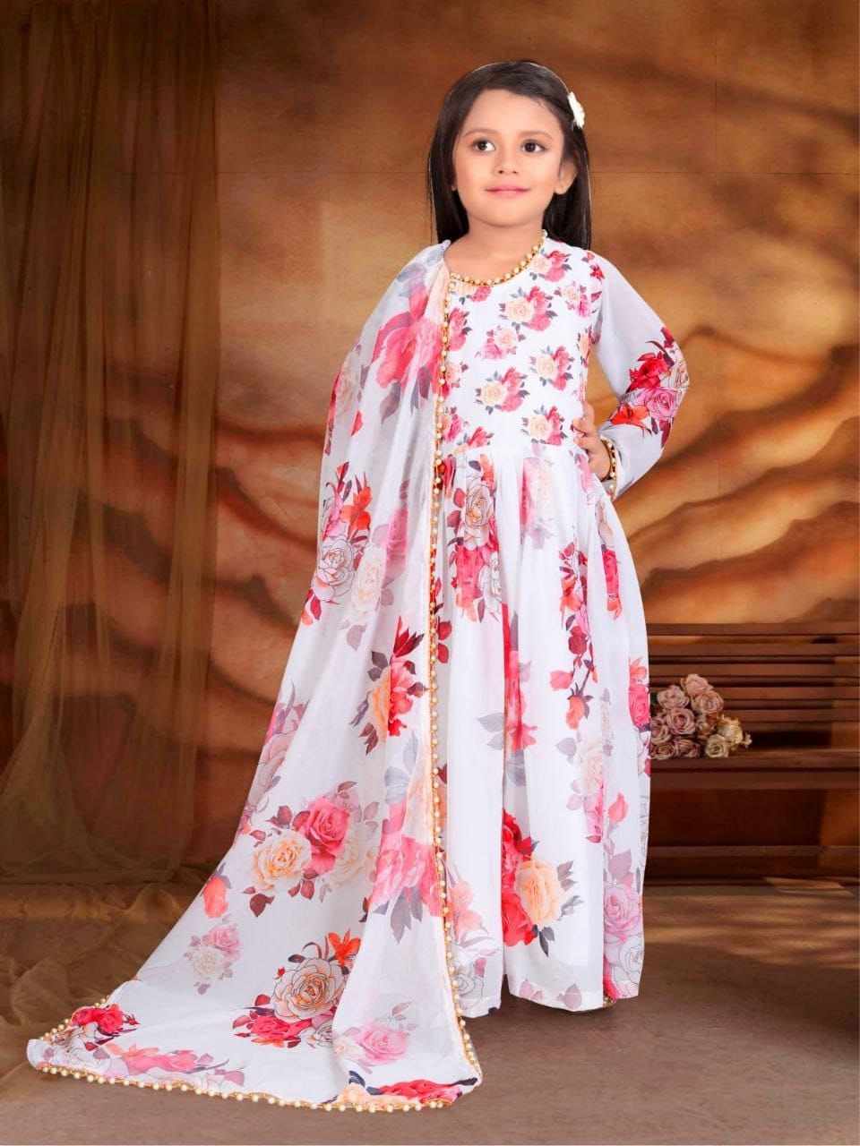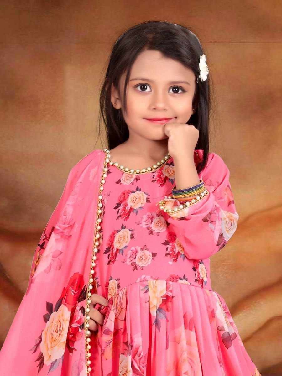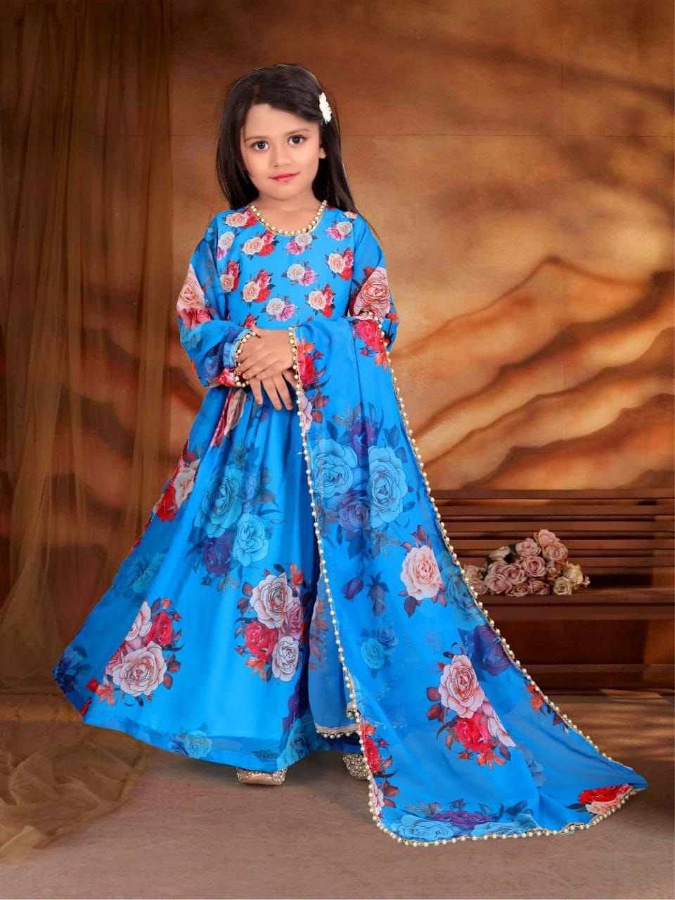 Gown:Georgette with floral digital print & complete lining & pearl lace border