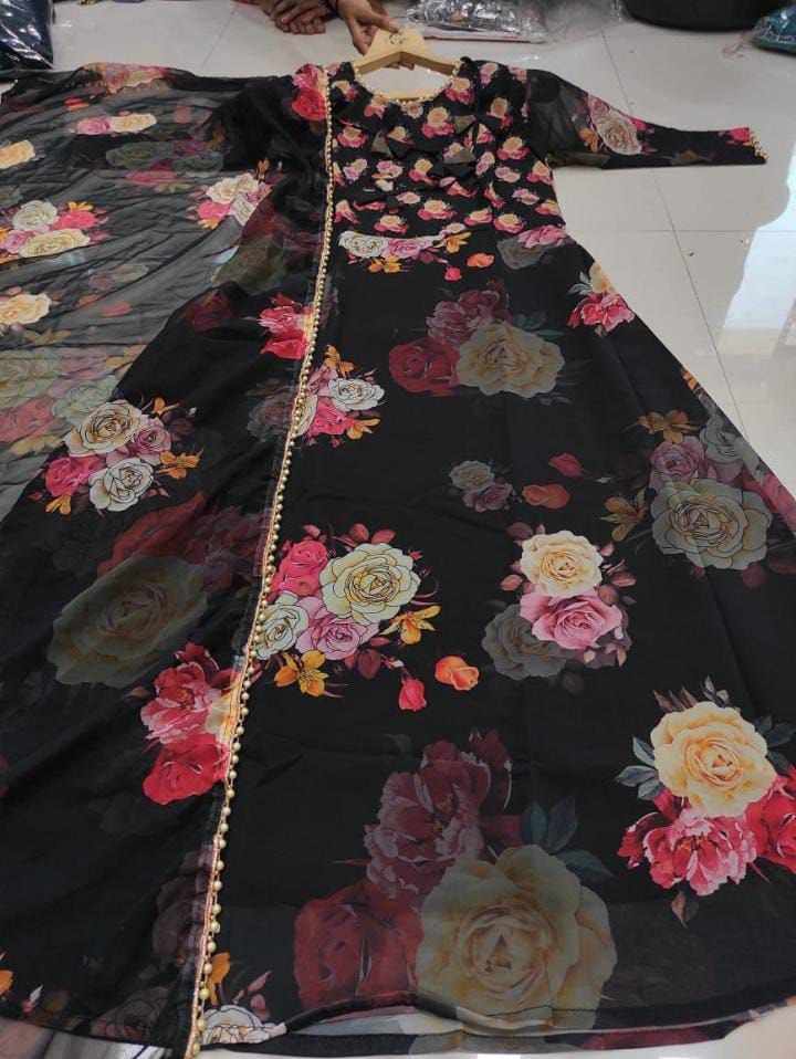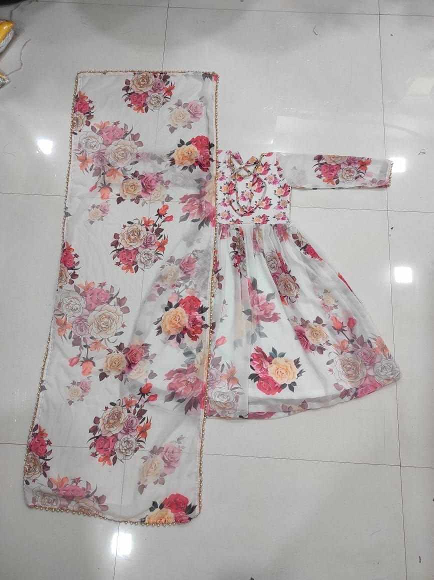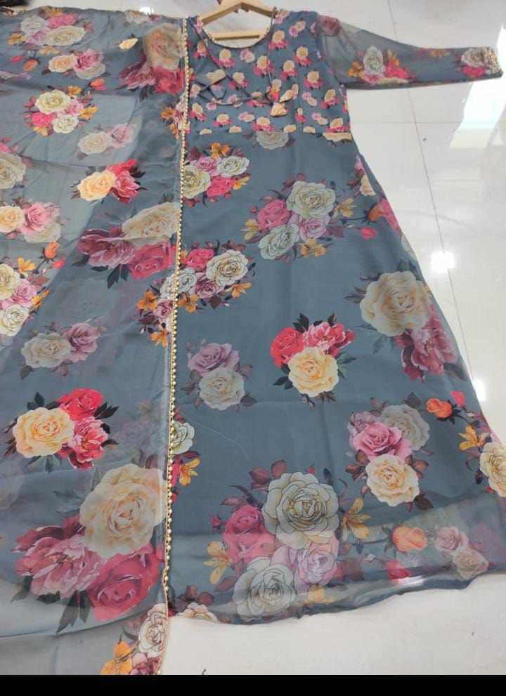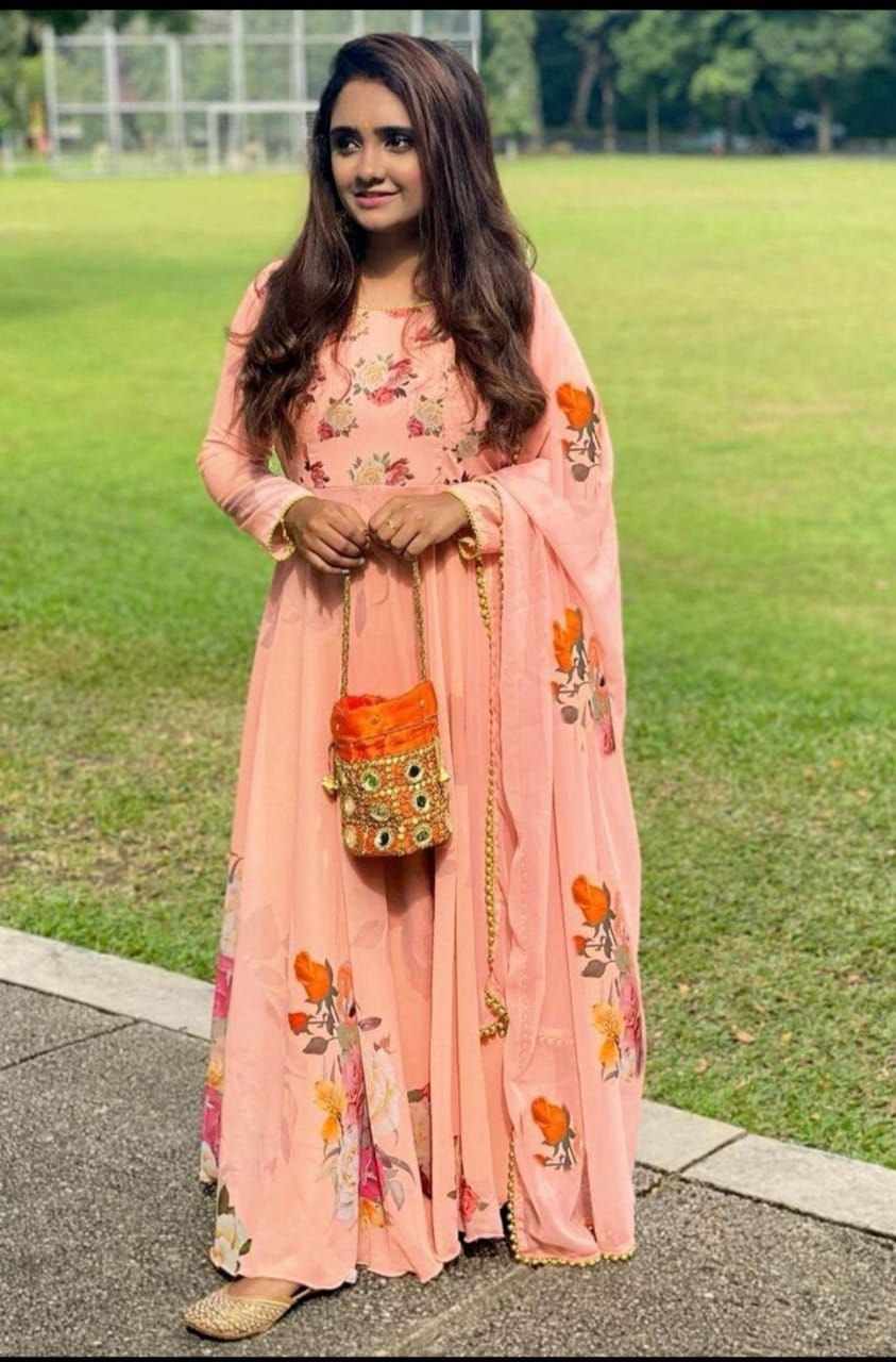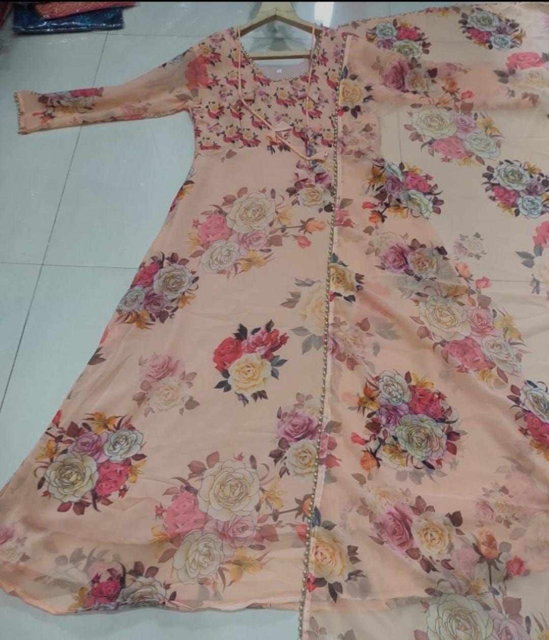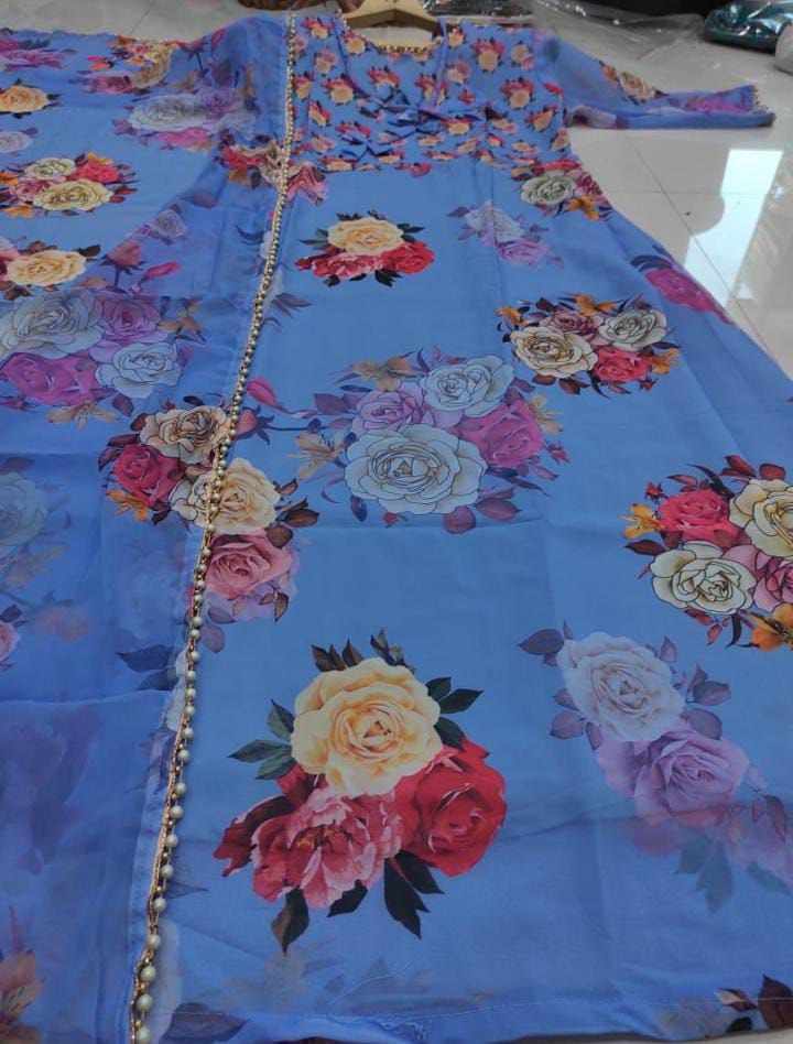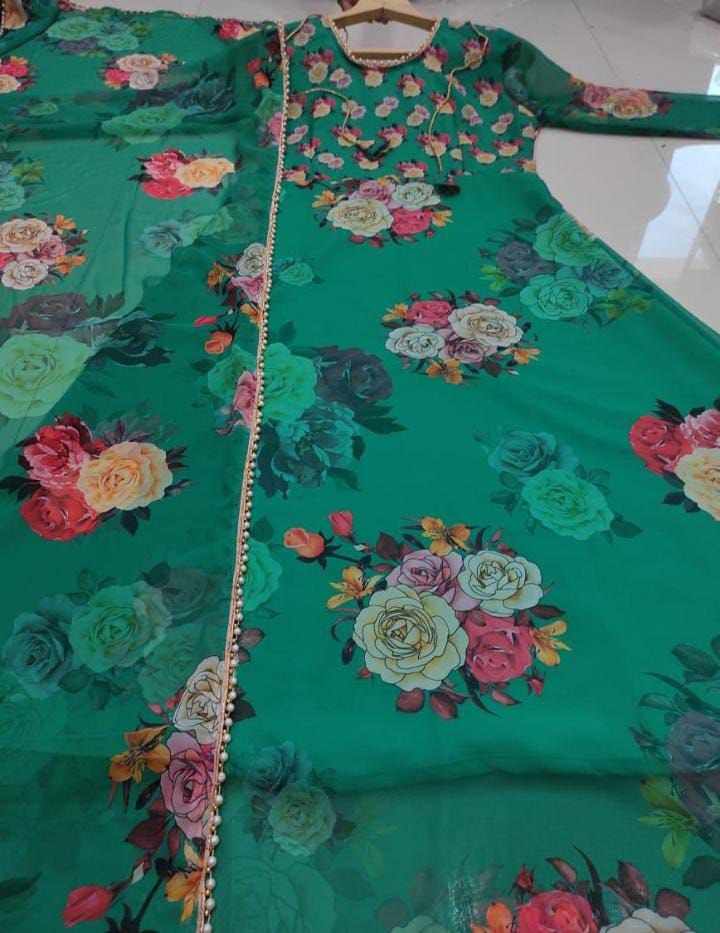 *FABRIC: GEORGEET WITH FLORAL DESIGN PRINT DESIGN WORK WITH PEARL BORDER*