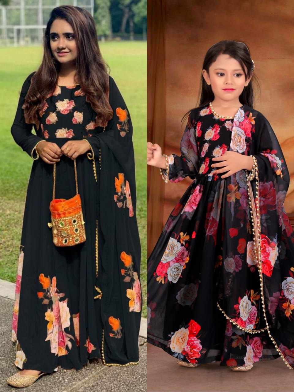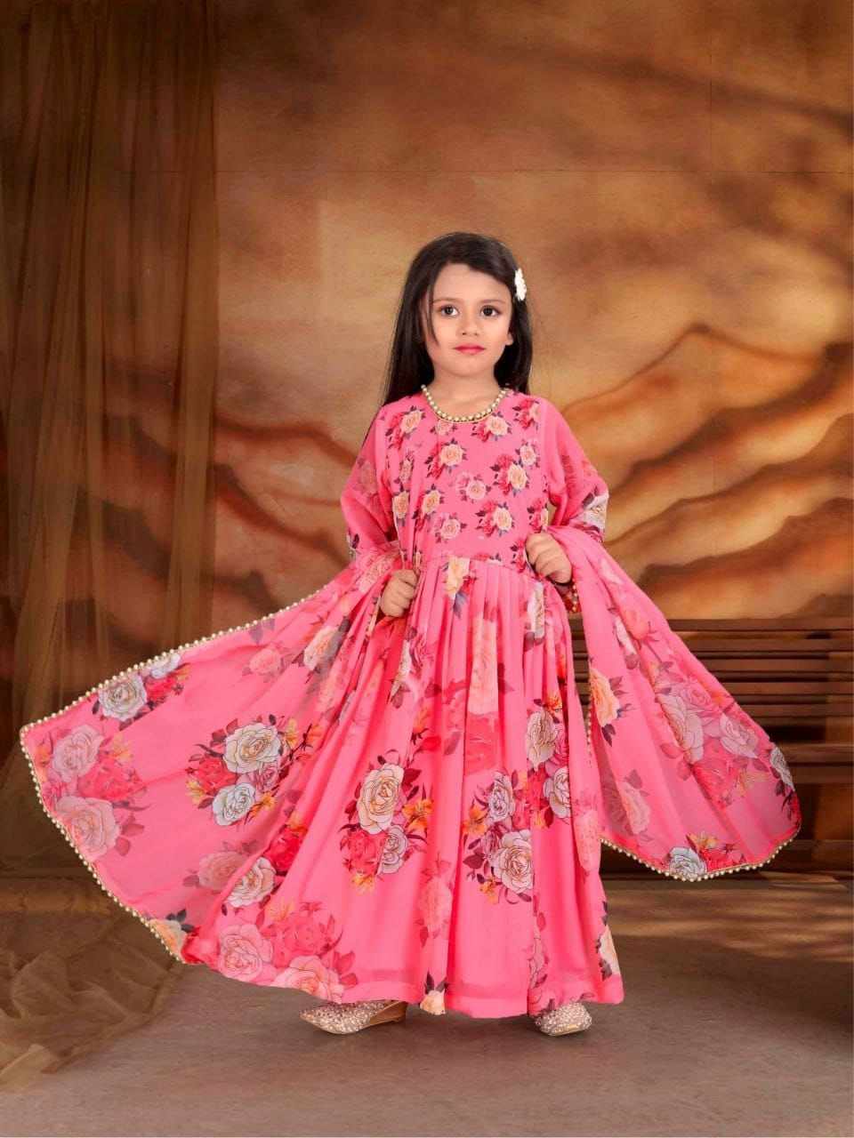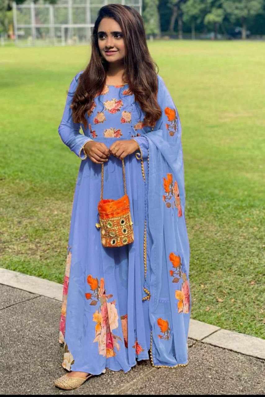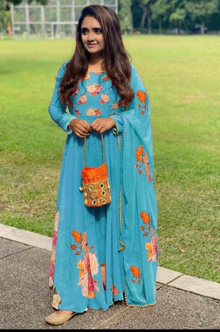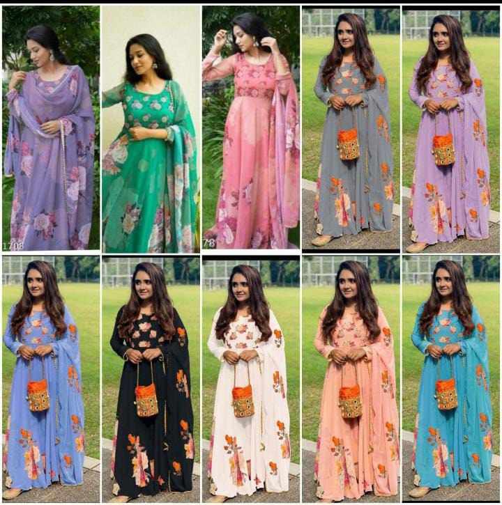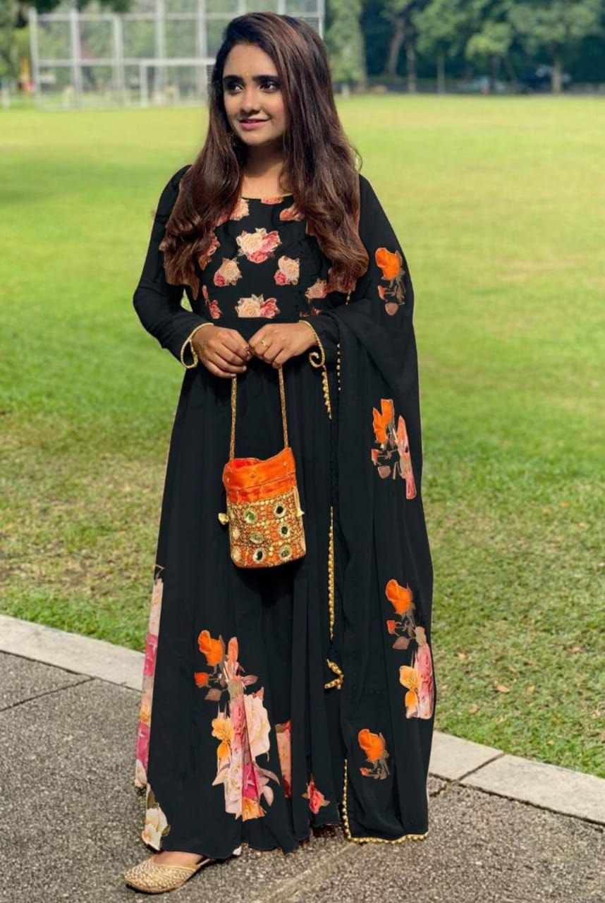 *FABRIC: GEORGEET WITH FLORAL DESIGN PRINT DESIGN WORK WITH PEARL BORDER*
