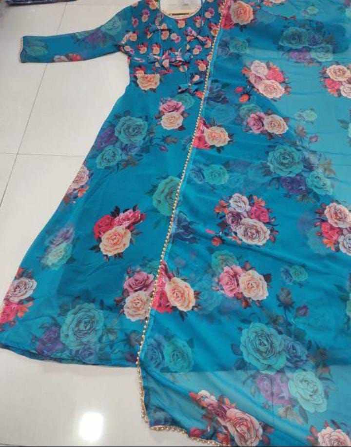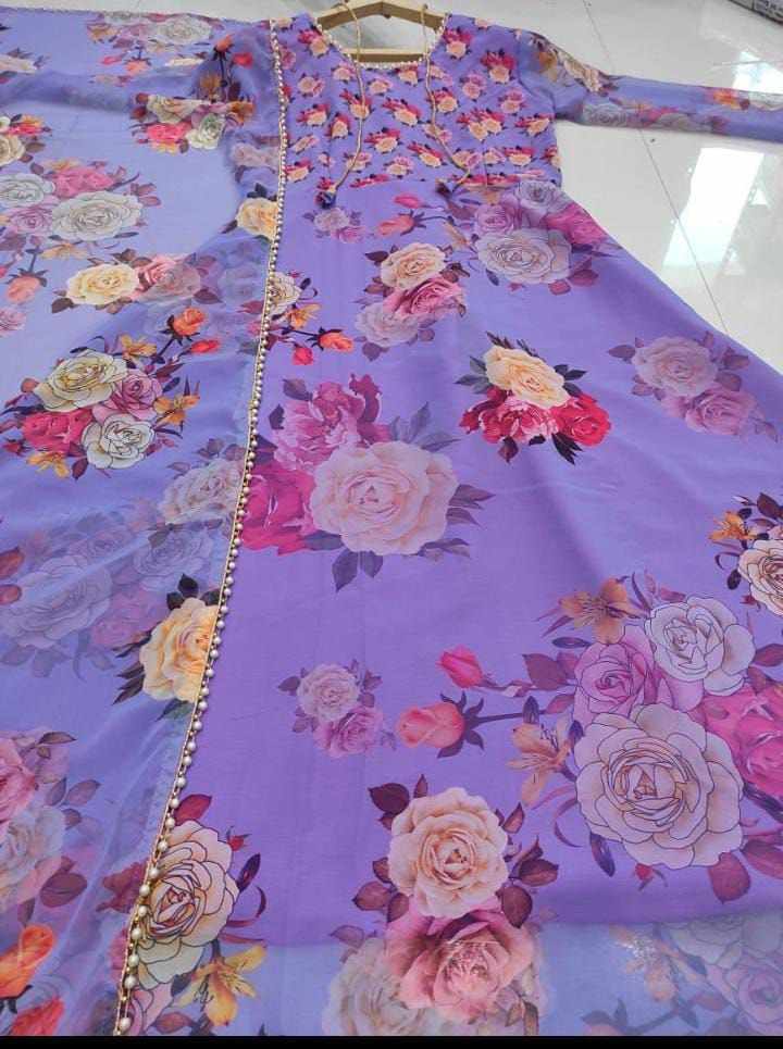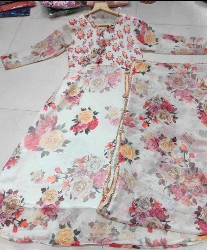 *DUPTTA:GEORGEET FLORAL DIGITAL PRINT DESIGN WITH PEARLS LACE BORDER *