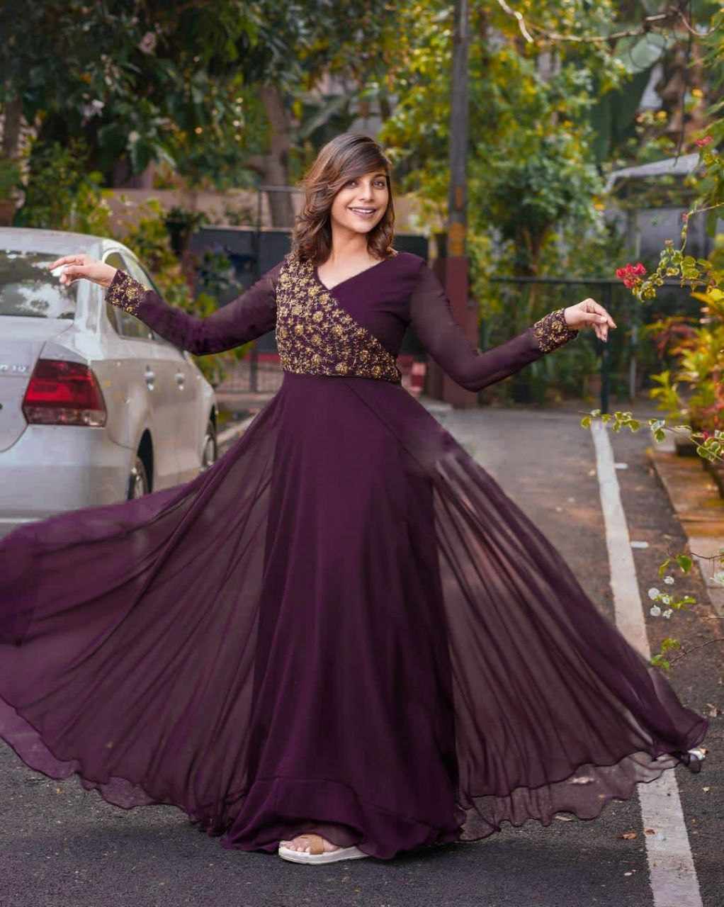 *FABRICS & WORK:-* Faux Blooming With Embroidered sequins Work