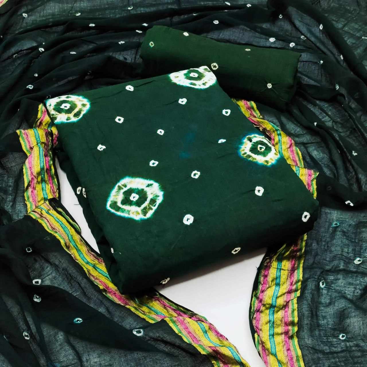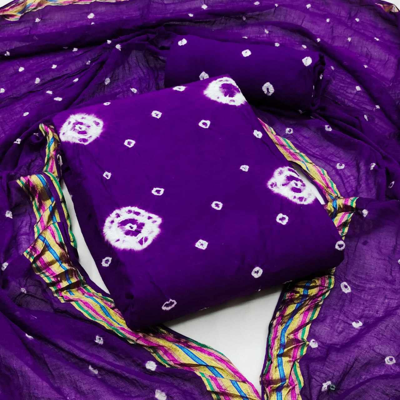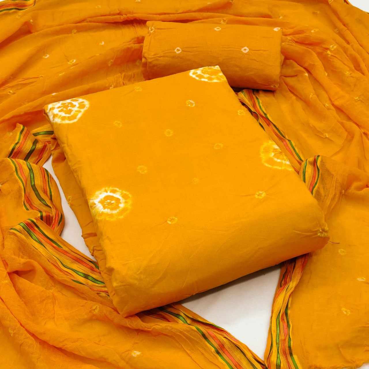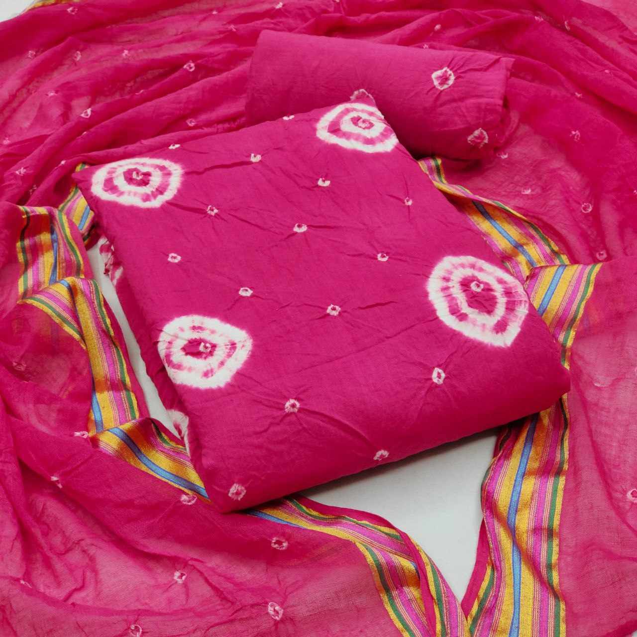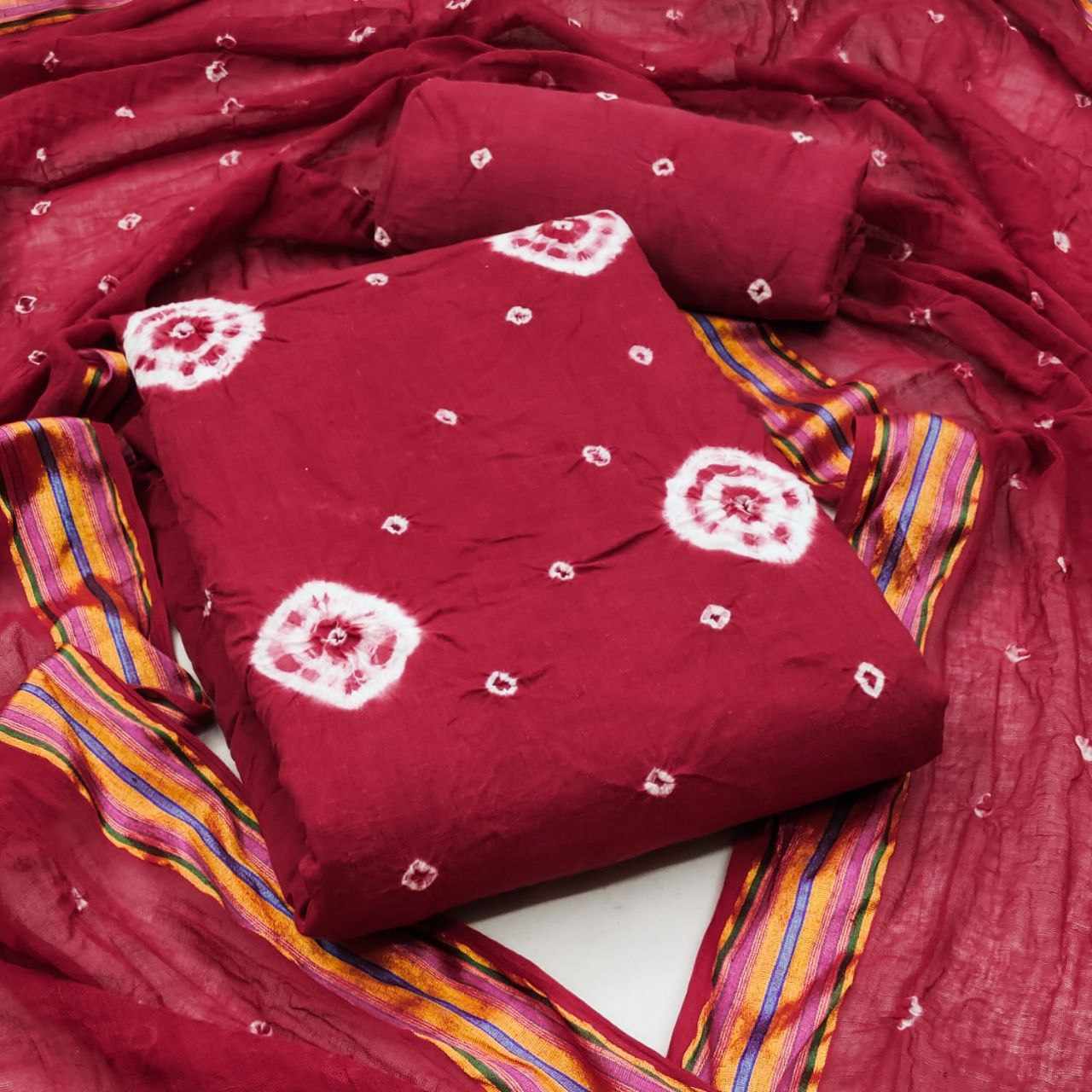 *Pure Cotton Hand Bandhej Dress Material with Bottom & Dupatta*