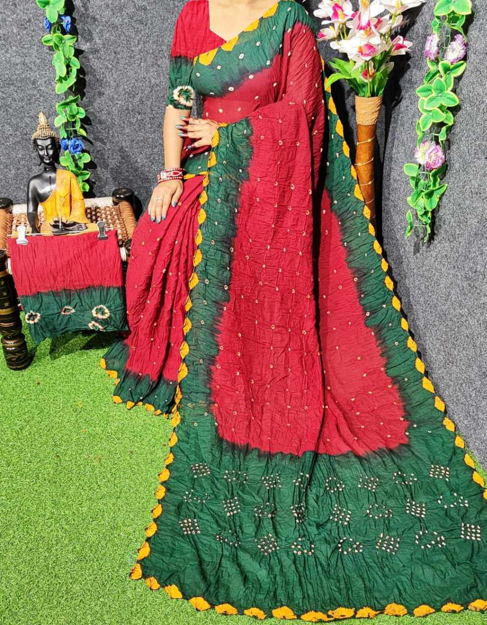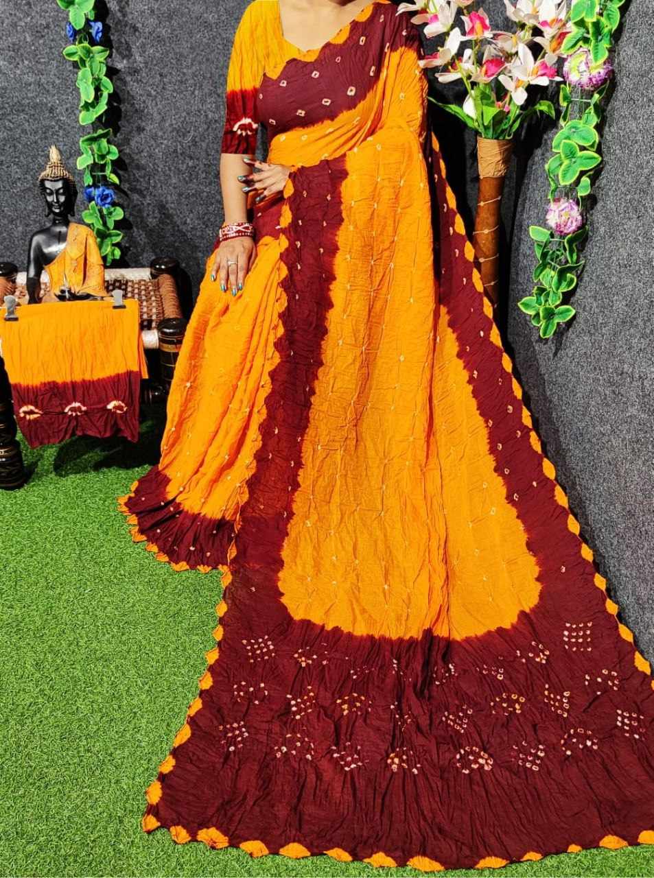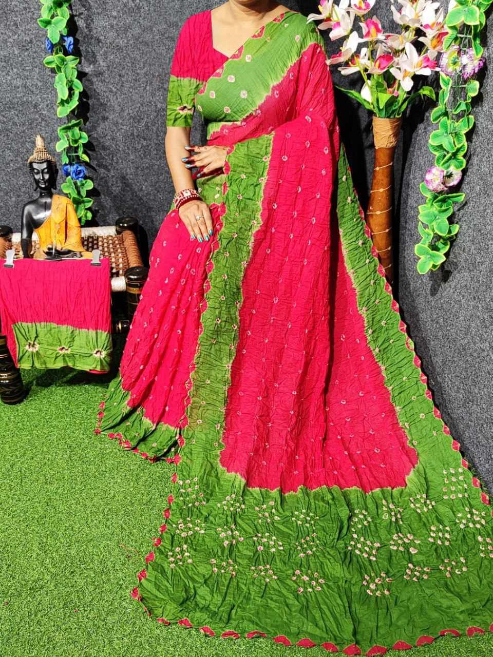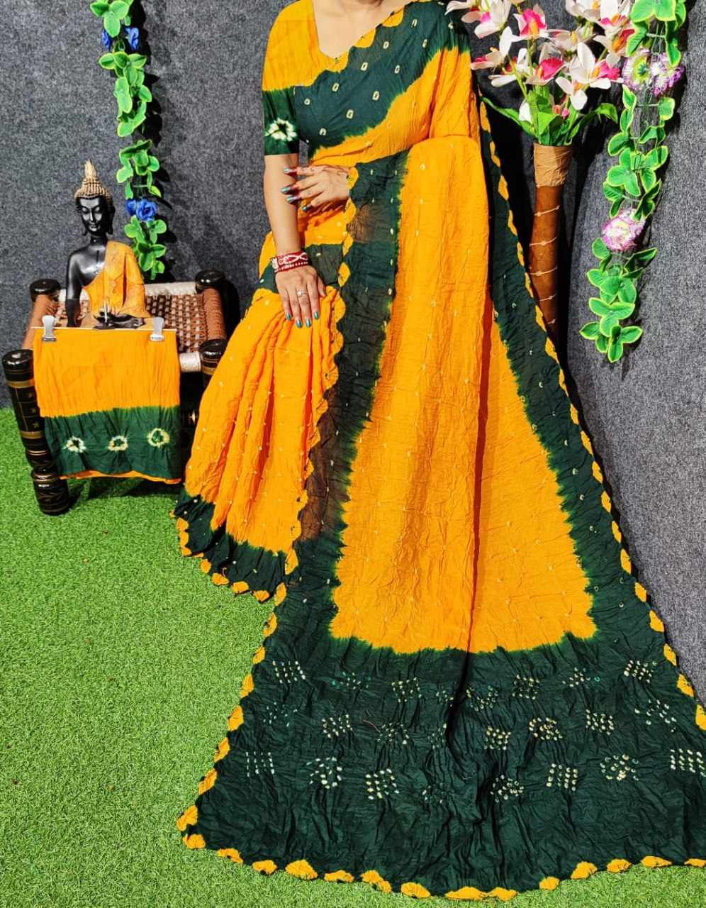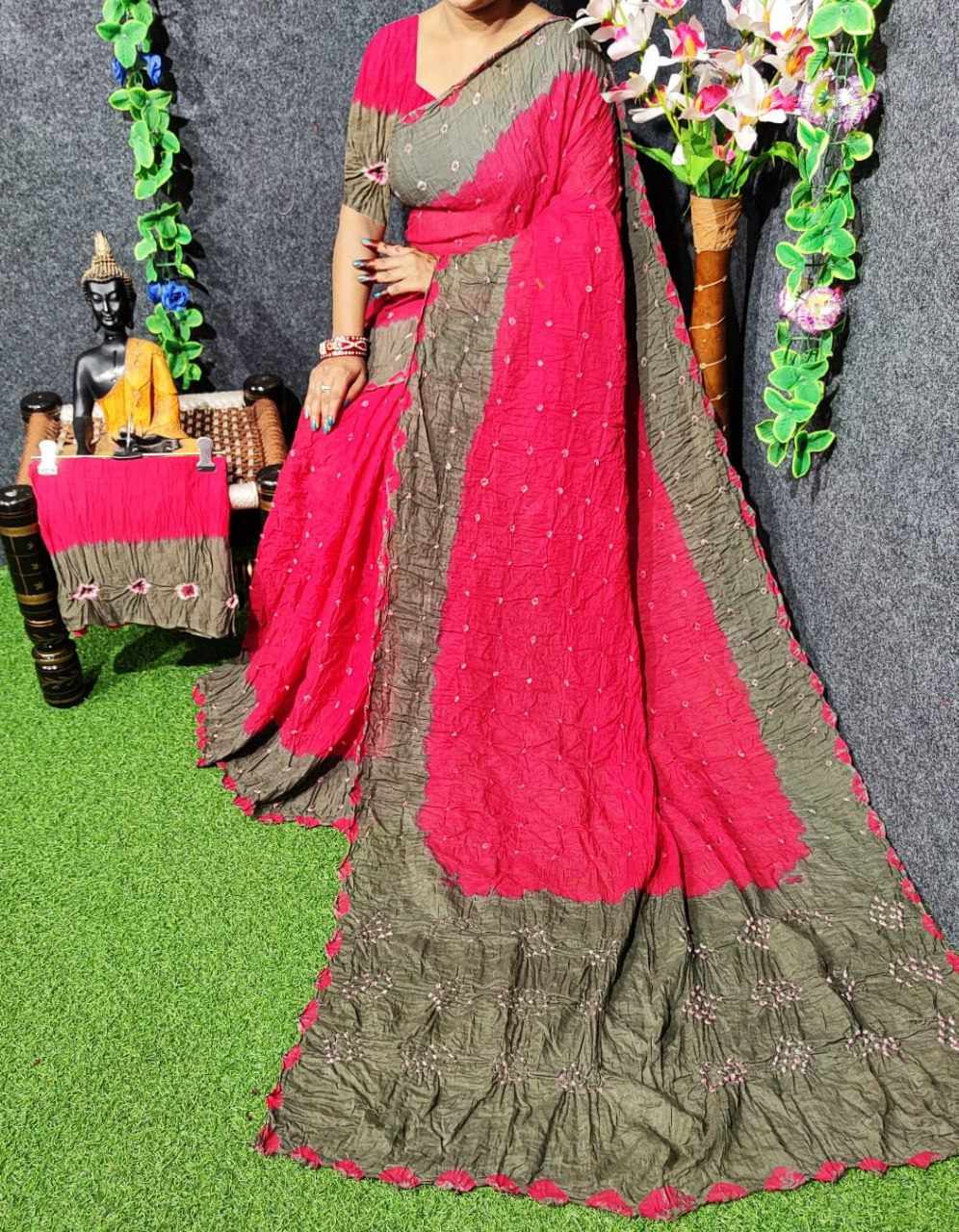 *Pure Cotton Hand Bandhej Saree with hand bandhej border*