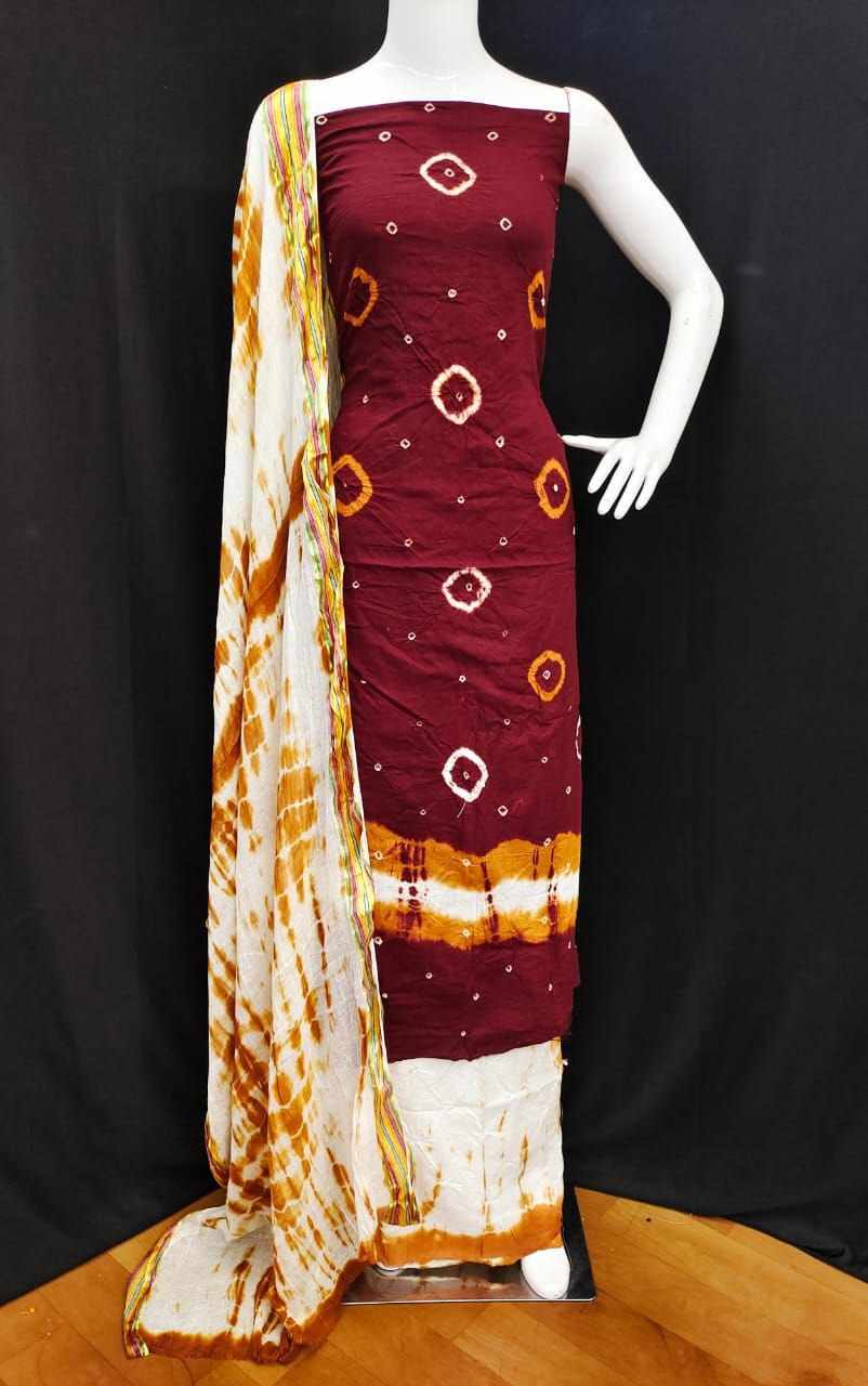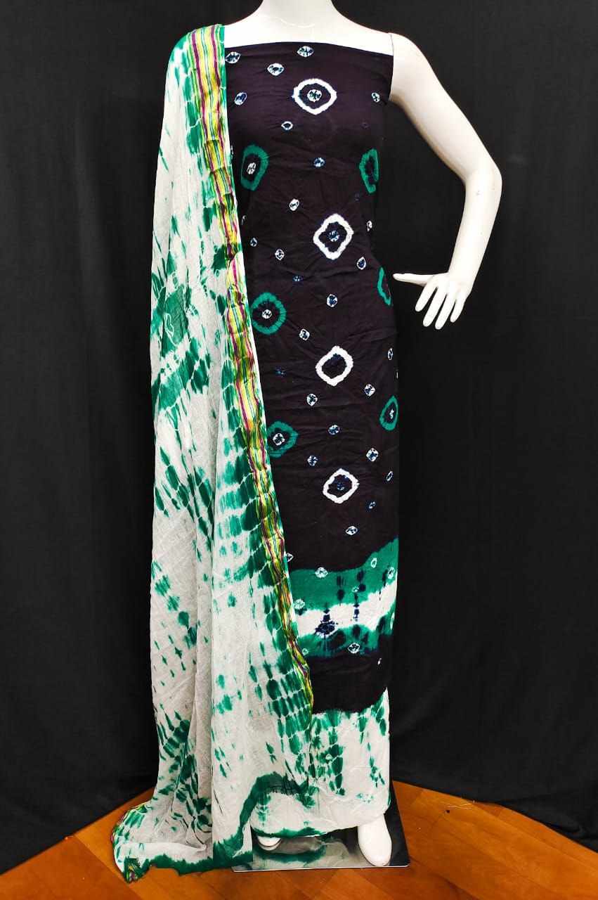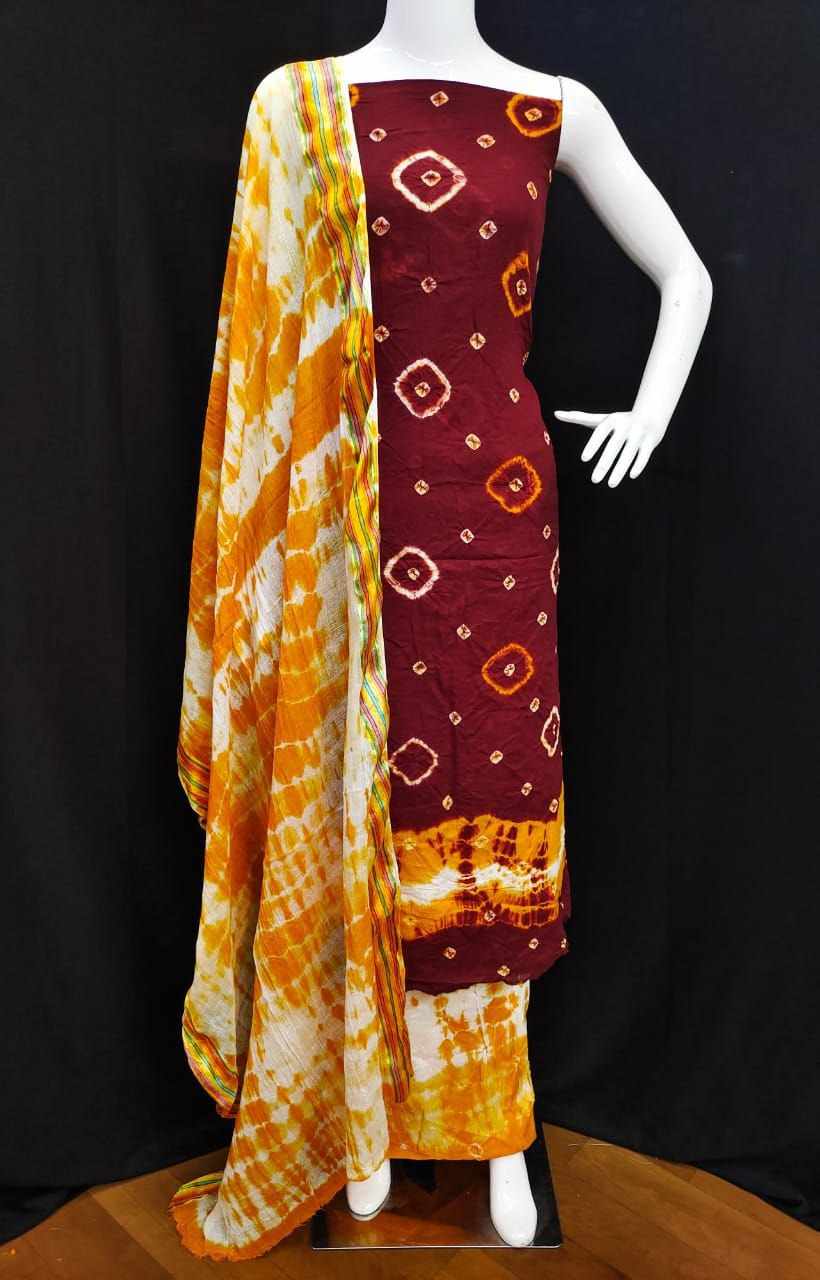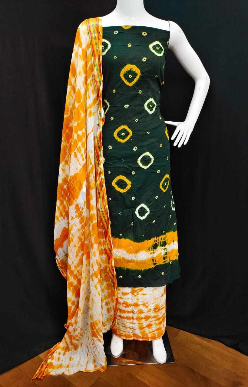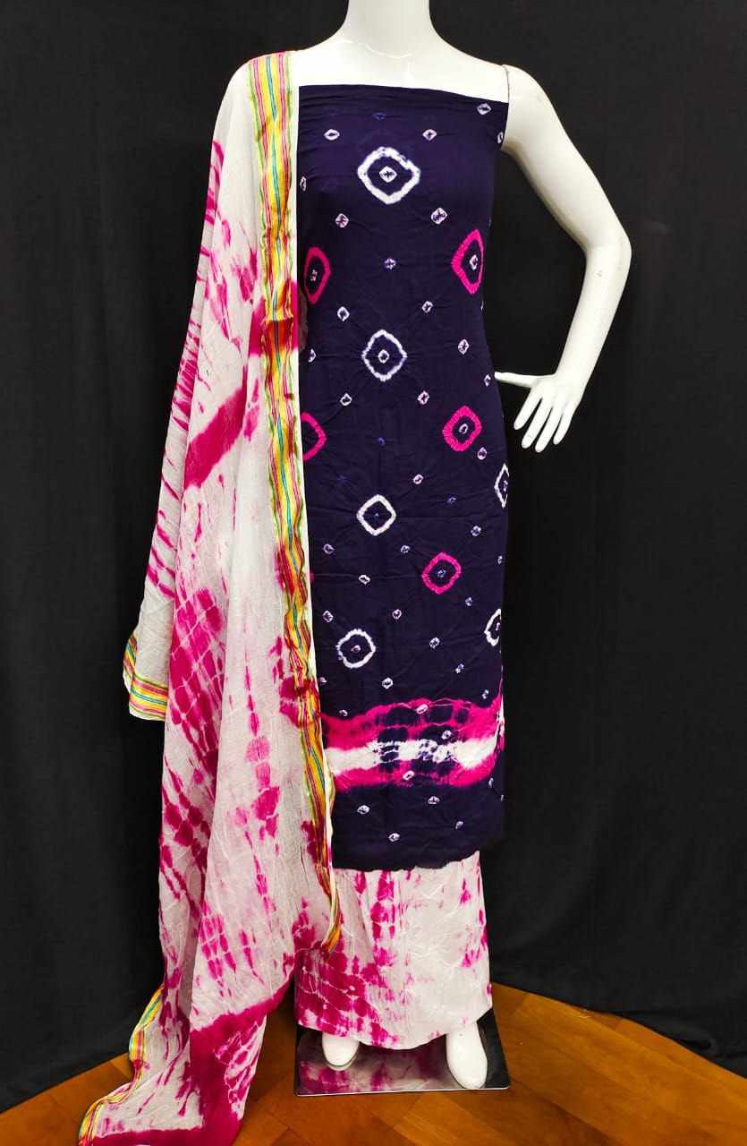*Pure Cotton With Hand Bandhej Dress Material with Bottom & Dupatta*