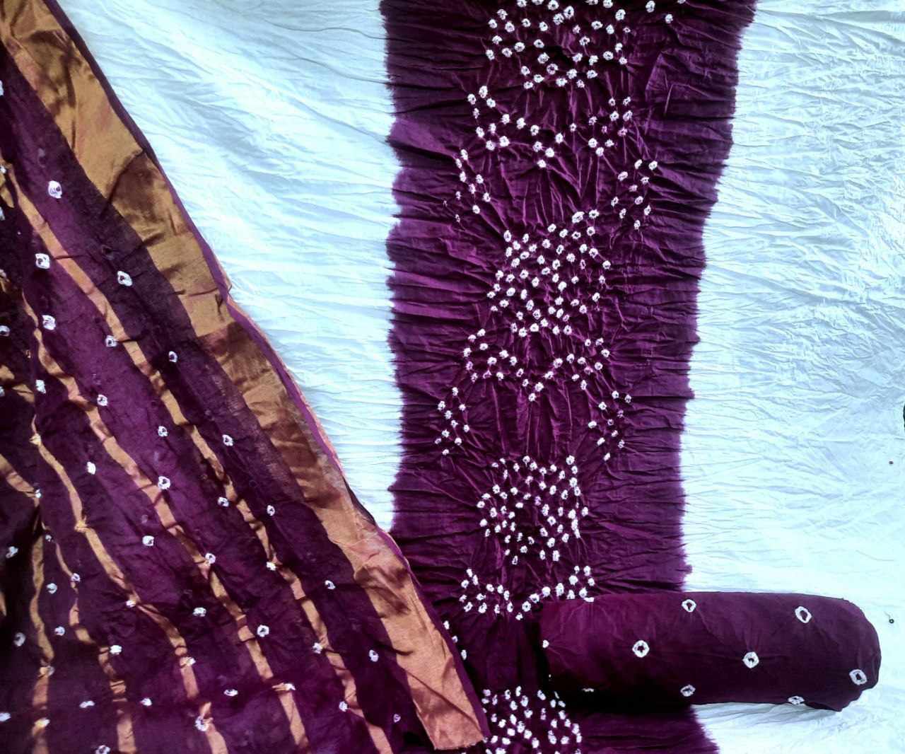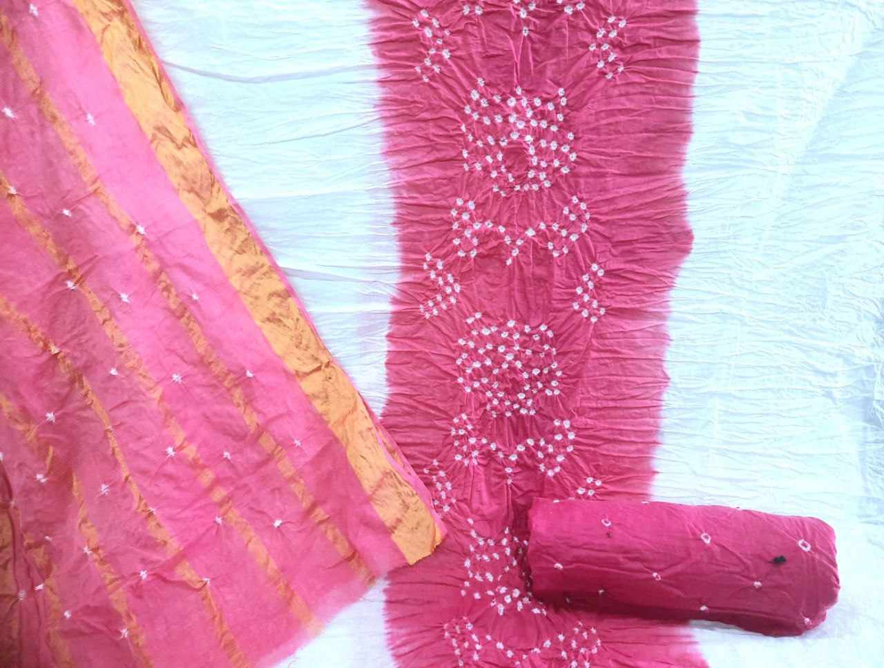 *Top Fabric - Pure Cotton HAND BANDHEJ With White concept*(UNSTITCHED) *2.25 mtrs*