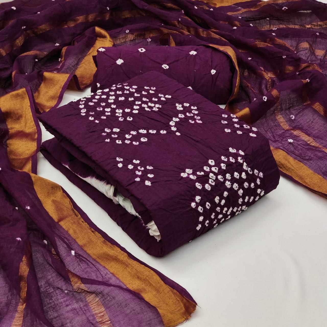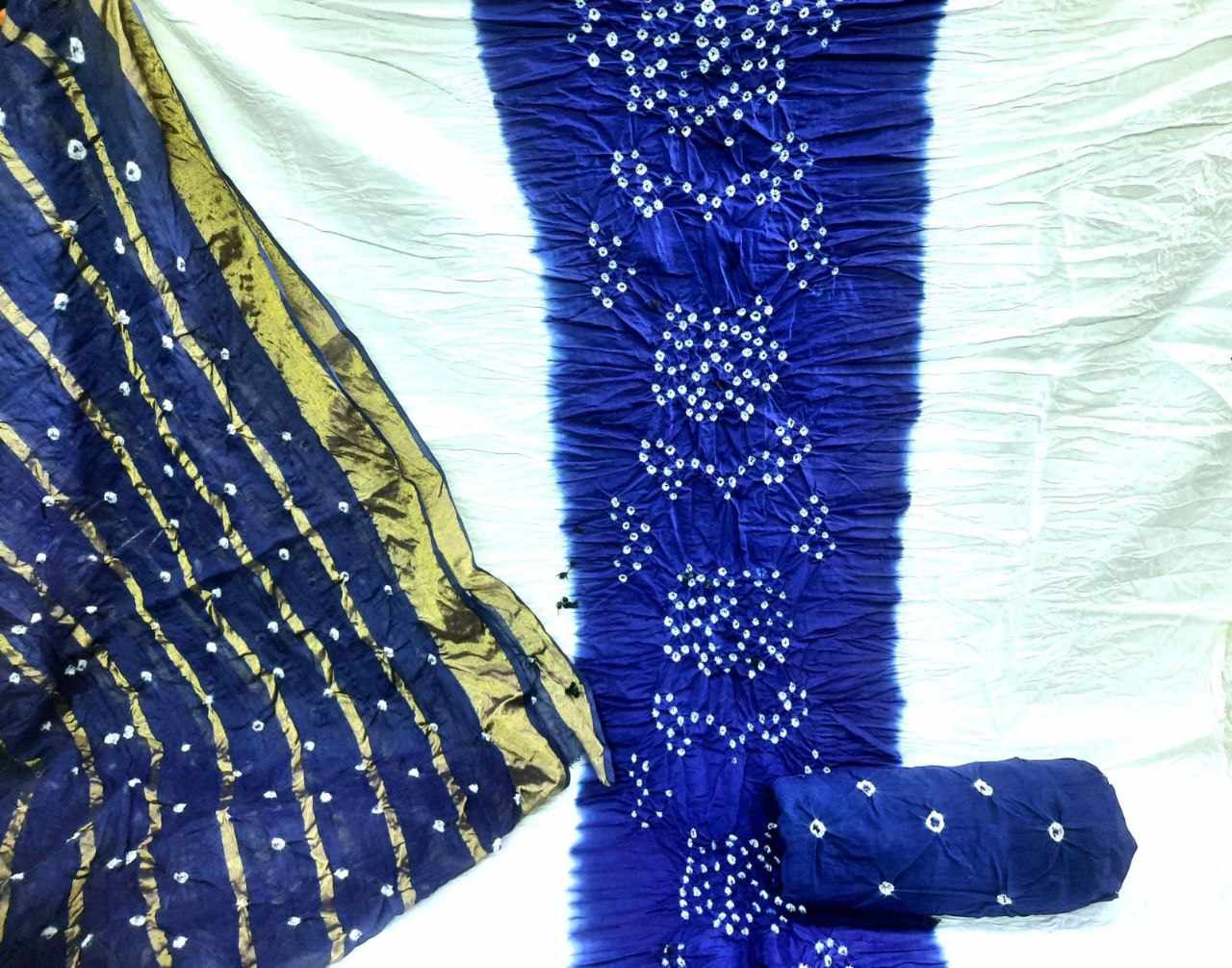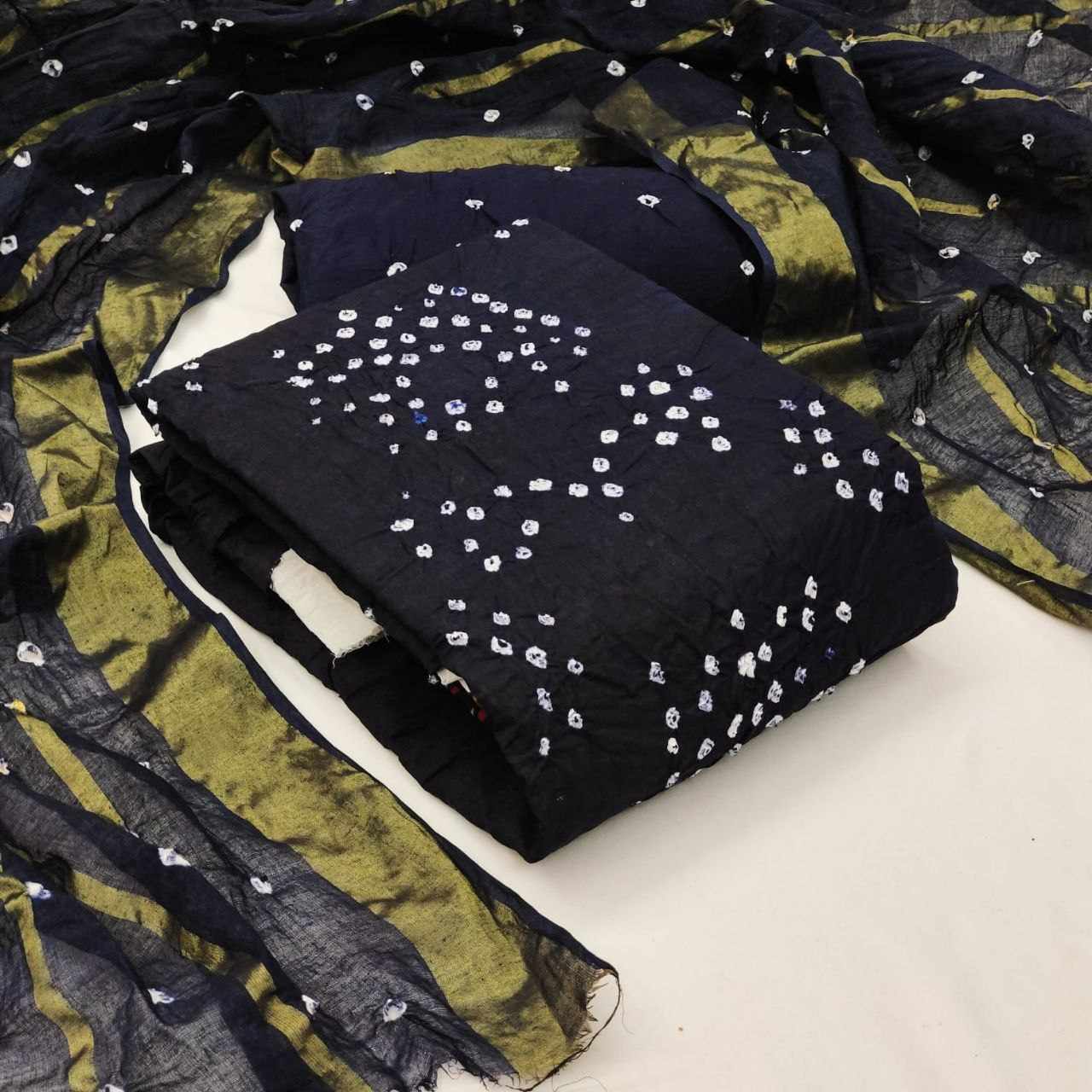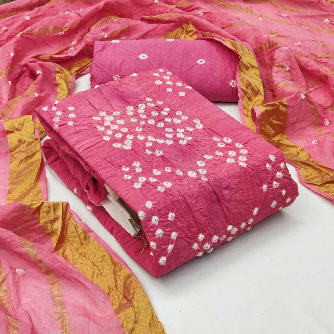 Pure Cotton Hand Bandhej Dress Material with white concept with Bottom & Dupatta*