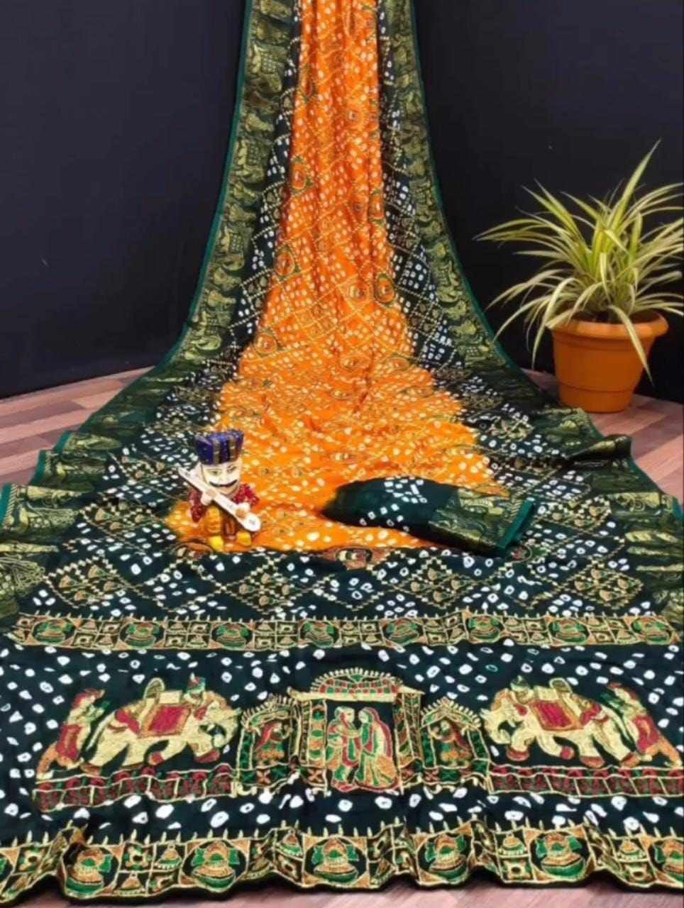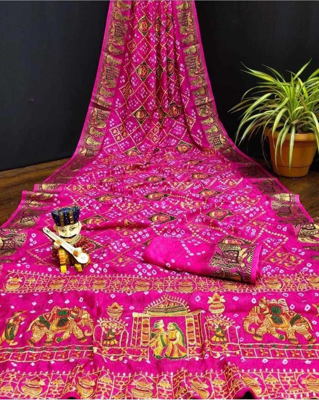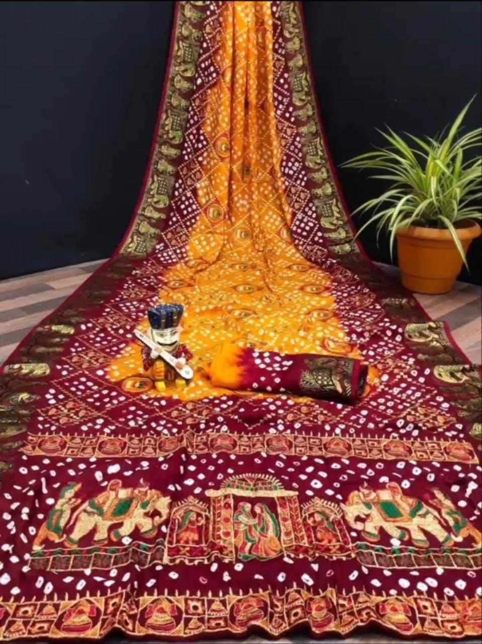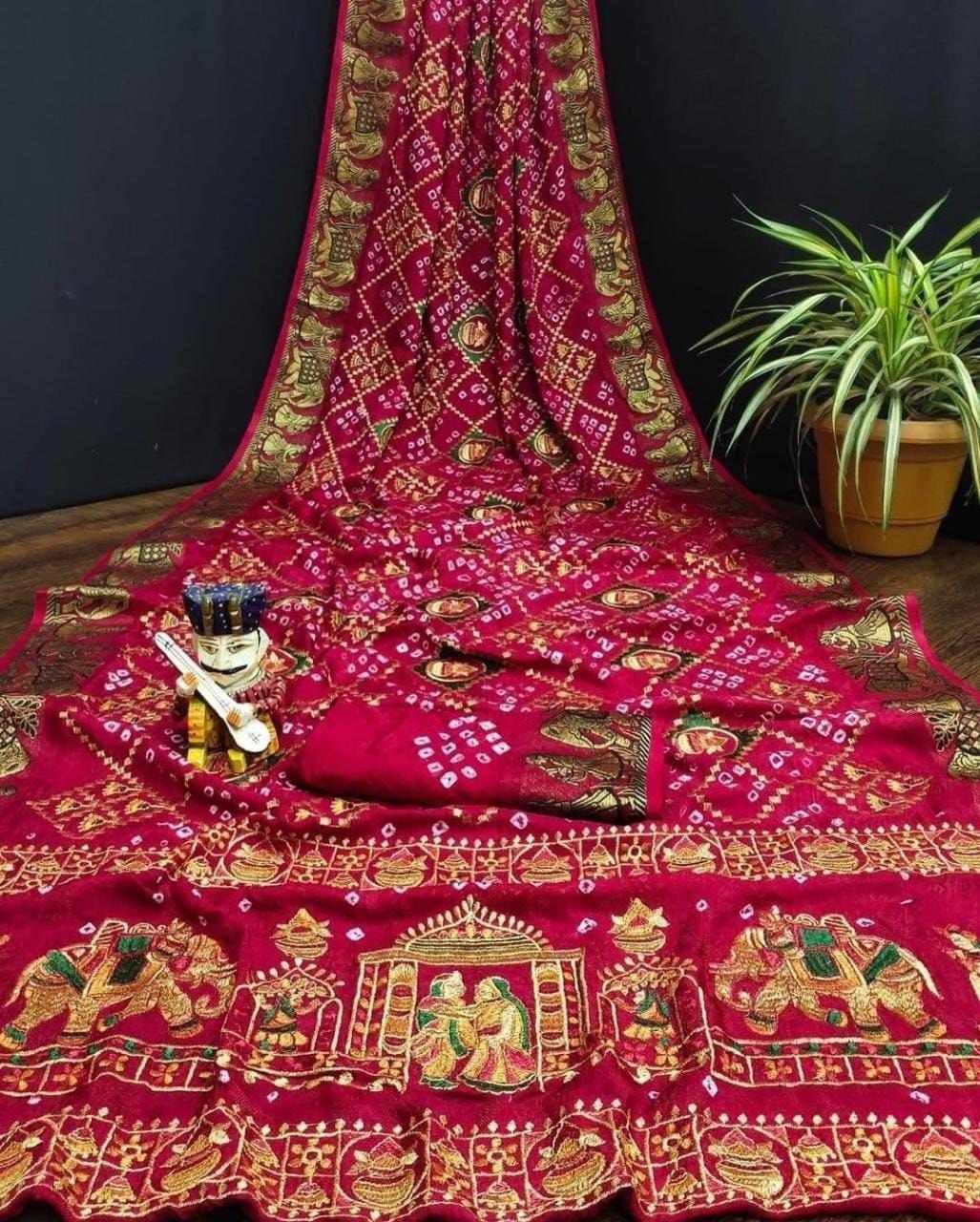 *New Heavy Collection of Beautiful Embroidery Work with Bandhej Saree*
