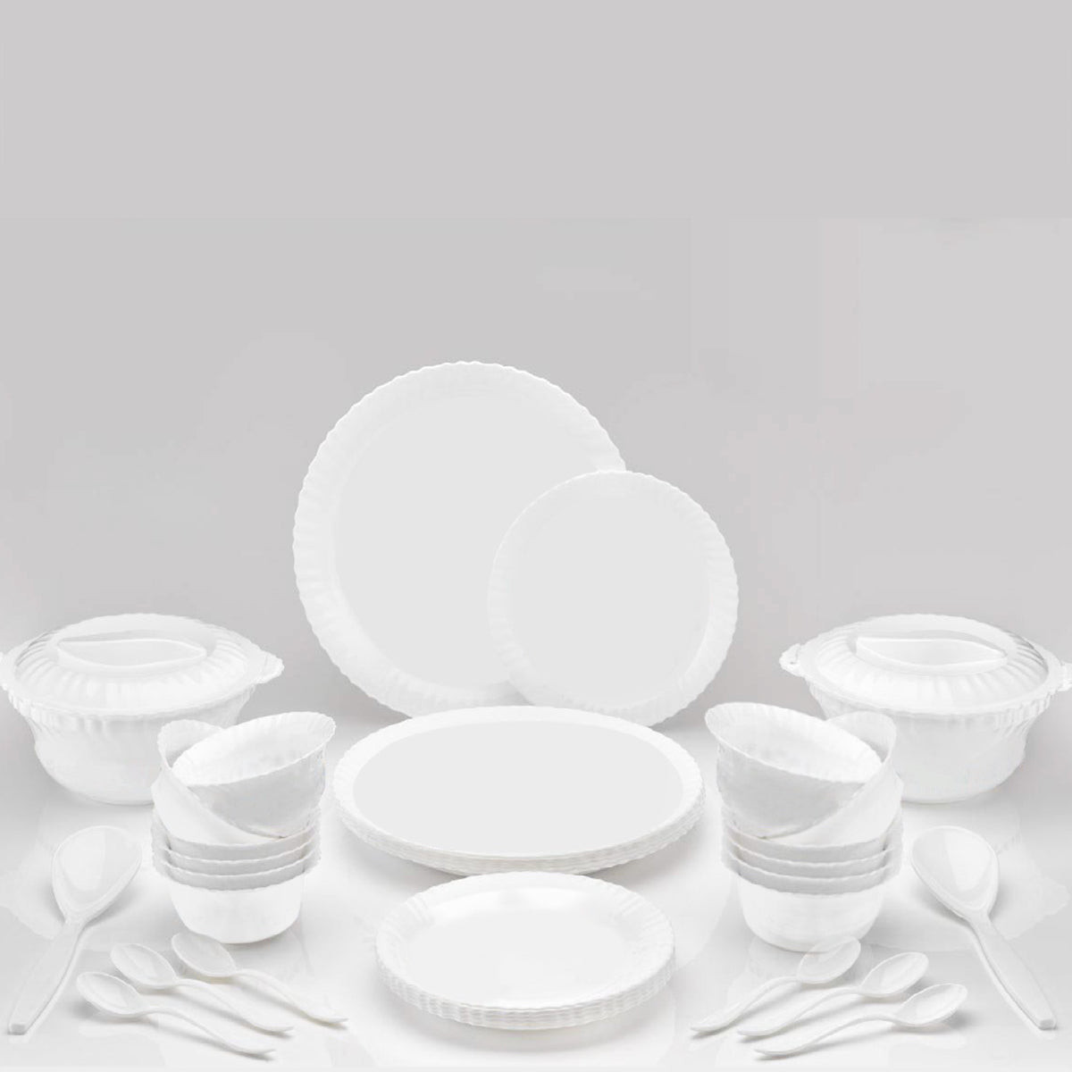 Unbreakable Light Weight Plastic Dinner Set of 36 Pieces (White)