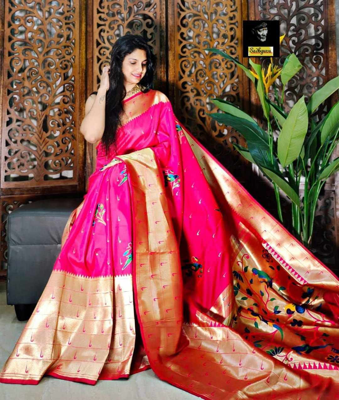 ORIGINAL PURE ZARI PAITHANI PARROT DESIGN AND PARROT MODIFIED AND BIG BELT BORDER AND HEAVY MINA ZARI WEAVING PALLU