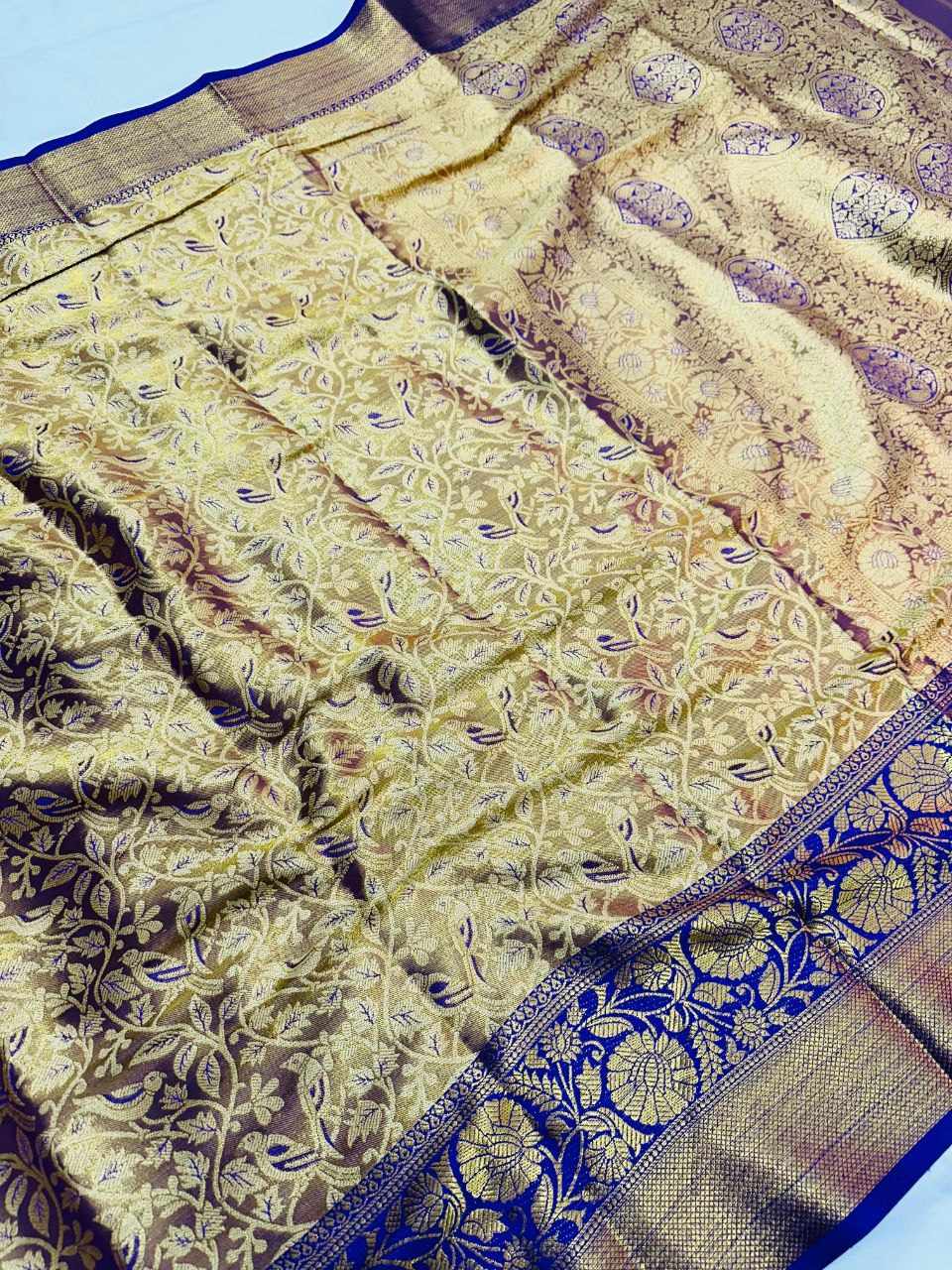 Pure Kanjivaram Silk With Mina Weaving & Beautiful Soft Naylon Zari Border & Contrast Naylon Gold Zari Rich Weaving Pallu