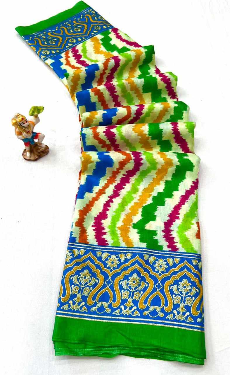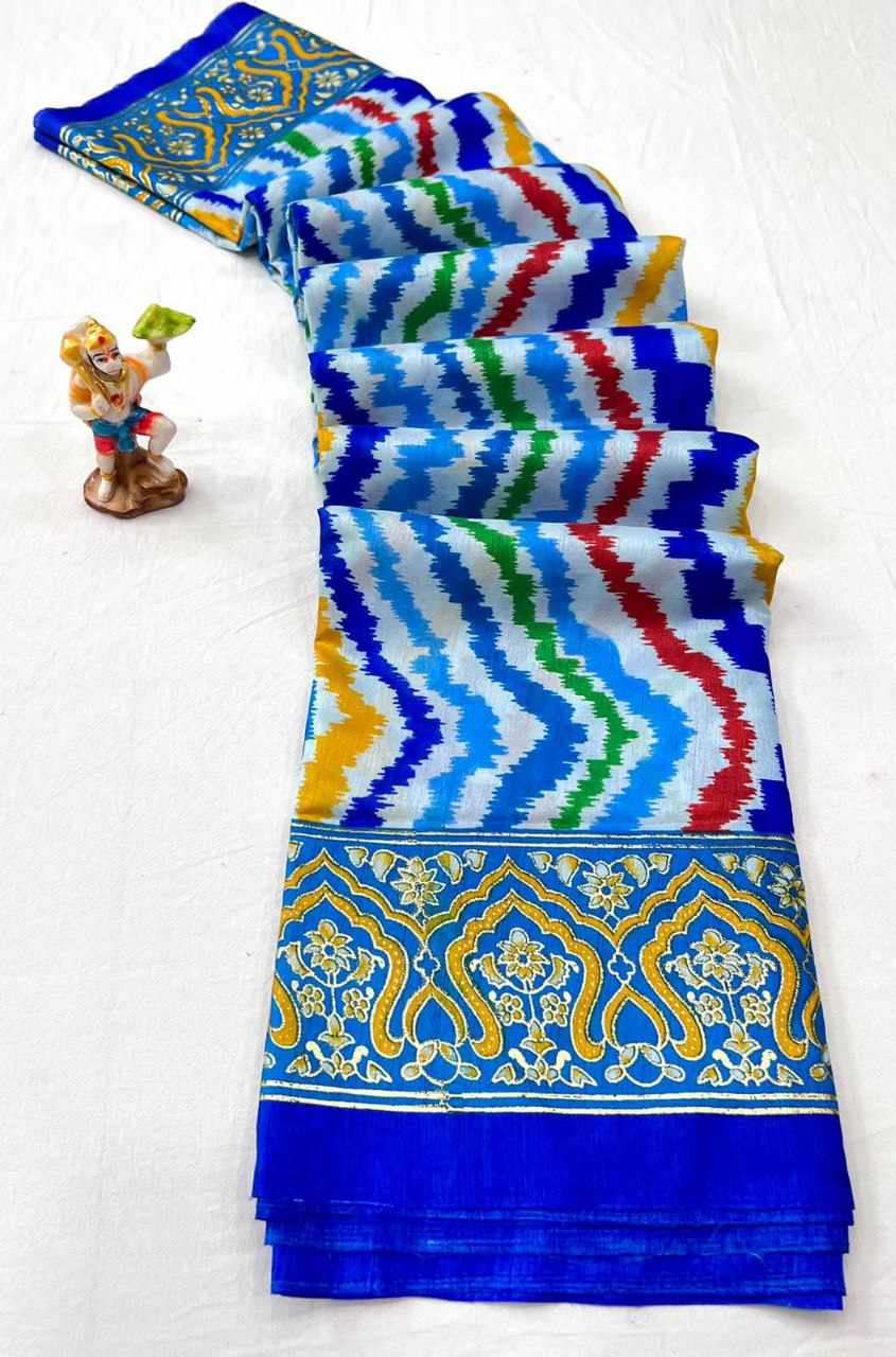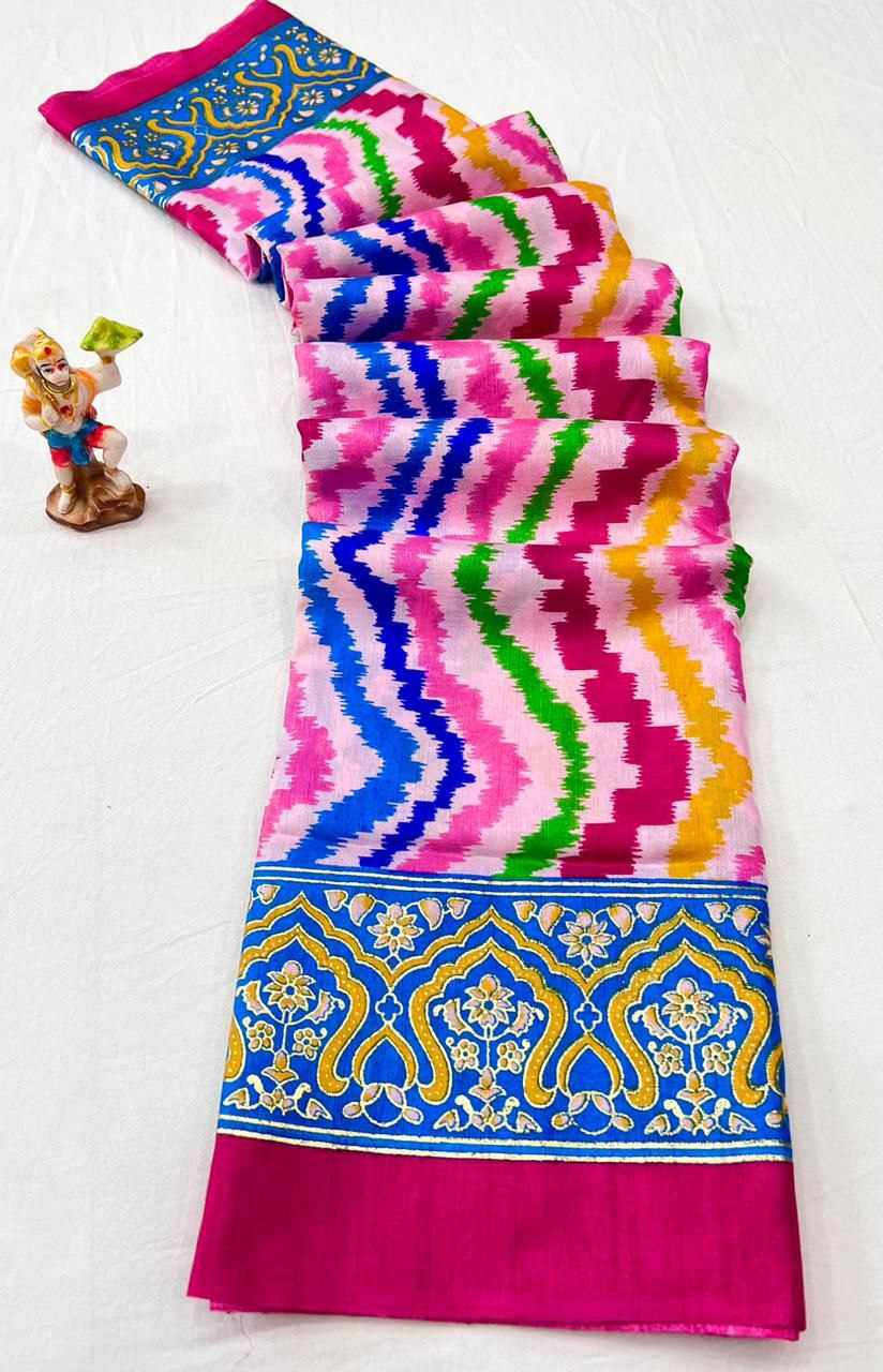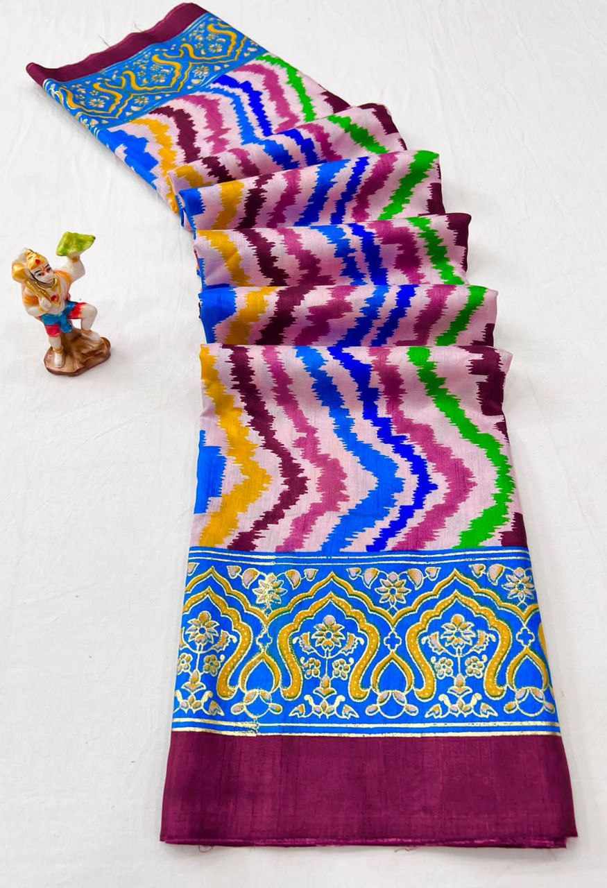 Fabric details - dola silk patola printed saree with beautiful contrast foil printed border & pallu comes with contrast foil printed blouse