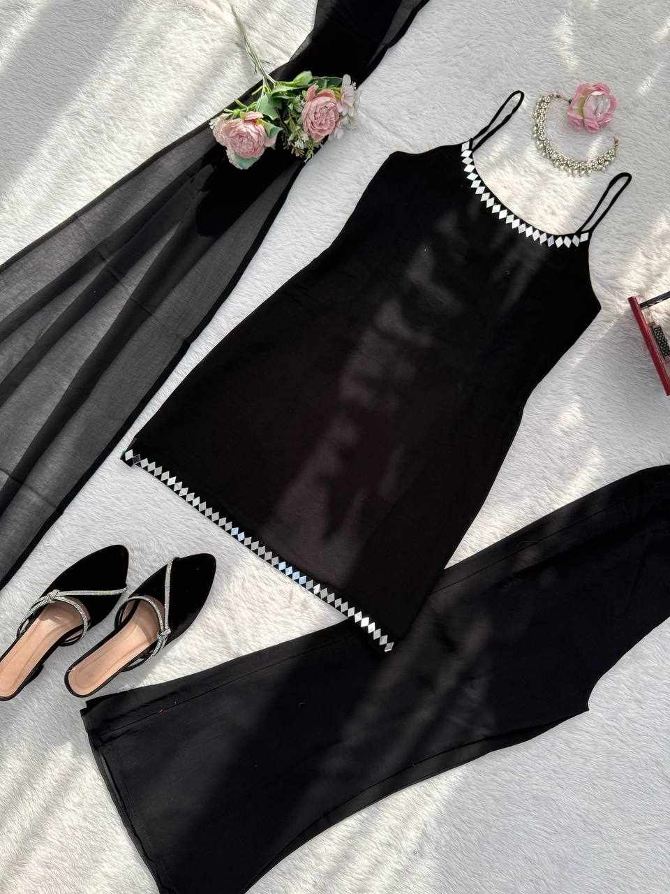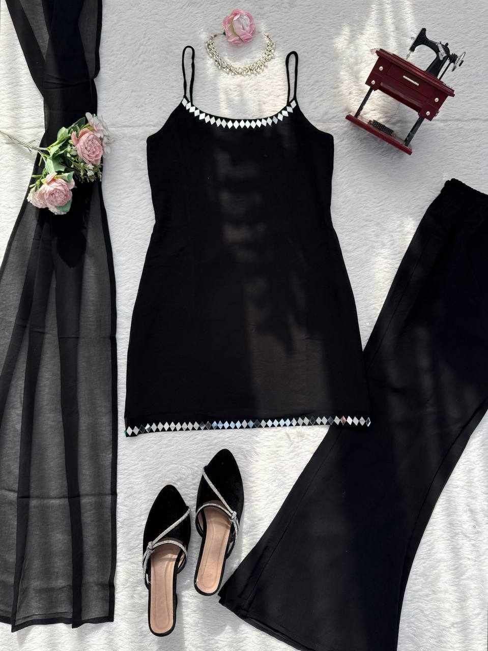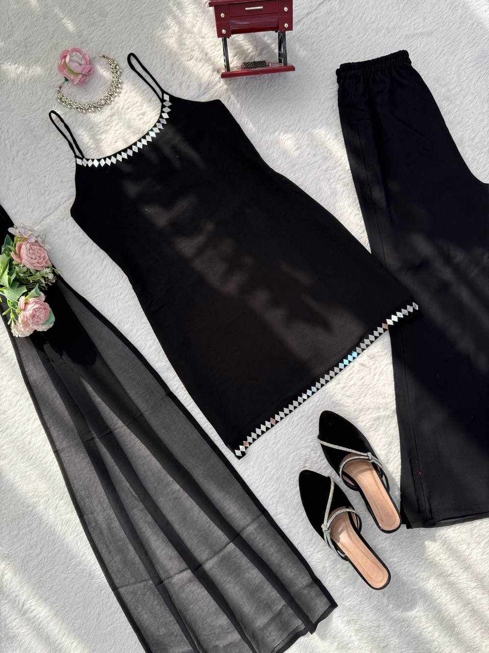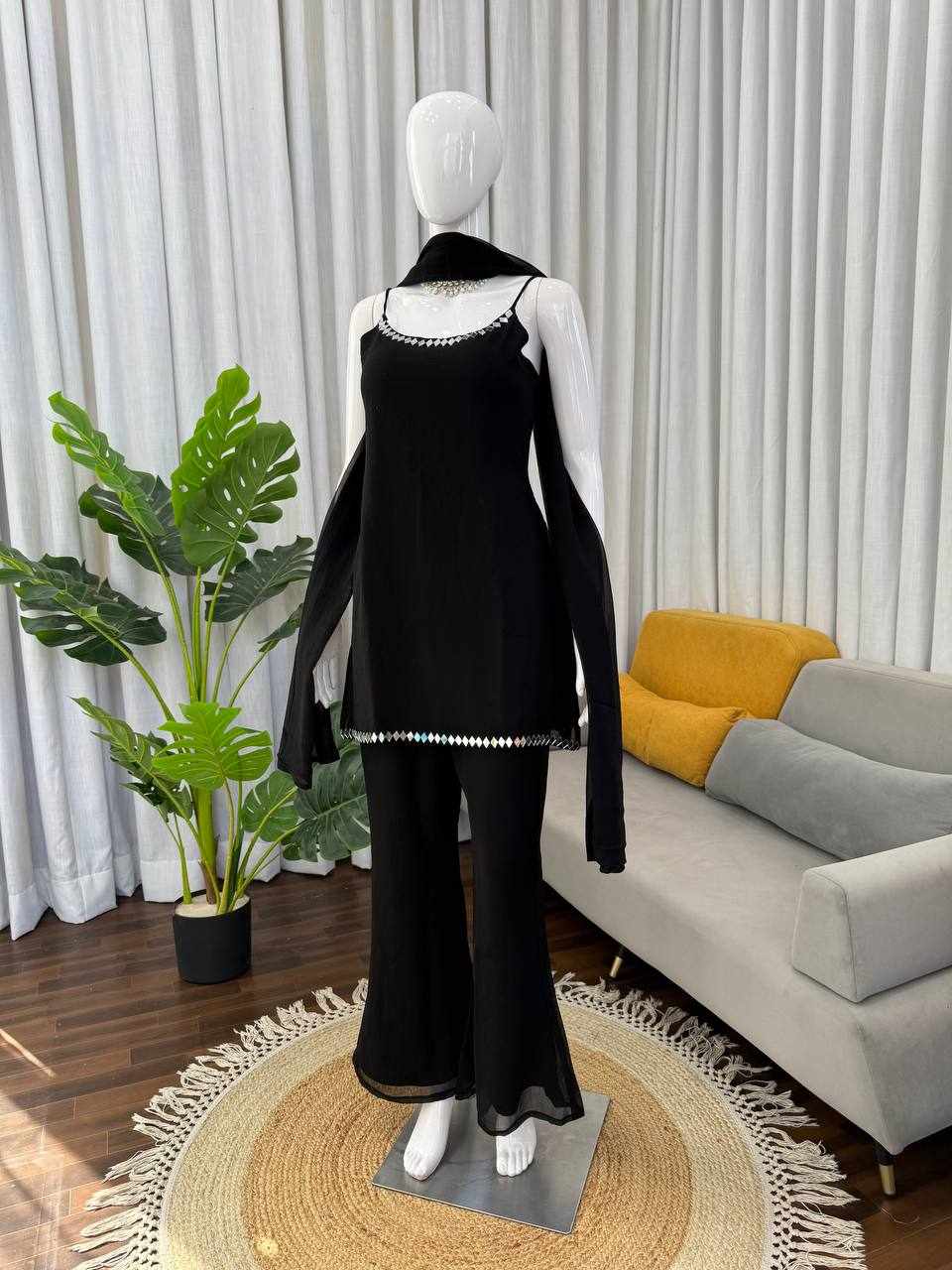 Stylish Mirror Work Top-Pant with Dupatta Set