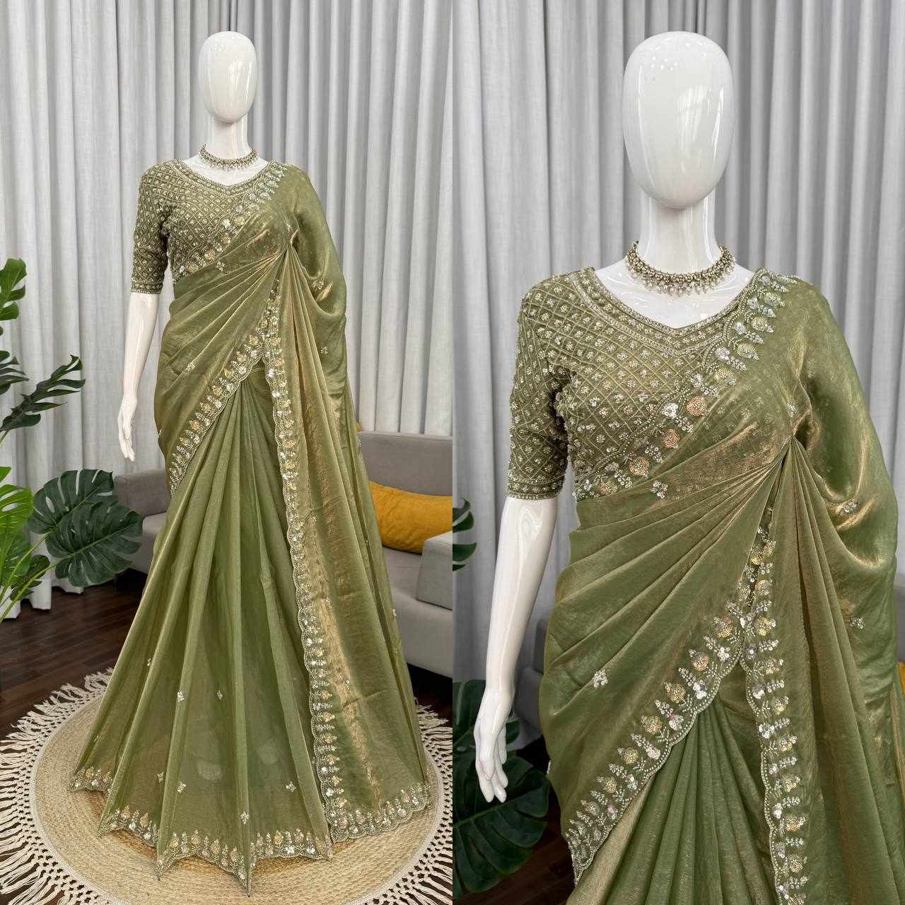 | Name : | KD 619 New Festive Wear Designer Mehndi Colour Saree |