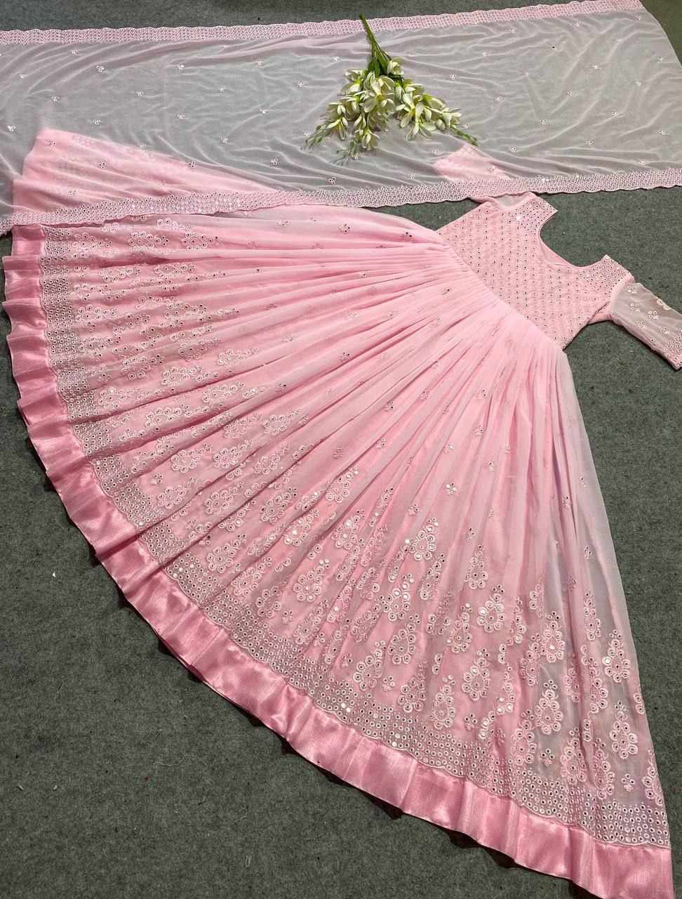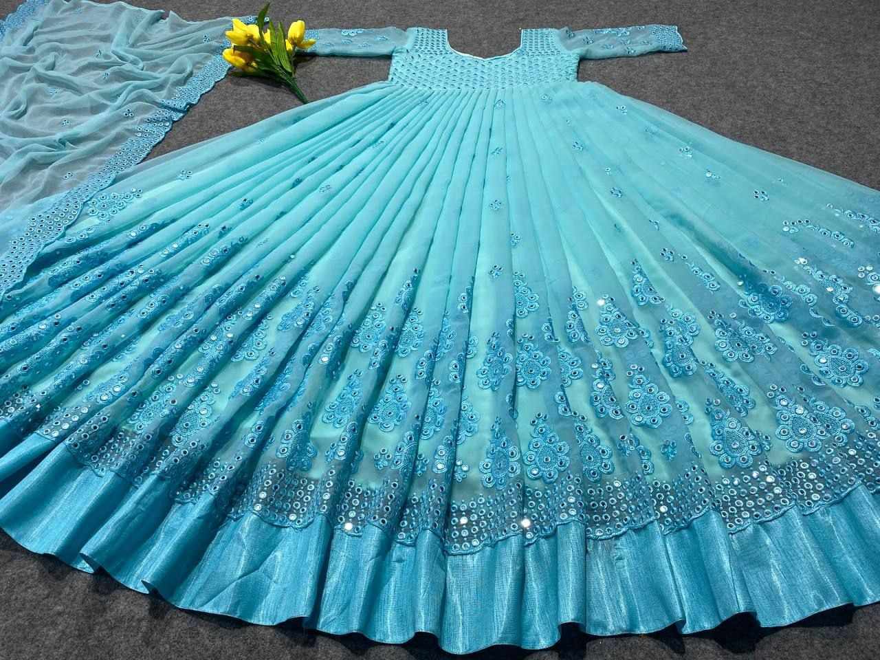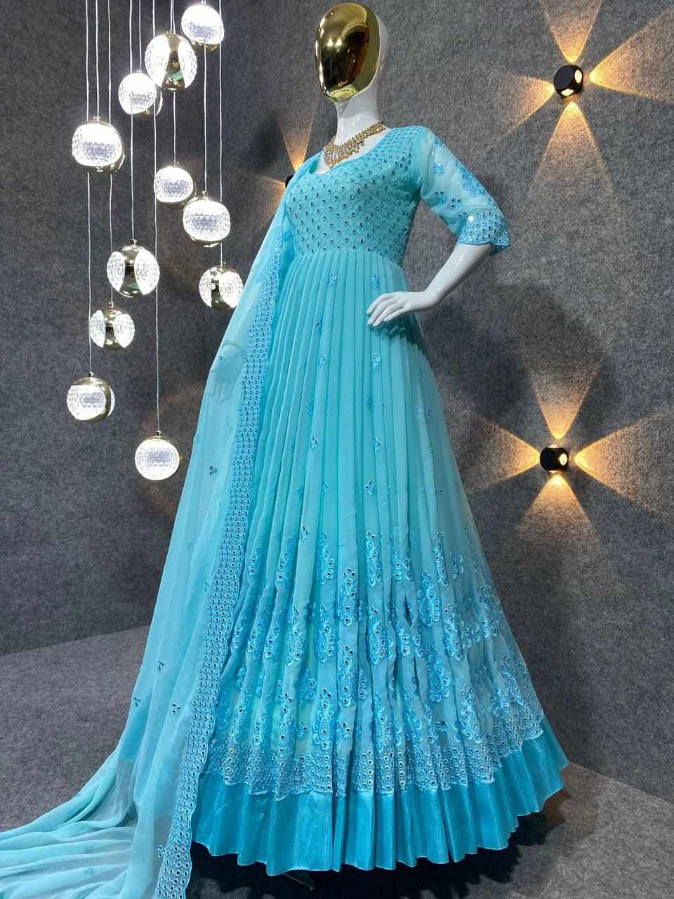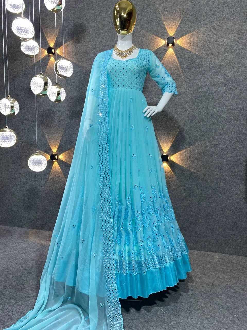 *GOWN FABRIC* :*_FOX GEORGETTE WITH EMBROIDERY 9MM SEQUENCE WORK WITH FULL SLEEVES_*
