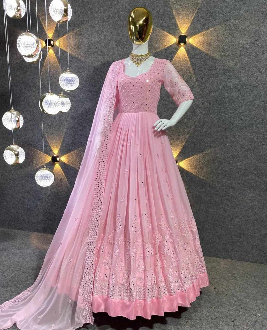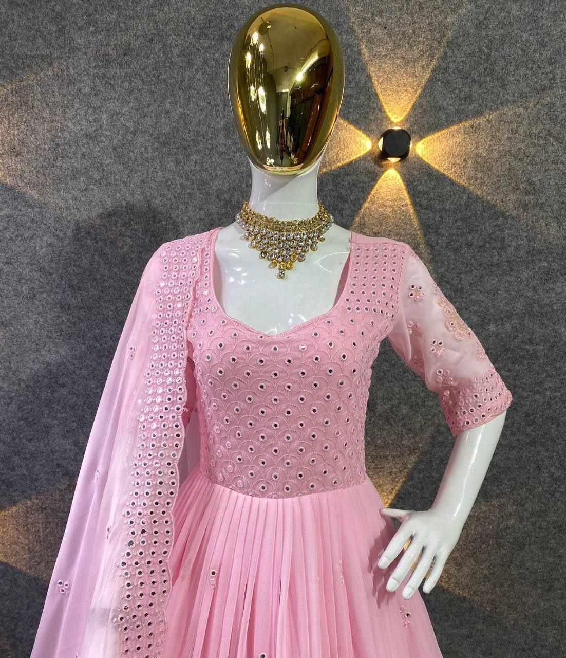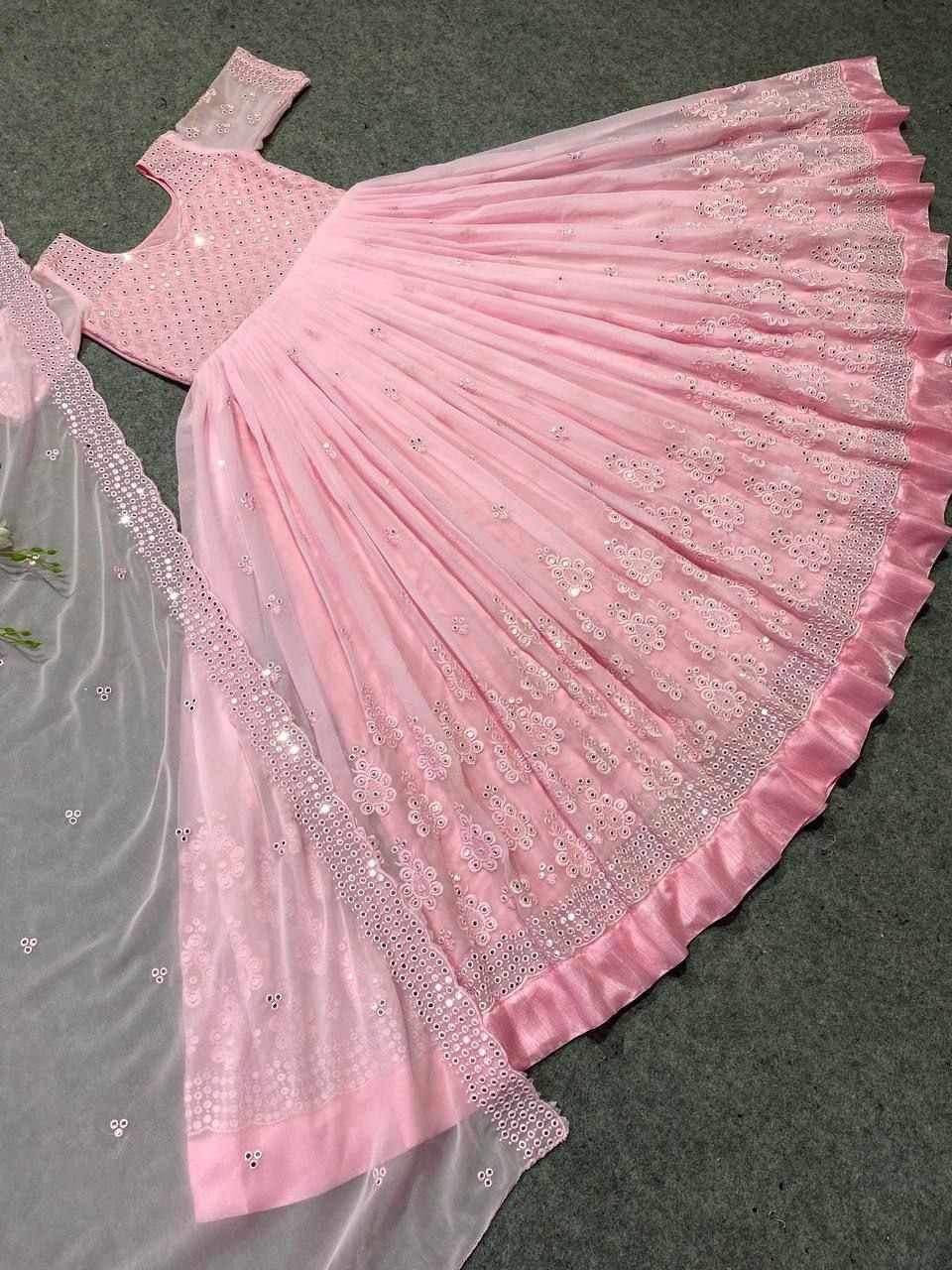 *GOWN FABRIC* :*_FOX GEORGETTE WITH EMBROIDERY 9MM SEQUENCE WORK WITH FULL SLEEVES_*