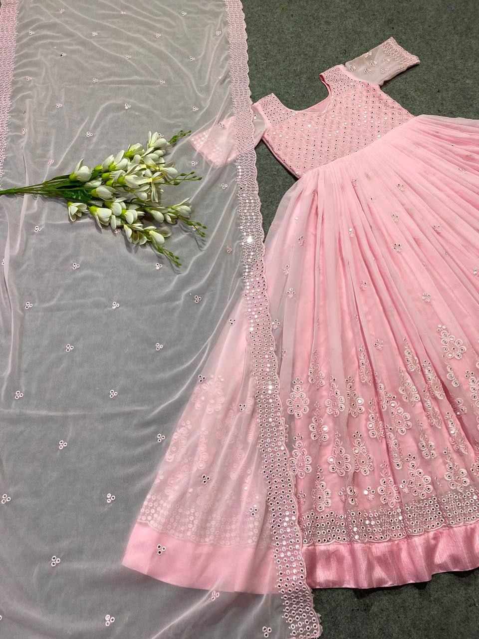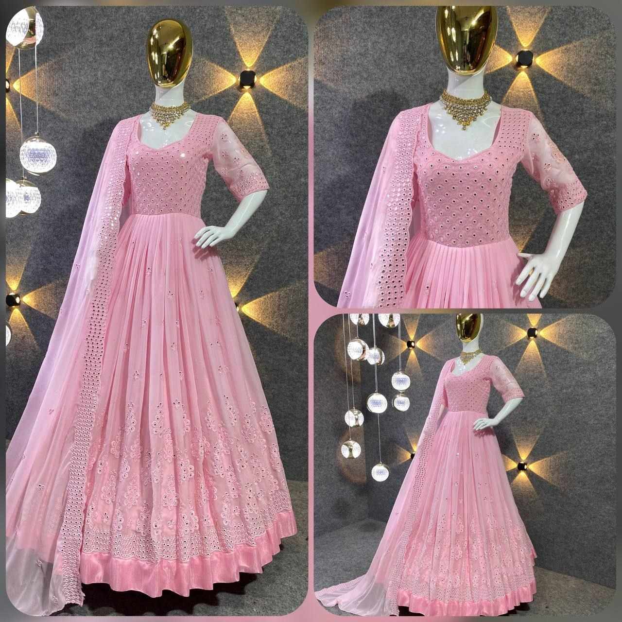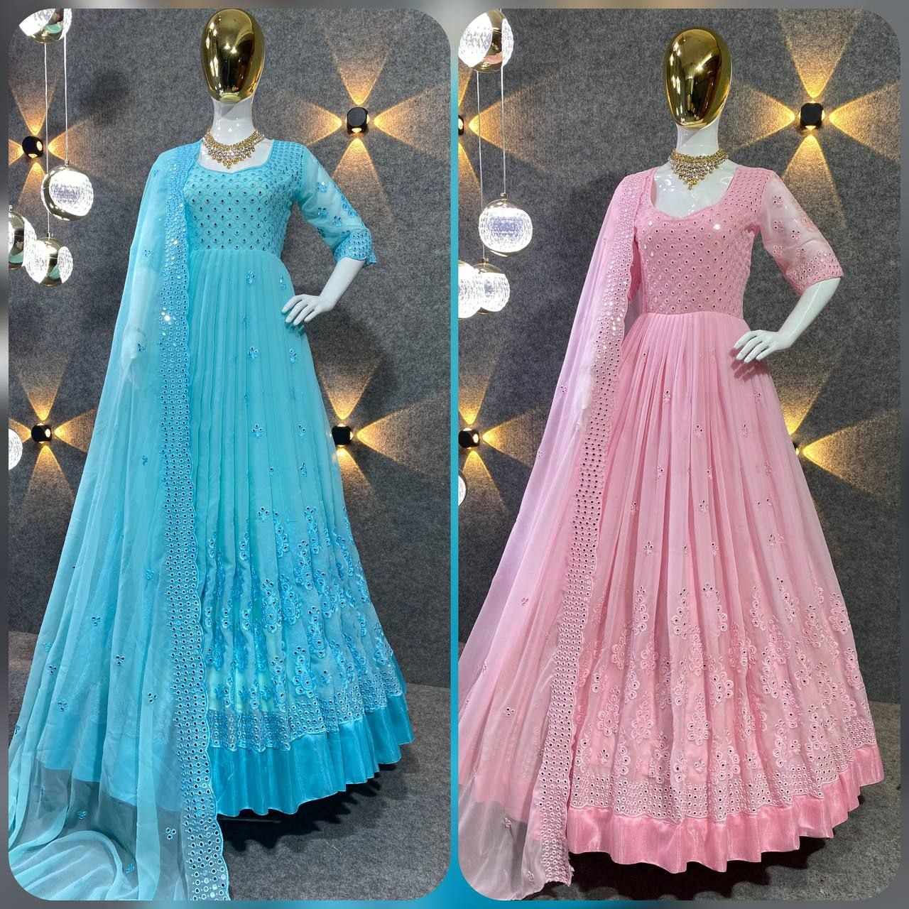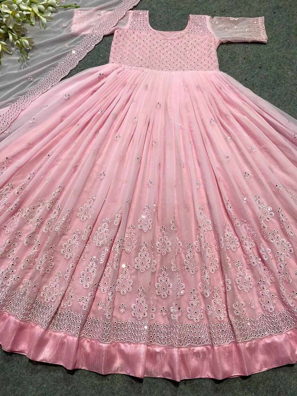 *GOWN FABRIC* :*_FOX GEORGETTE WITH EMBROIDERY 9MM SEQUENCE WORK WITH FULL SLEEVES_*